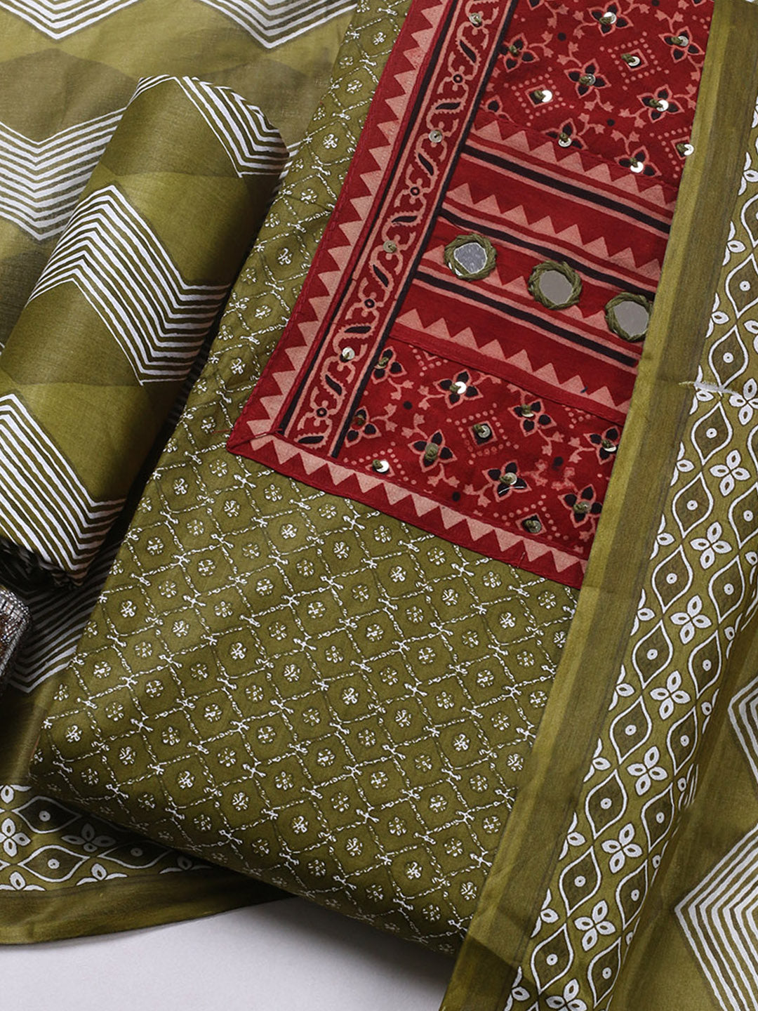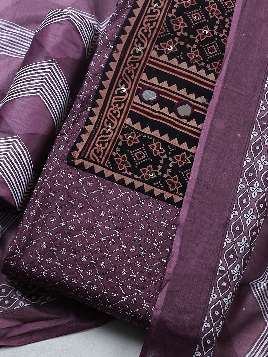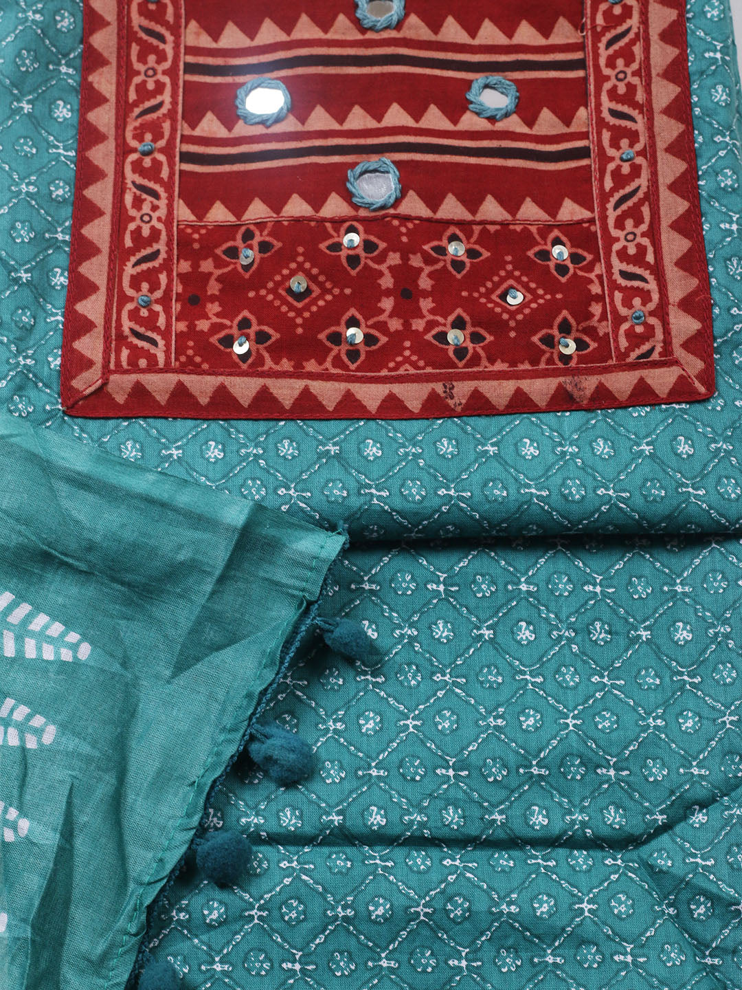 Printed Cotton Blend Ustitched Suit With Pant & Dupatta