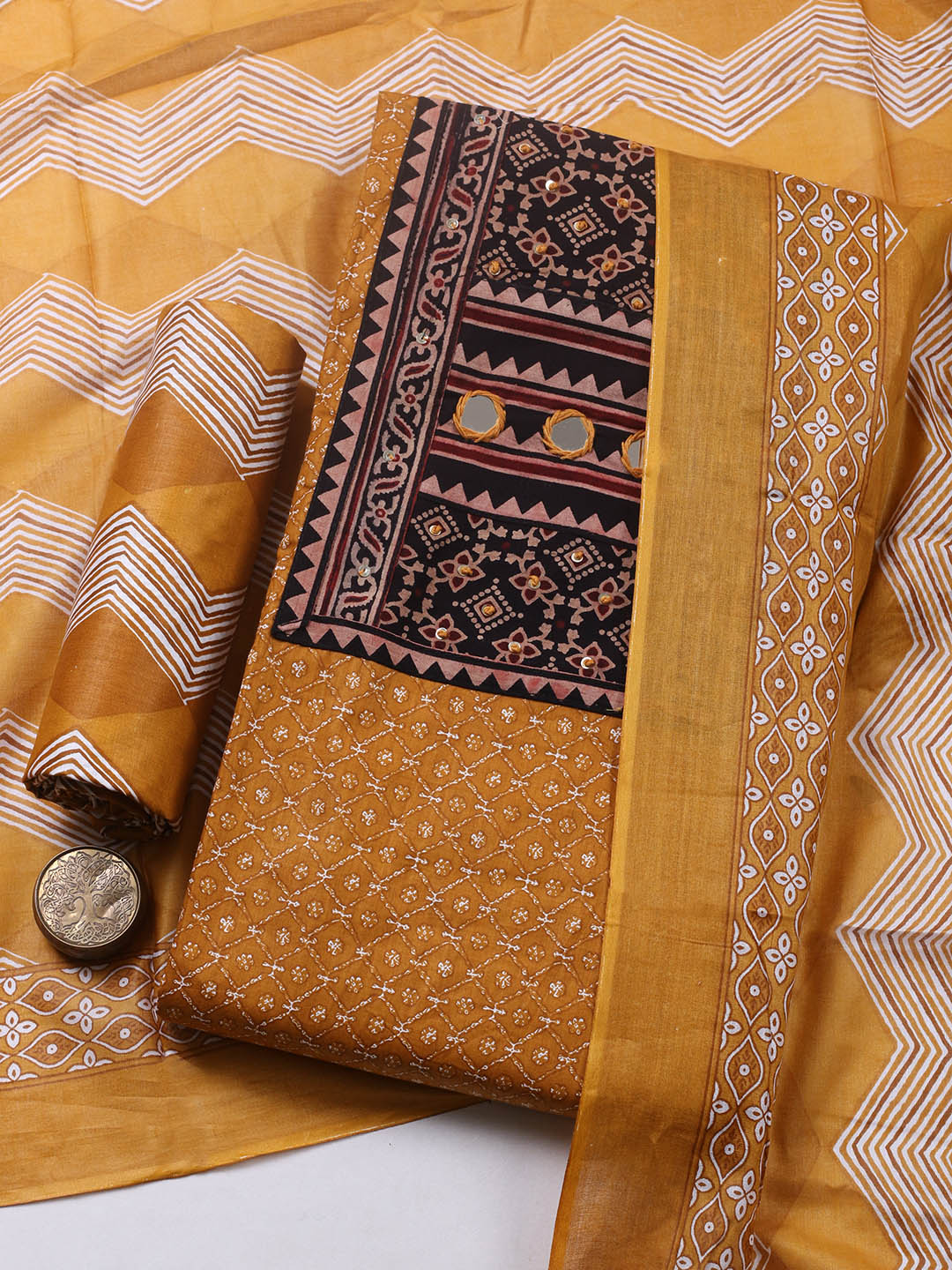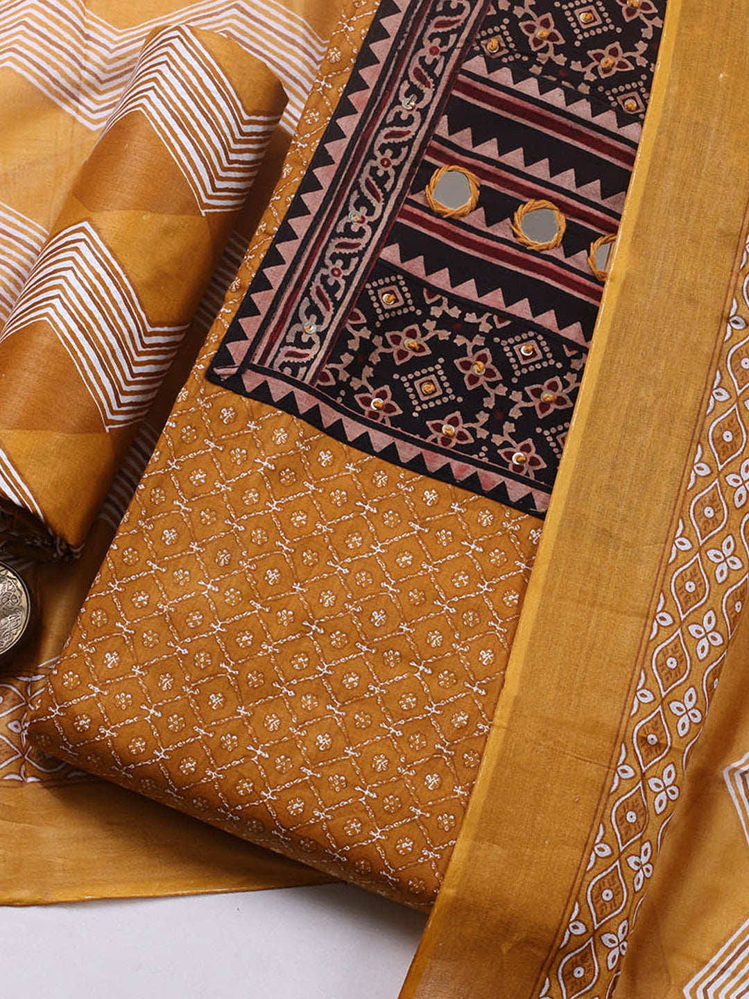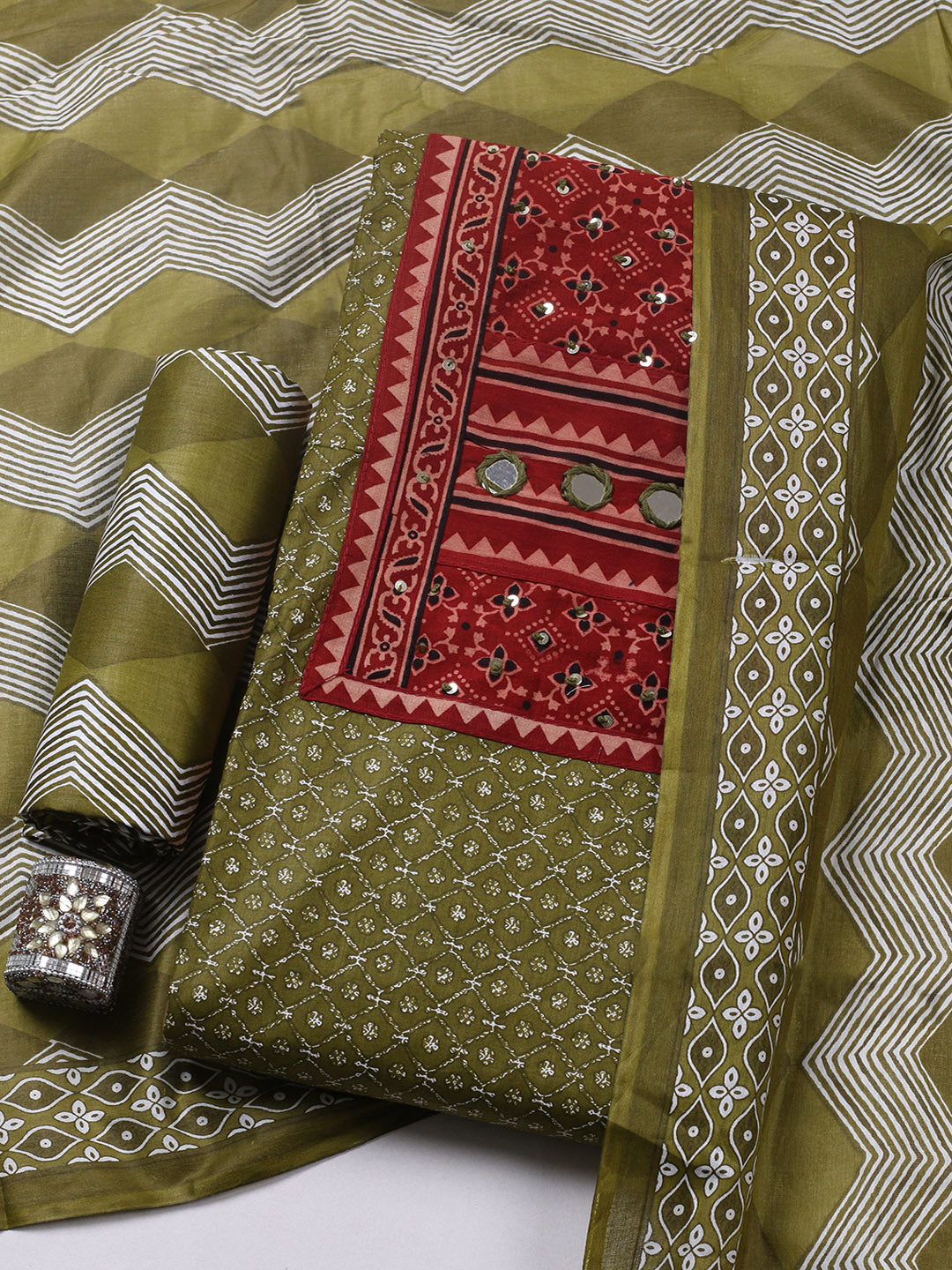Printed Cotton Blend Ustitched Suit With Pant & Dupatta
