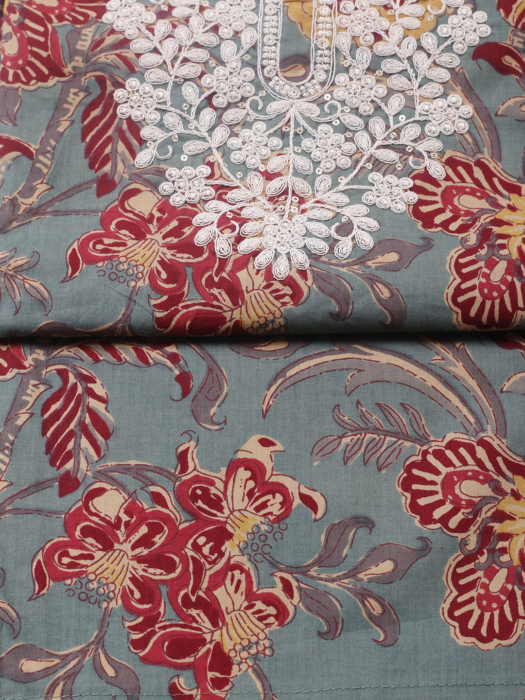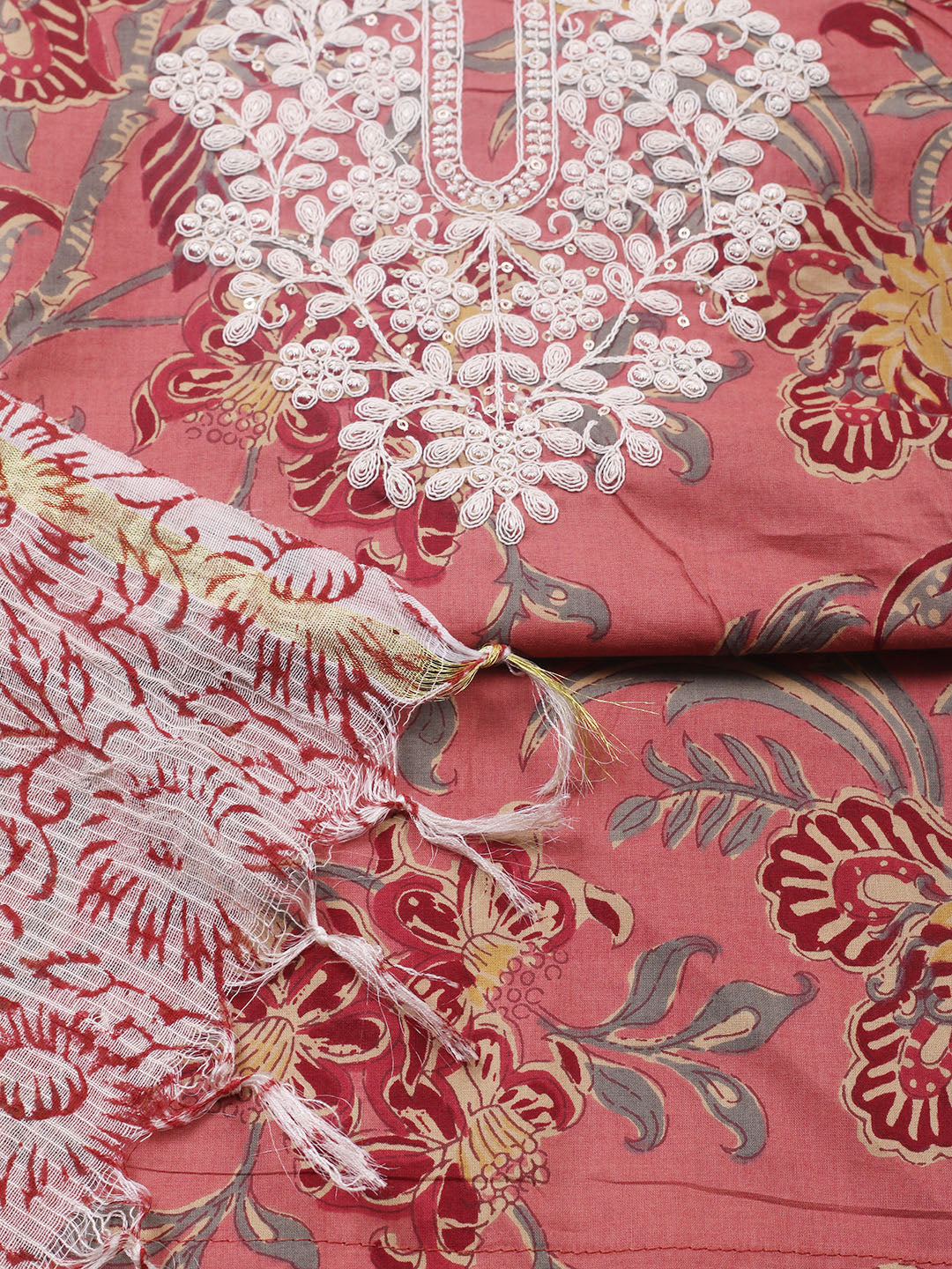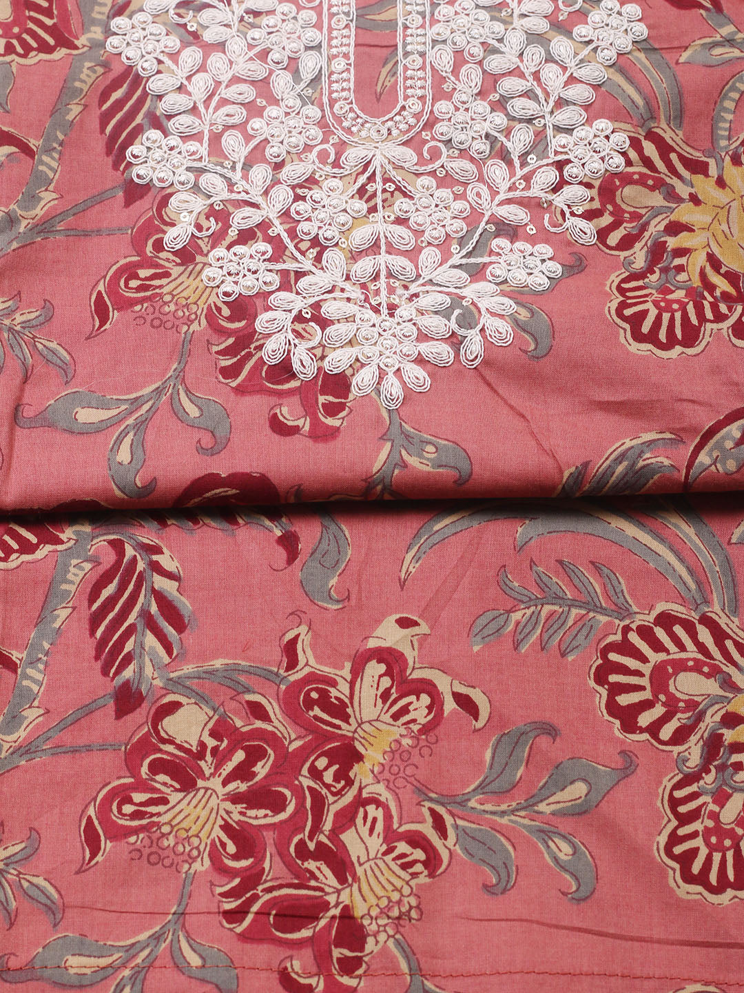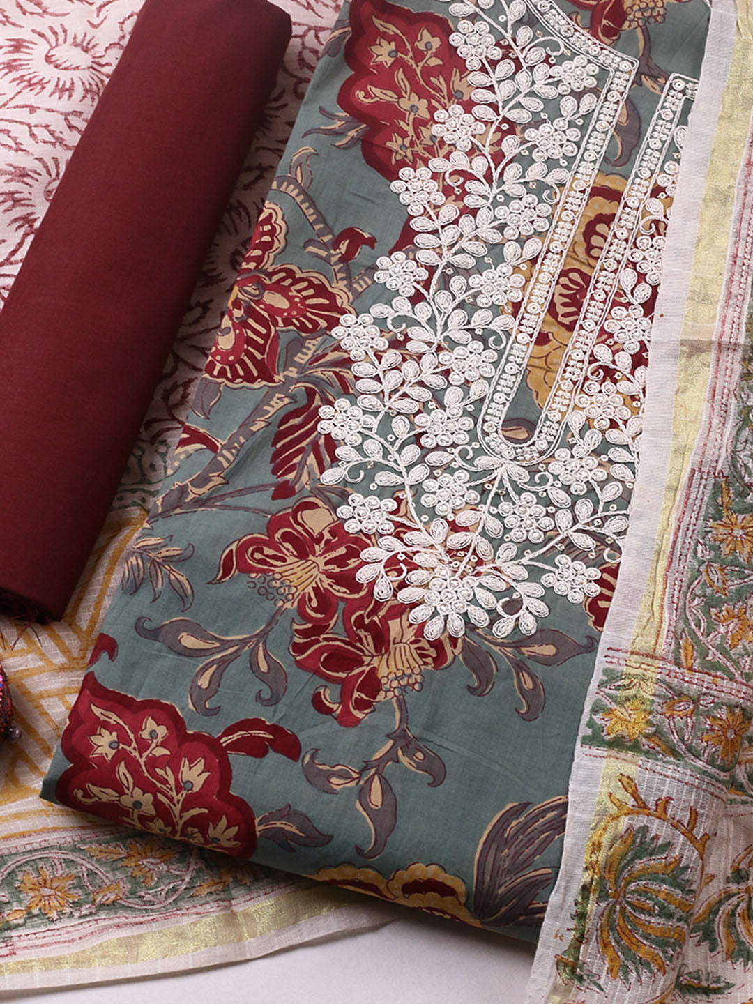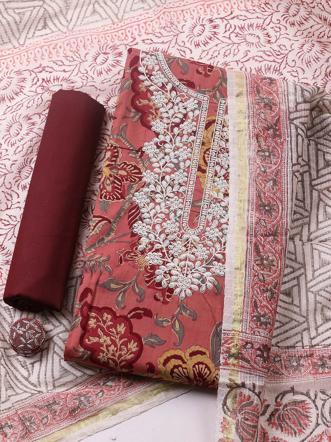Printed Cotton Blend Unstitched Suit With Pant & Dupatta