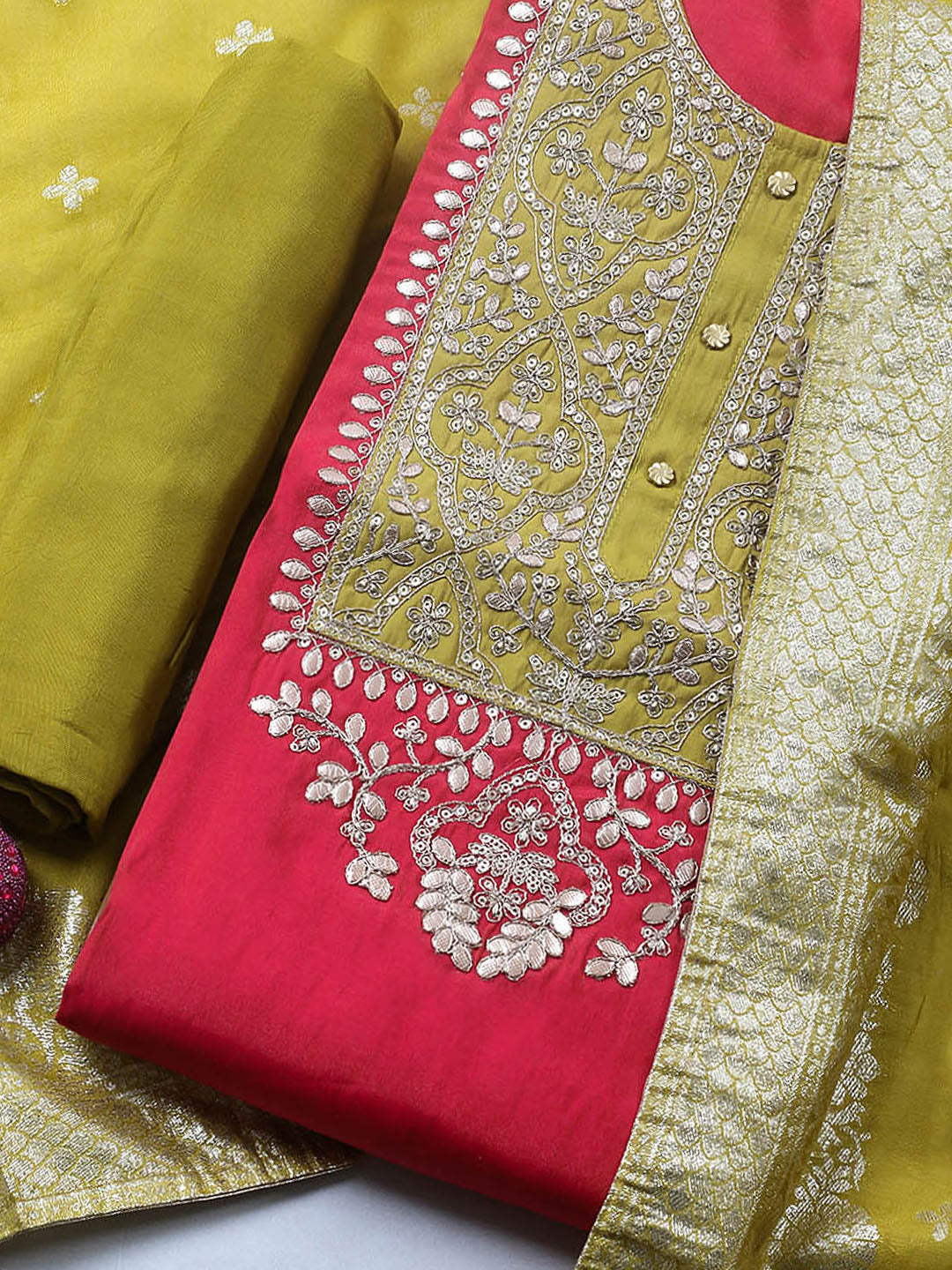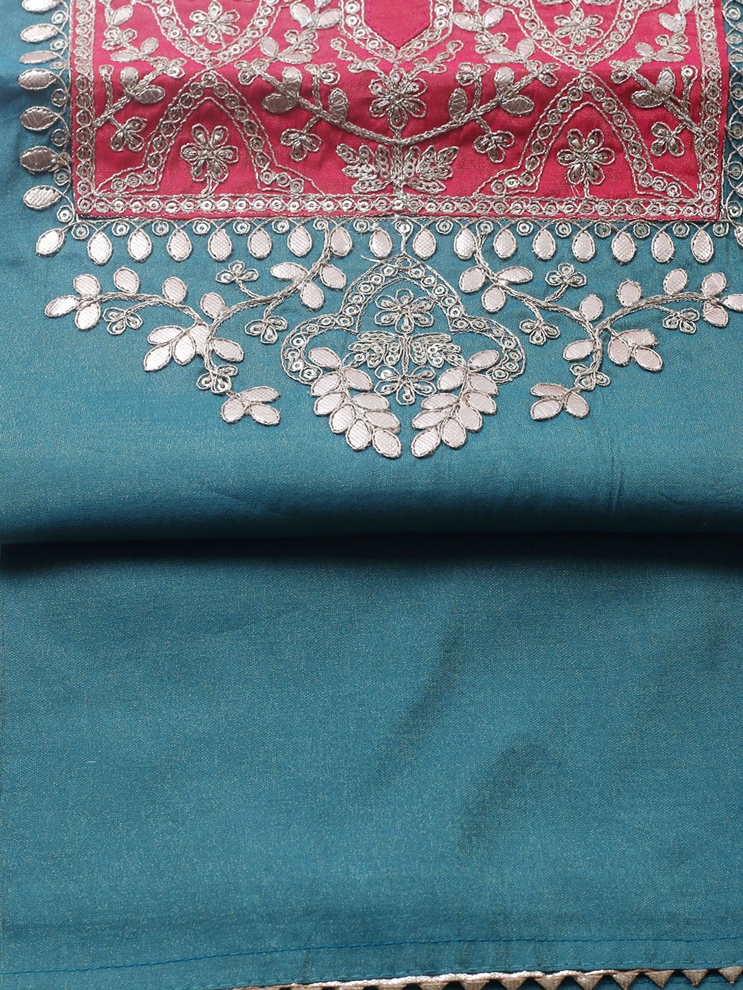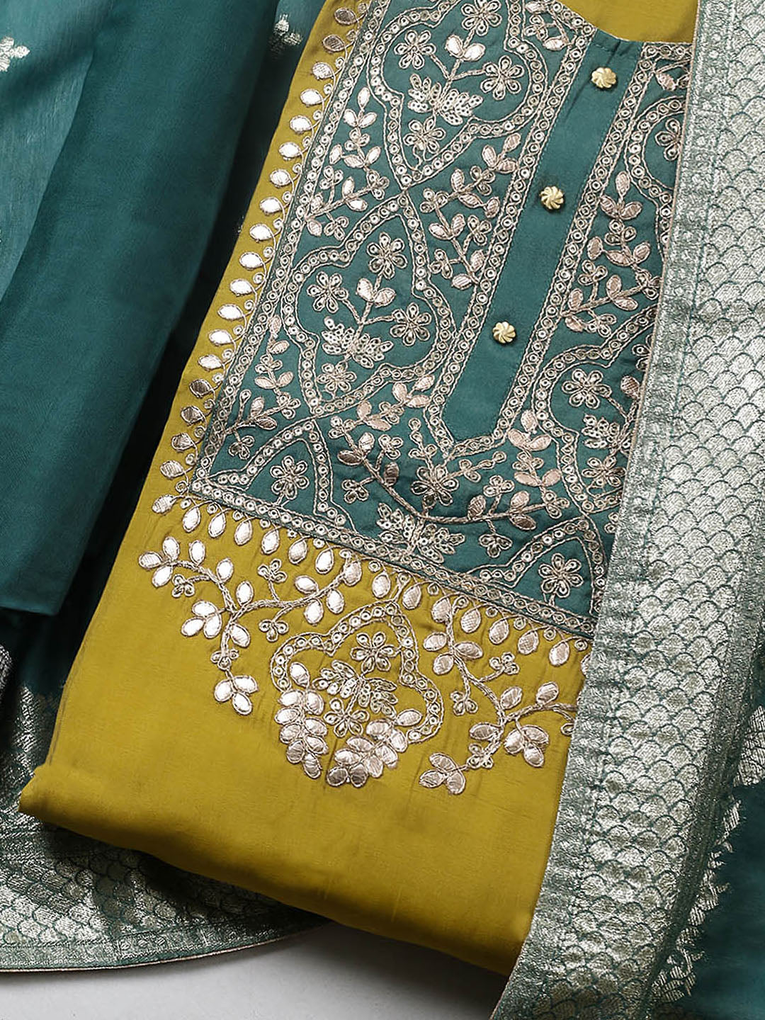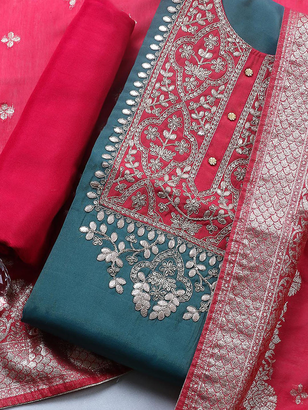 Embroidered Chanderi Unstitched Suit With Pant & Dupatta