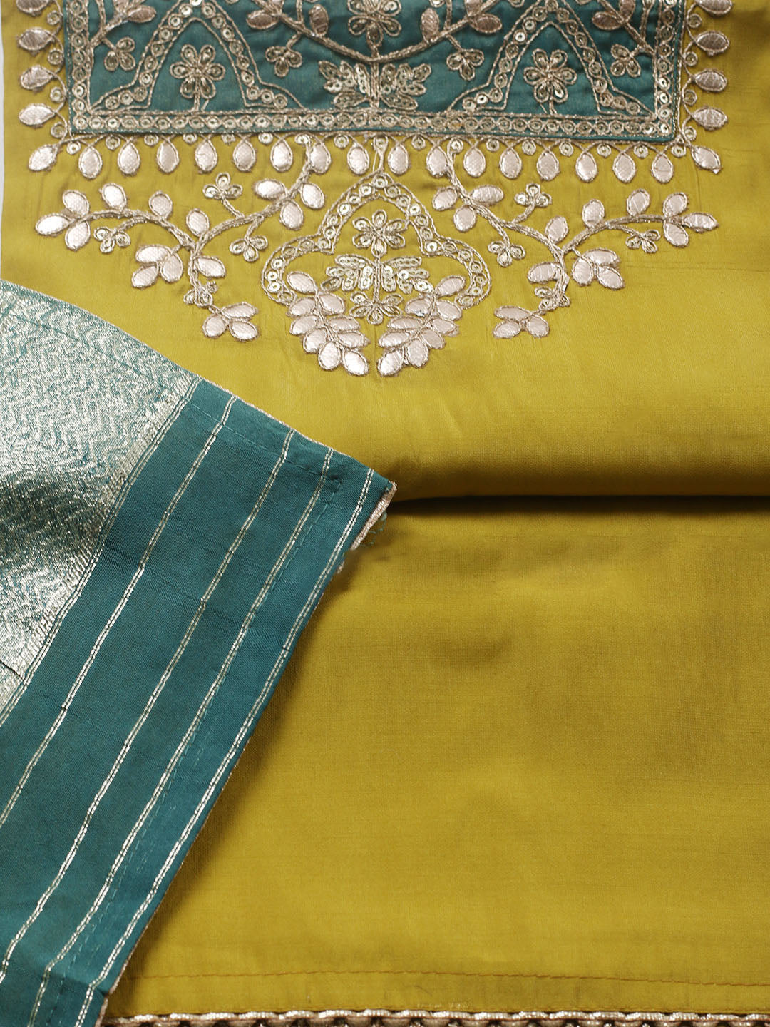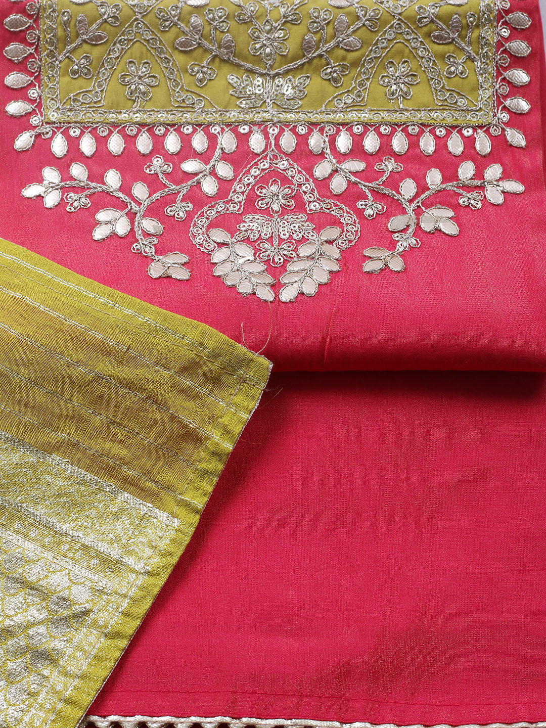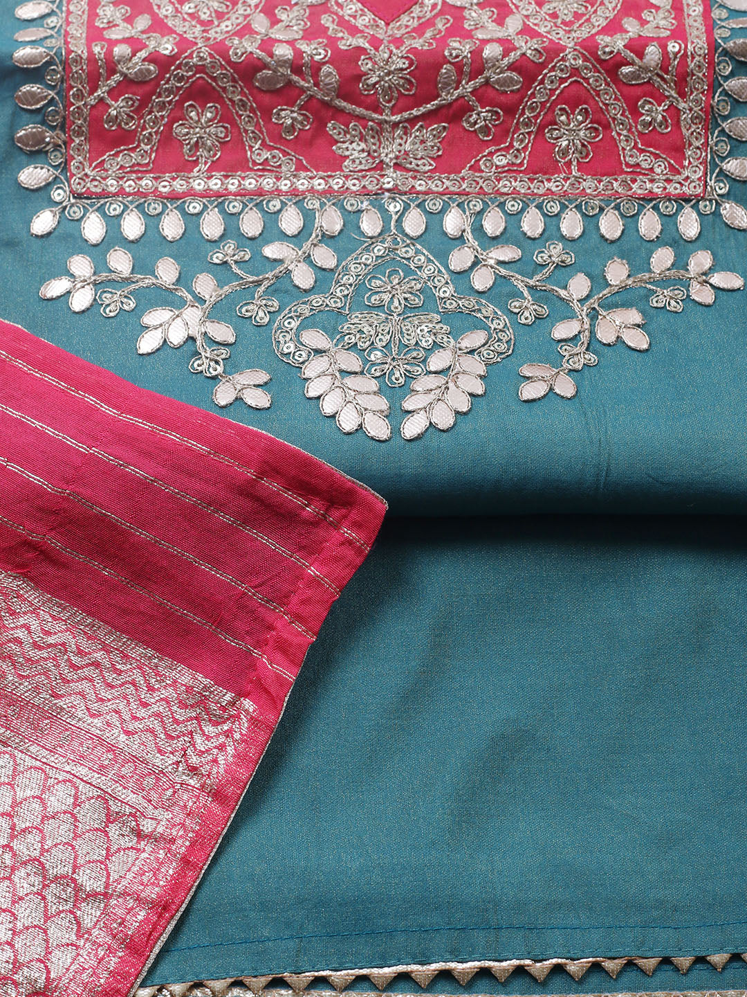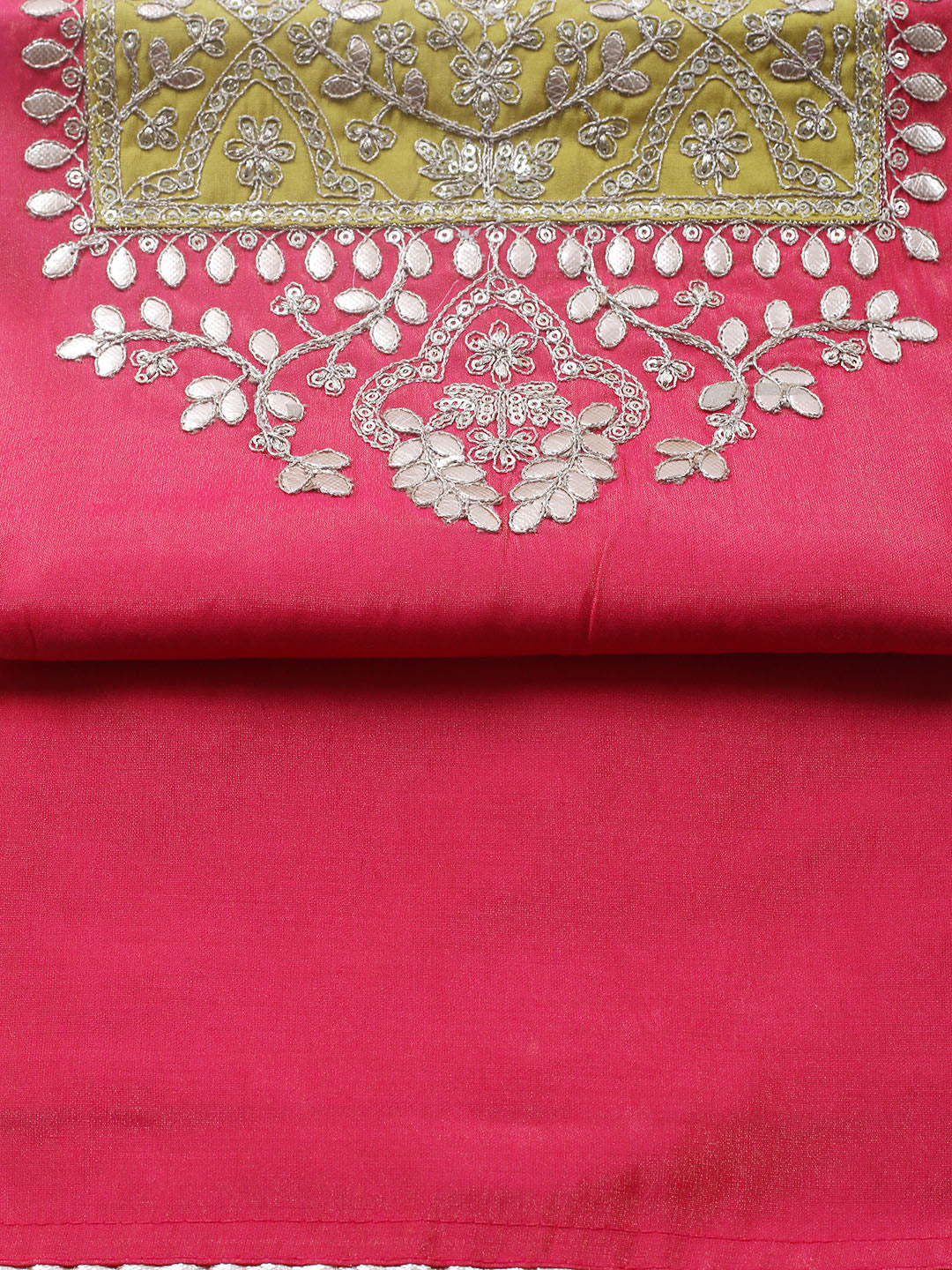 Embroidered Chanderi Unstitched Suit With Pant & Dupatta