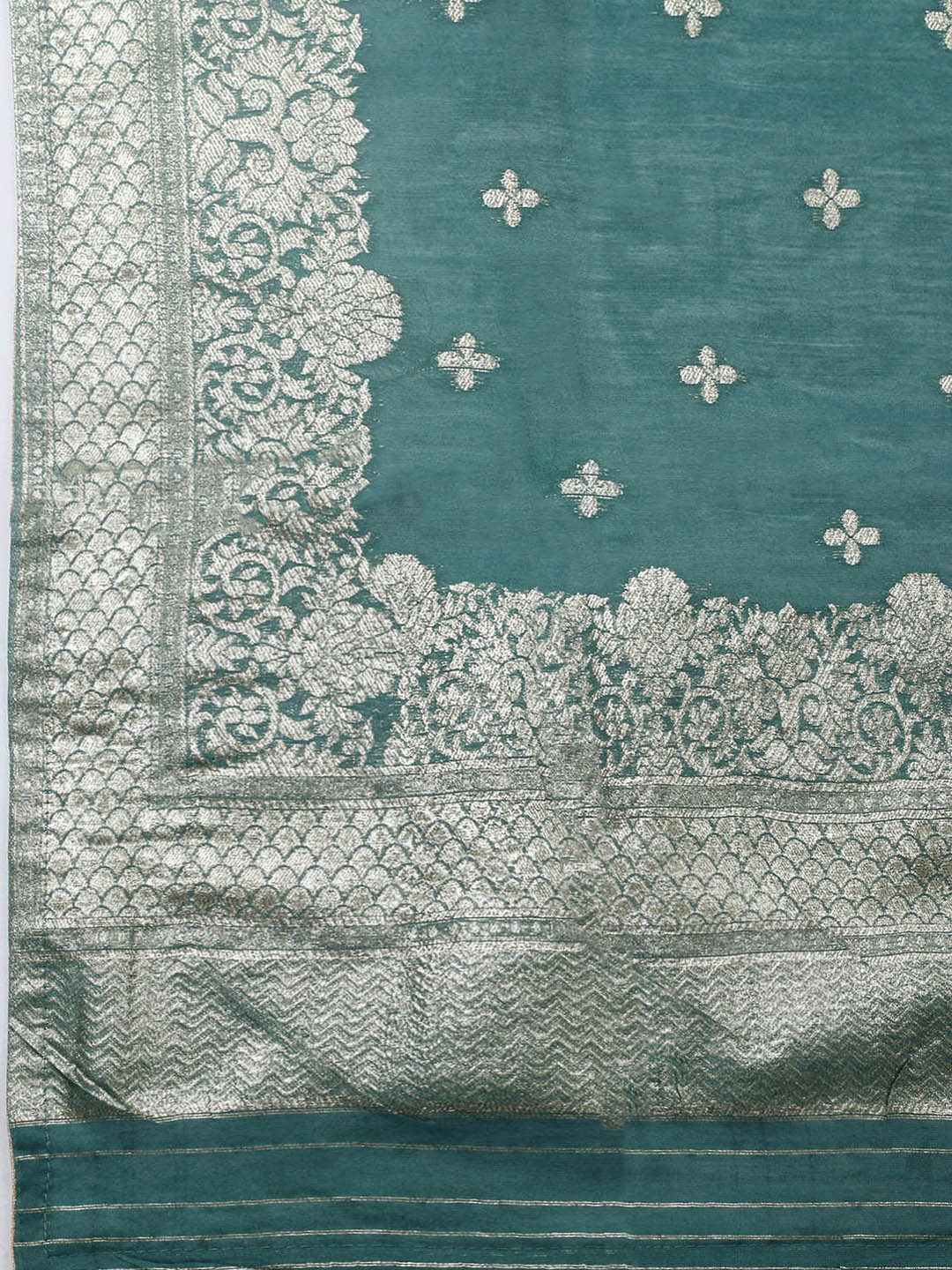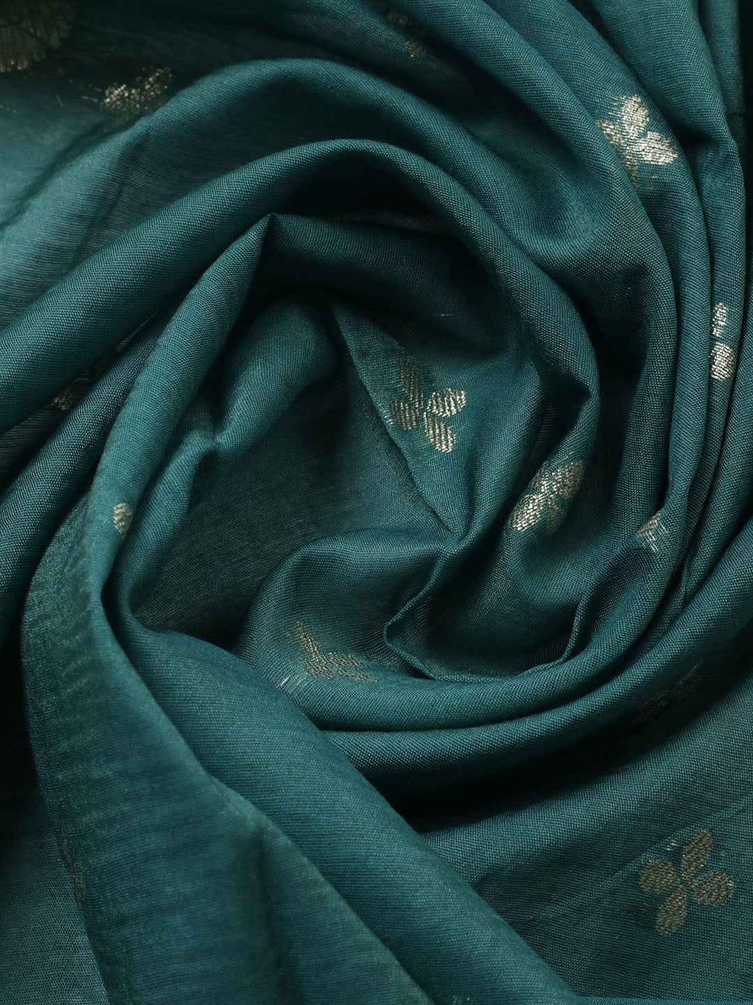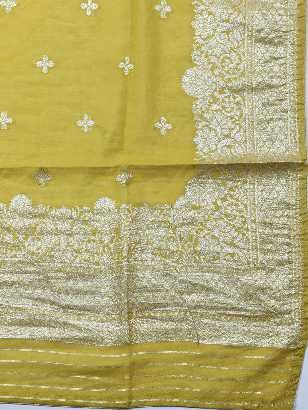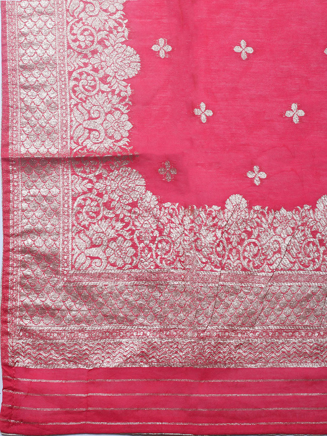 Embroidered Chanderi Unstitched Suit With Pant & Dupatta