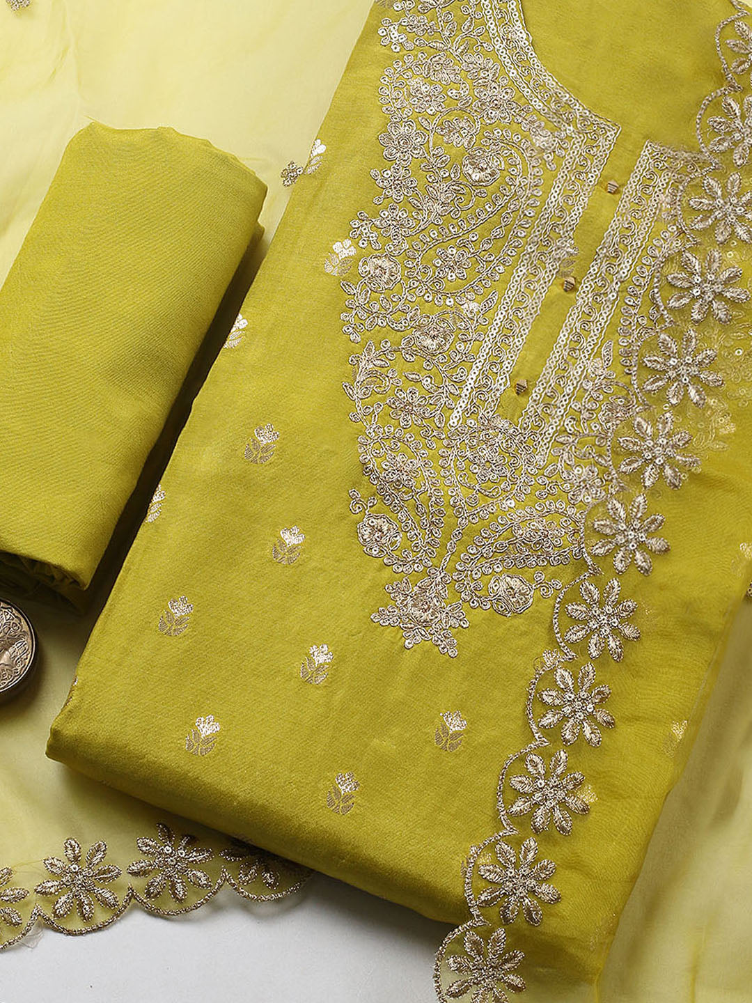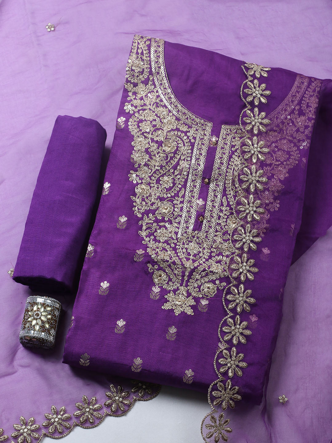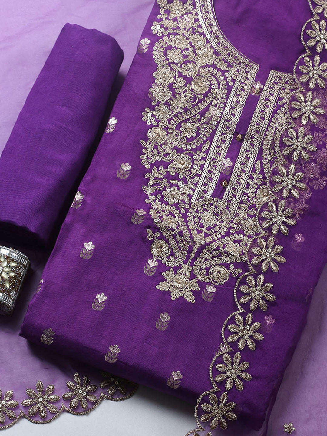 Embroidered Chanderi Ustitched Suit With Pant & Dupatta