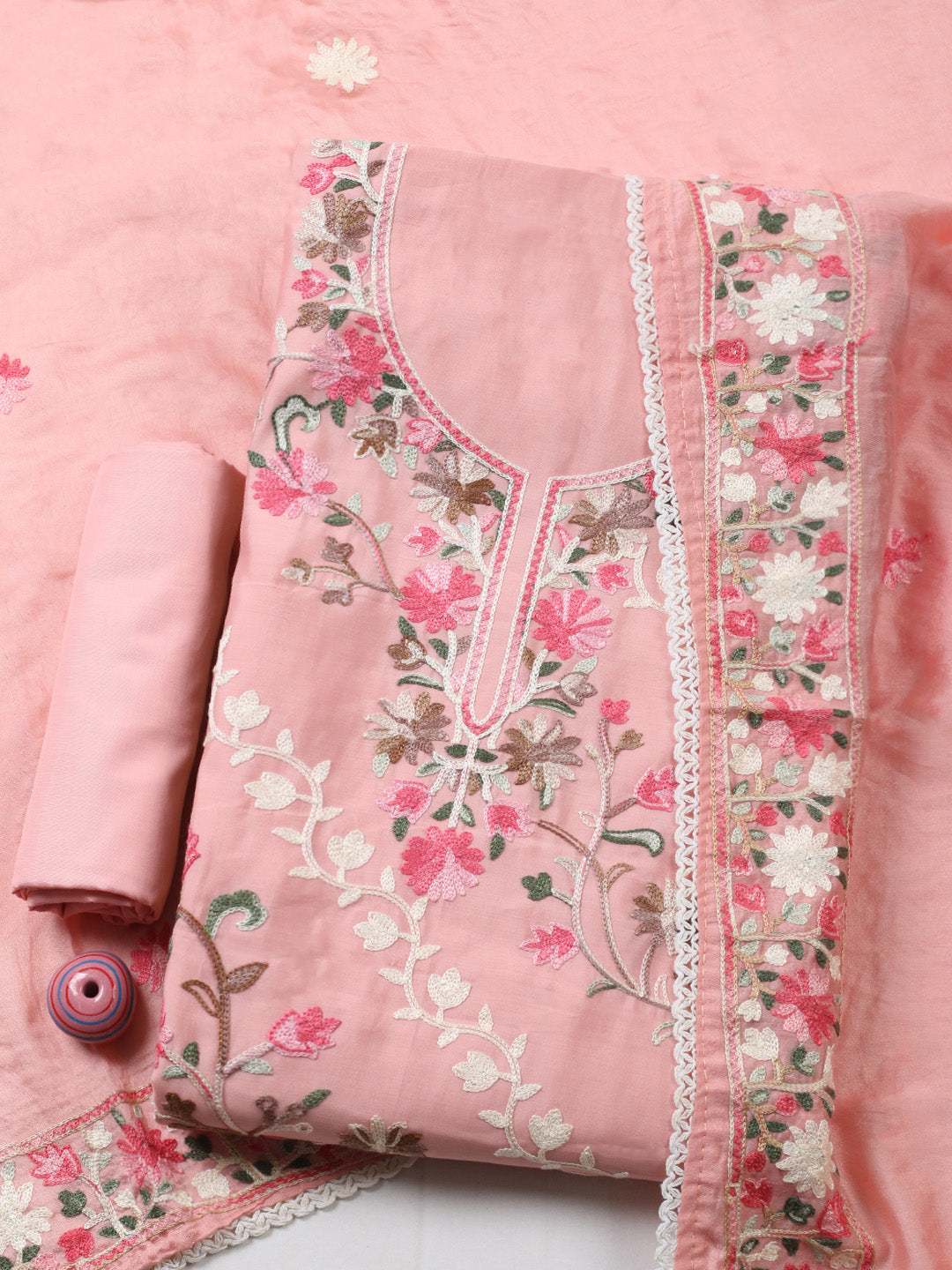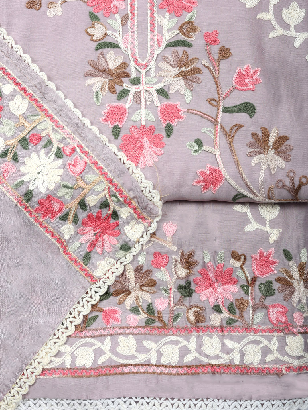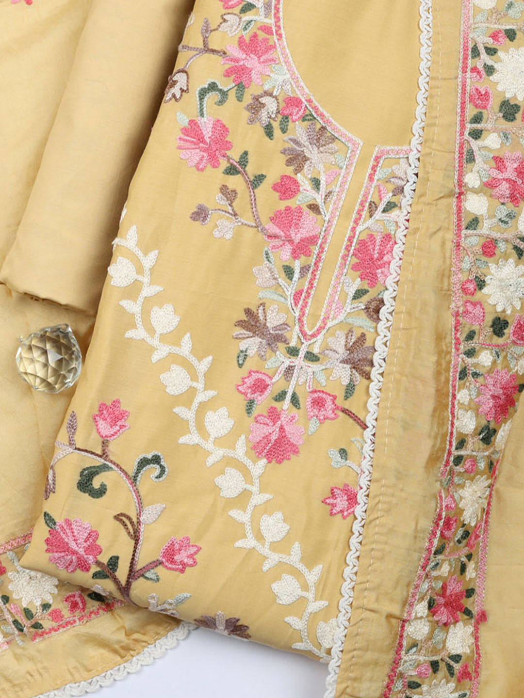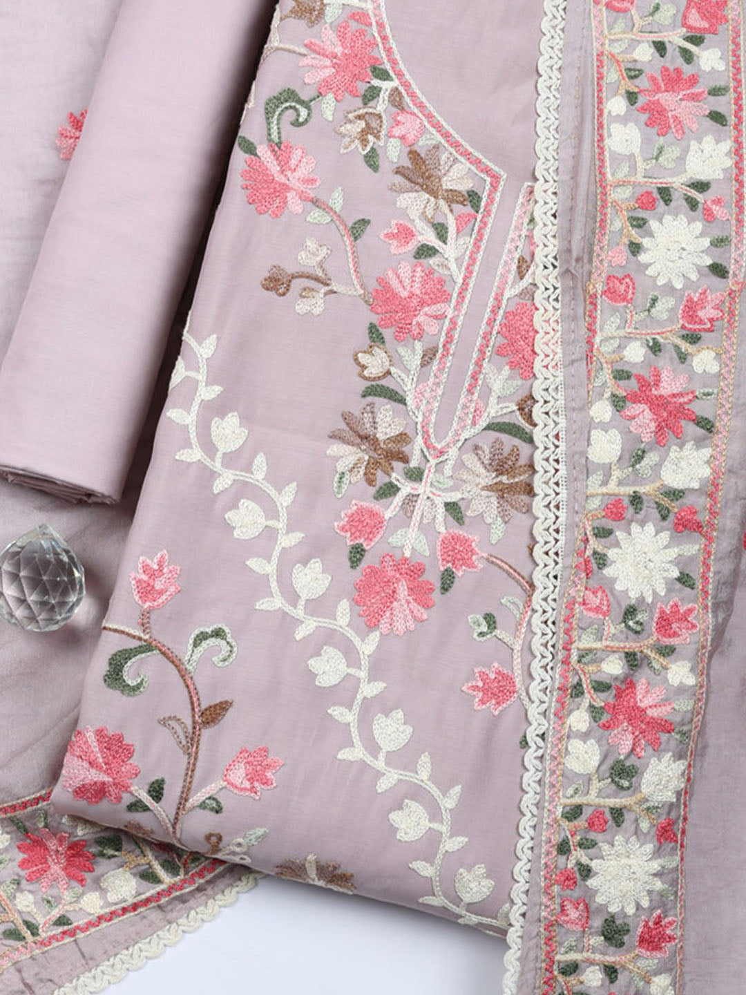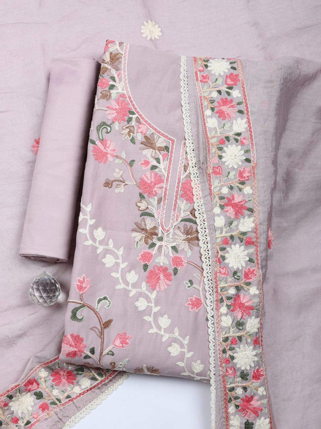 Embroidered Chanderi Unstitched Suit With Pant & Dupatta