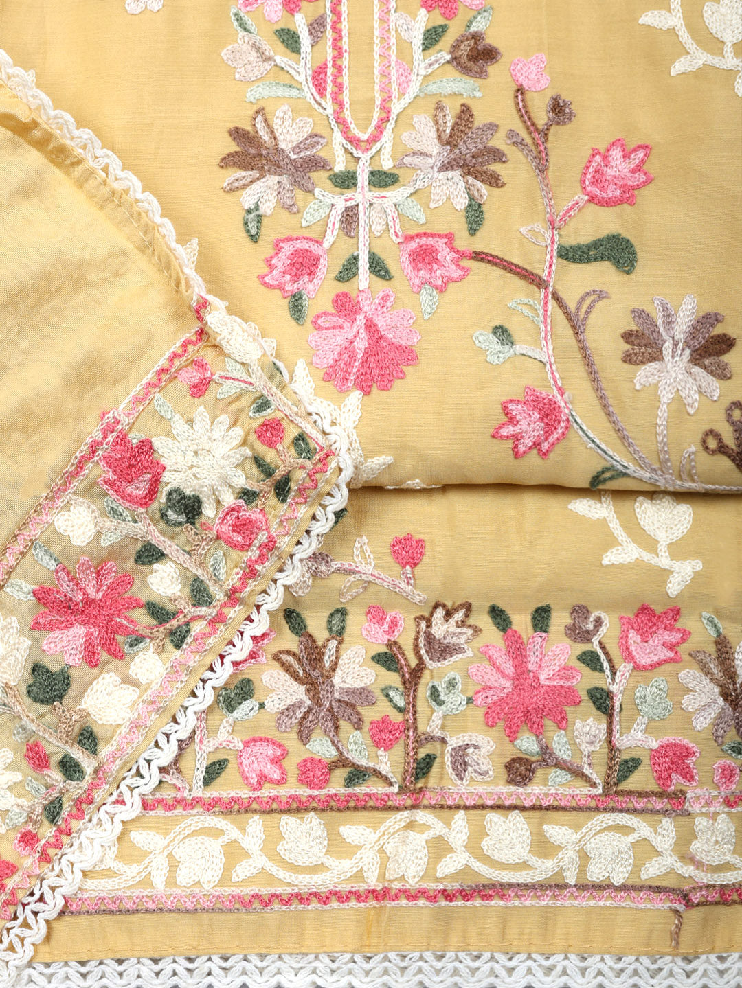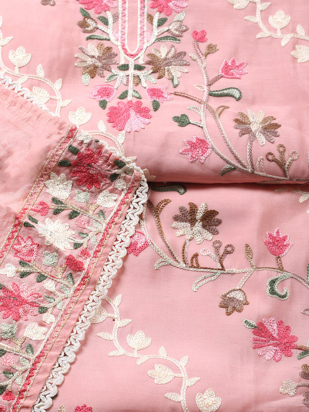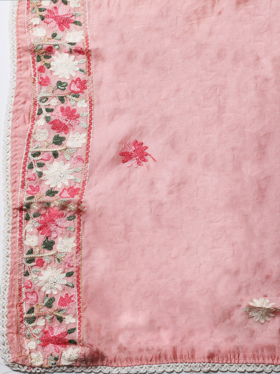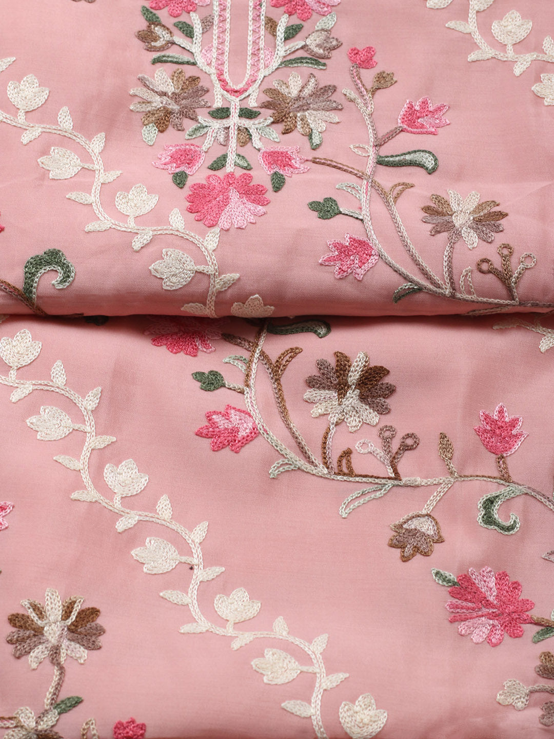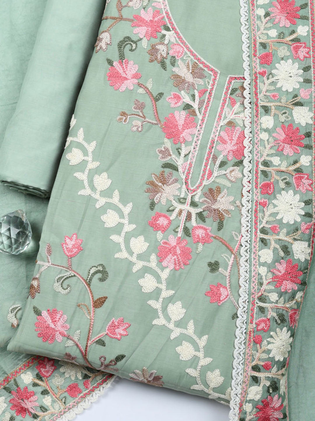 Embroidered Chanderi Unstitched Suit With Pant & Dupatta