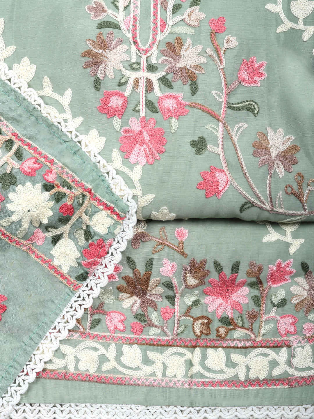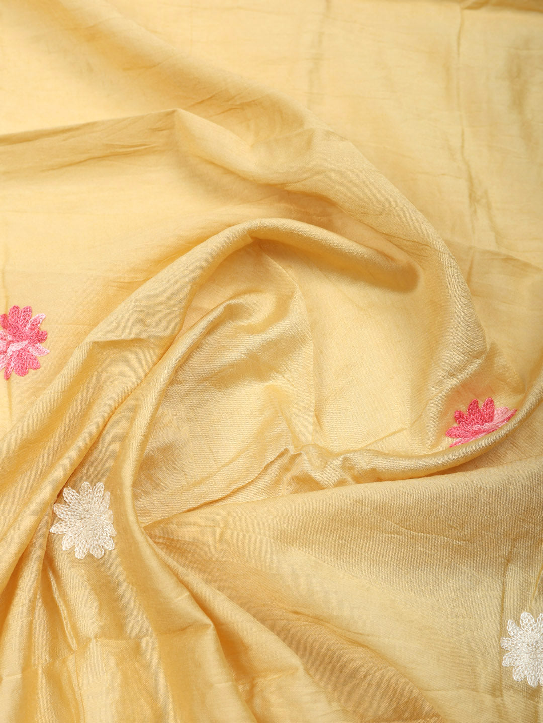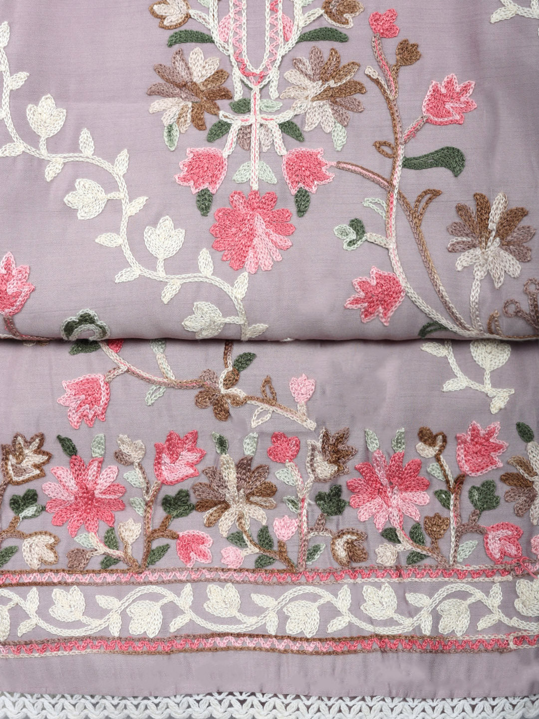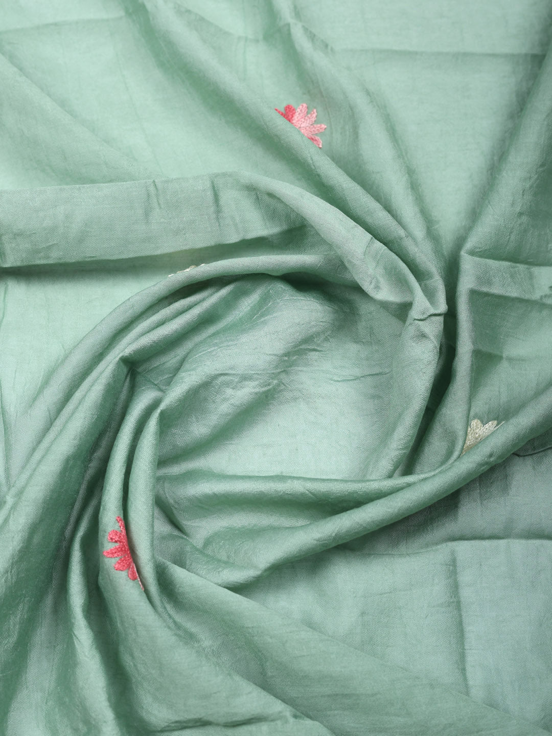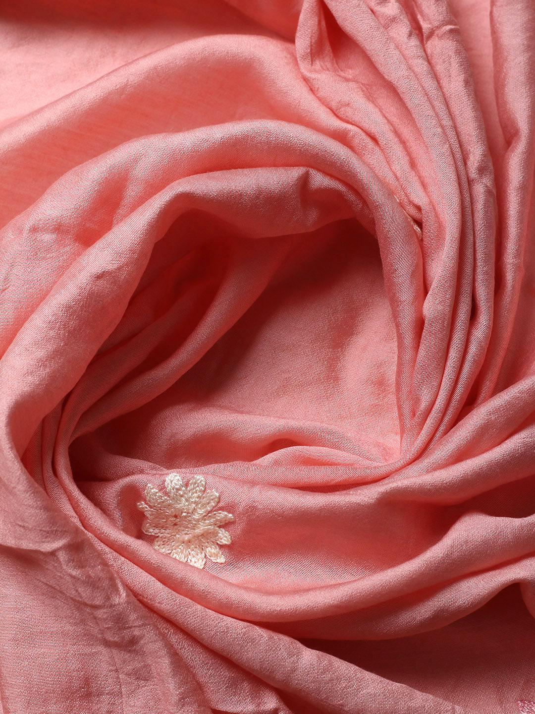 Embroidered Chanderi Unstitched Suit With Pant & Dupatta