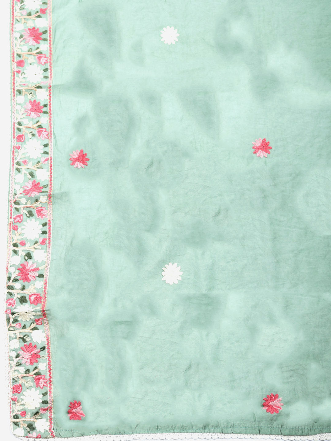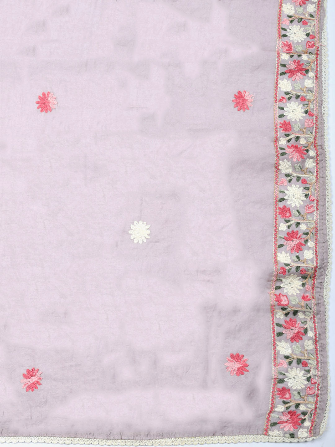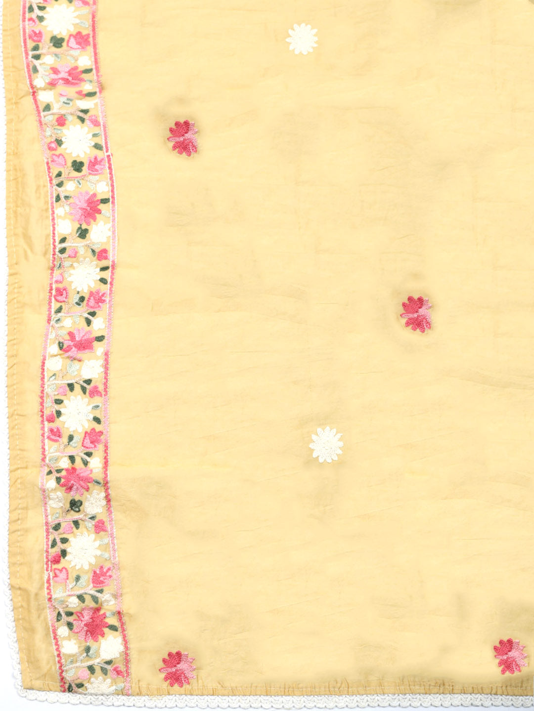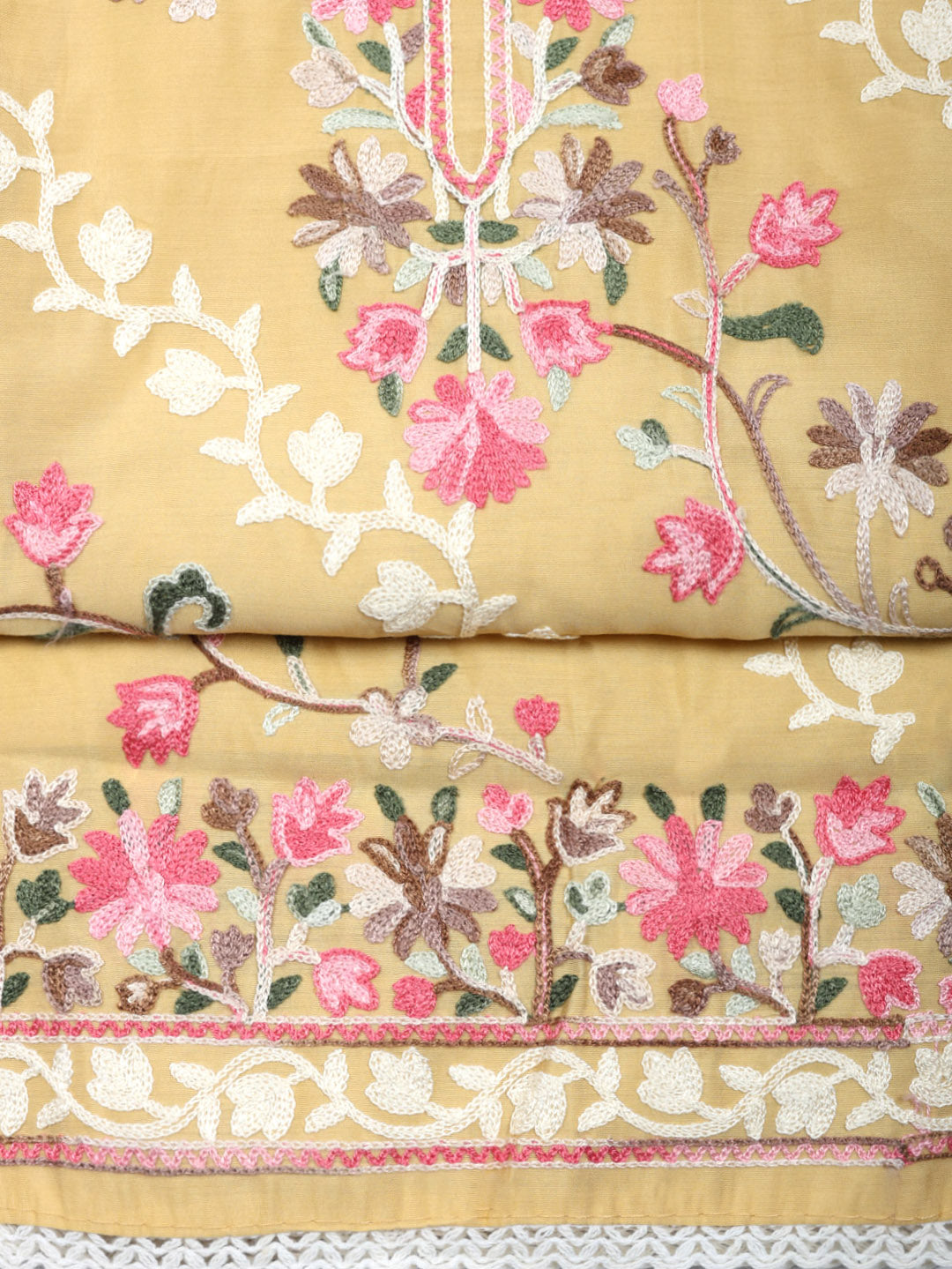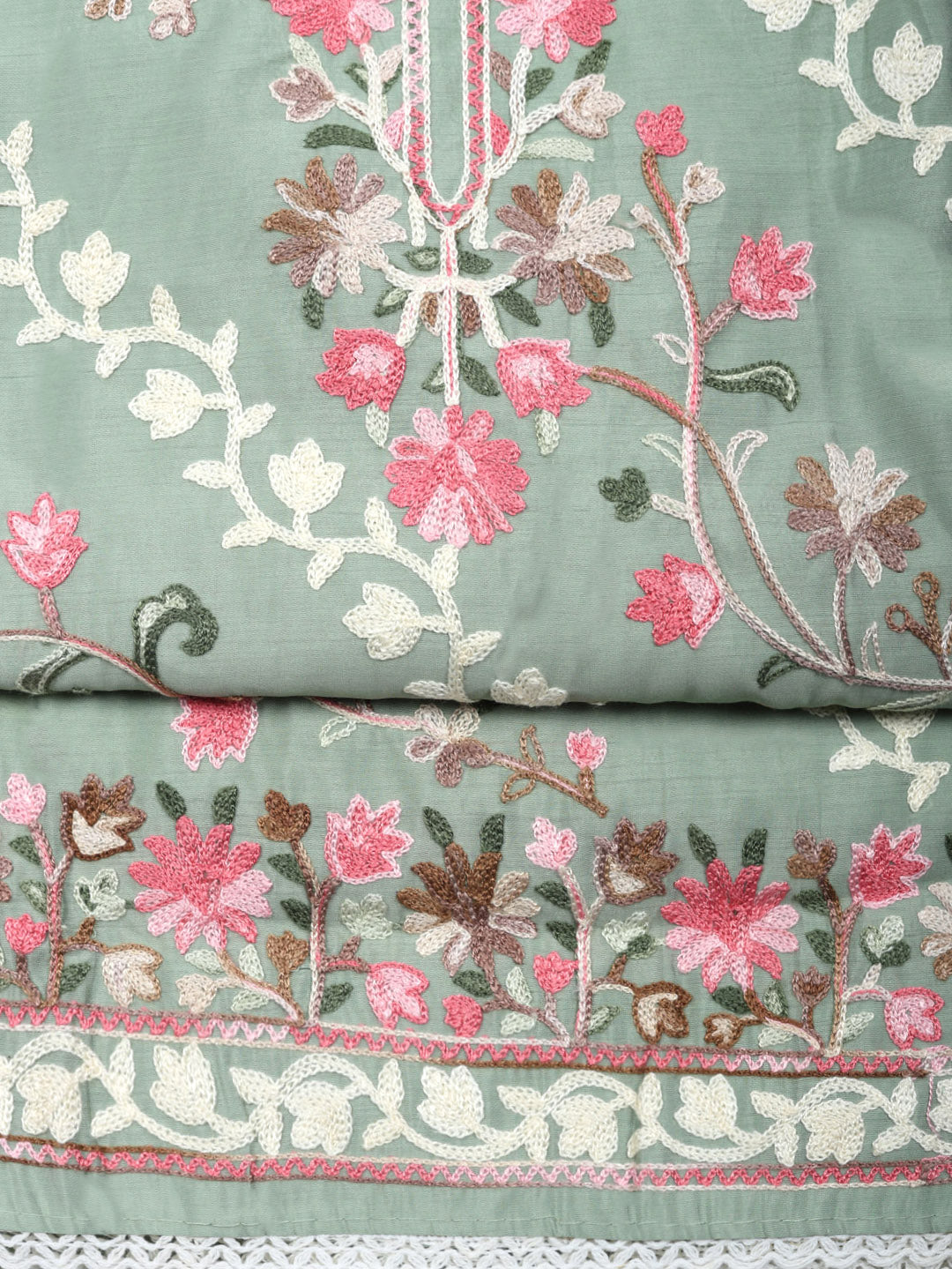 Embroidered Chanderi Unstitched Suit With Pant & Dupatta