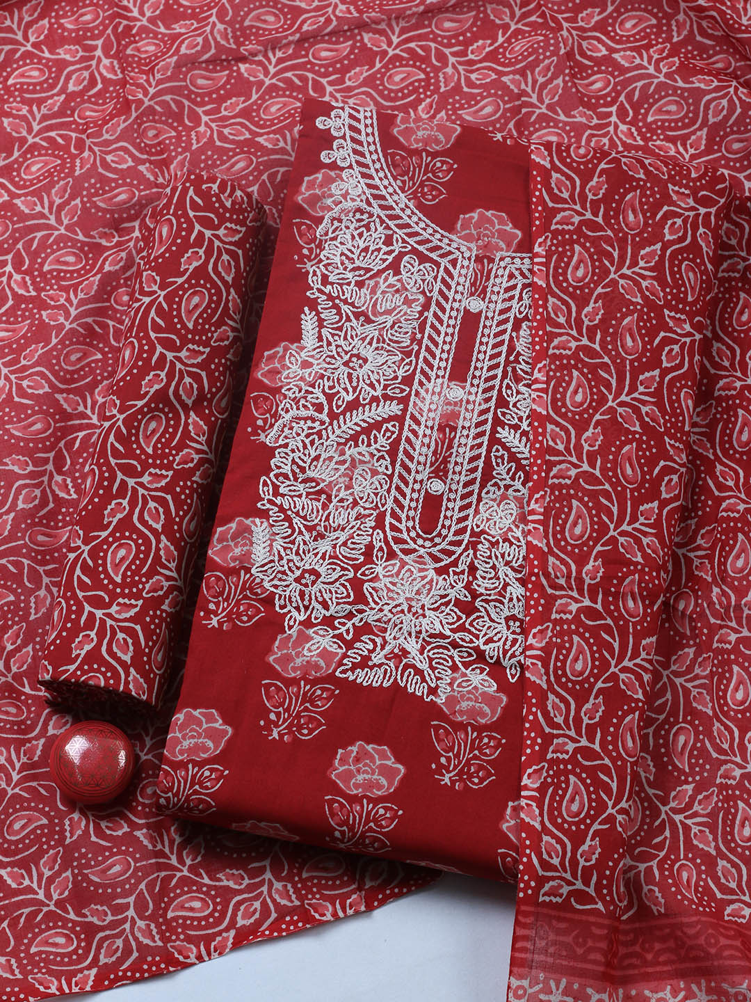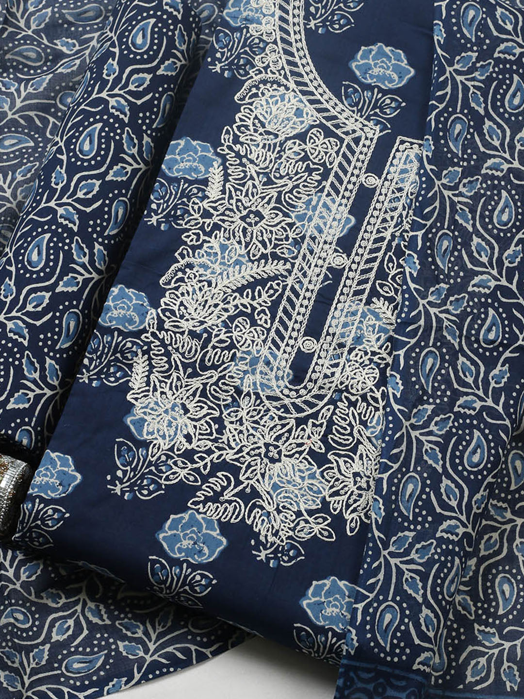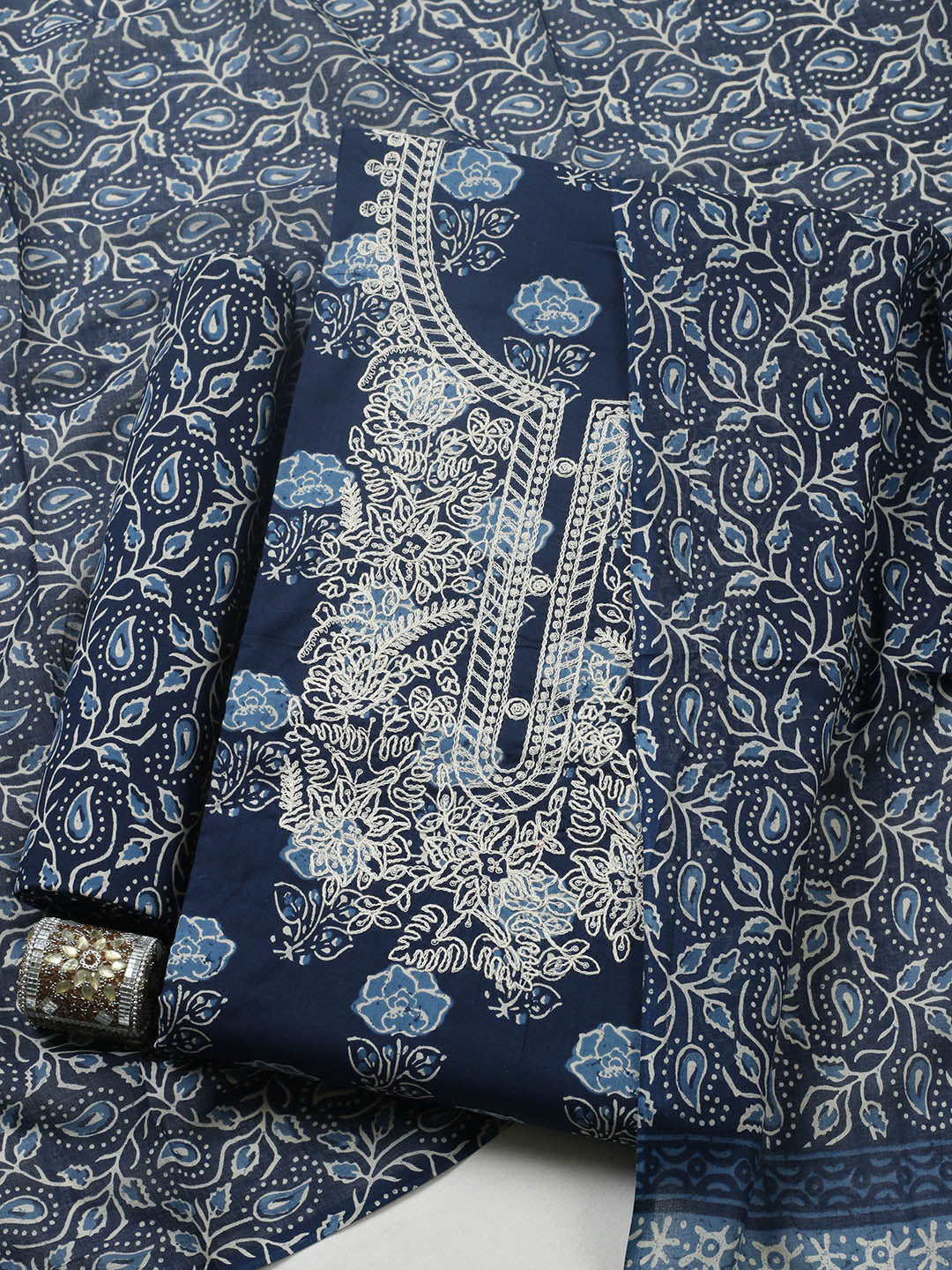 Embroidered Cotton Blend Ustitched Suit With Pant & Dupatta