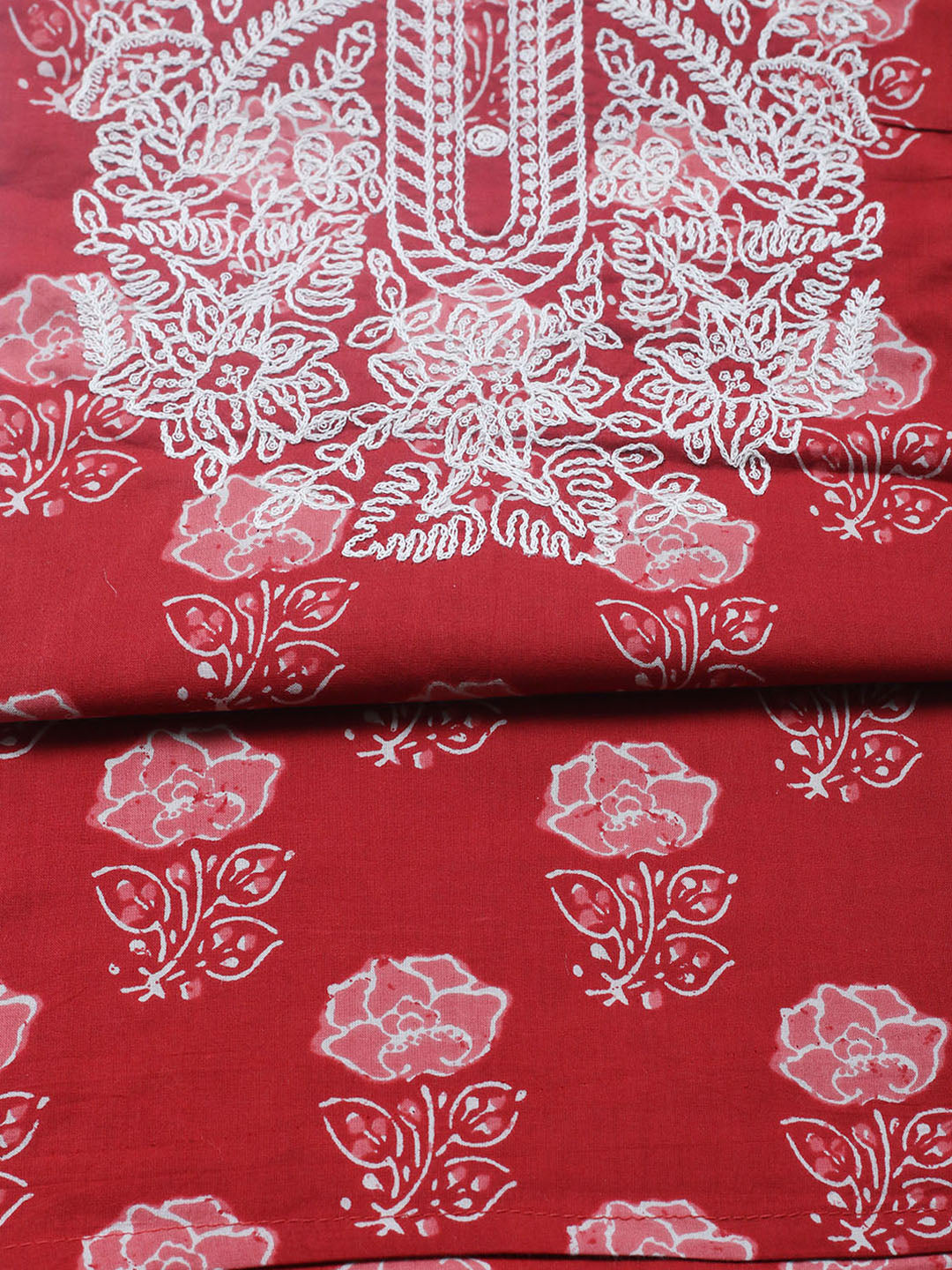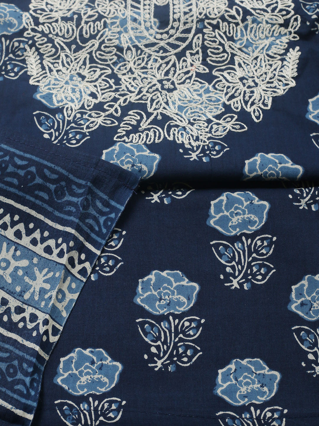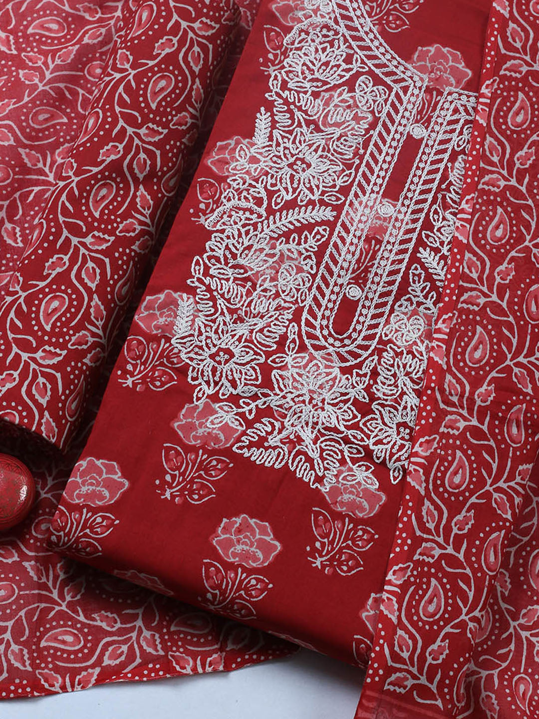Embroidered Cotton Blend Ustitched Suit With Pant & Dupatta