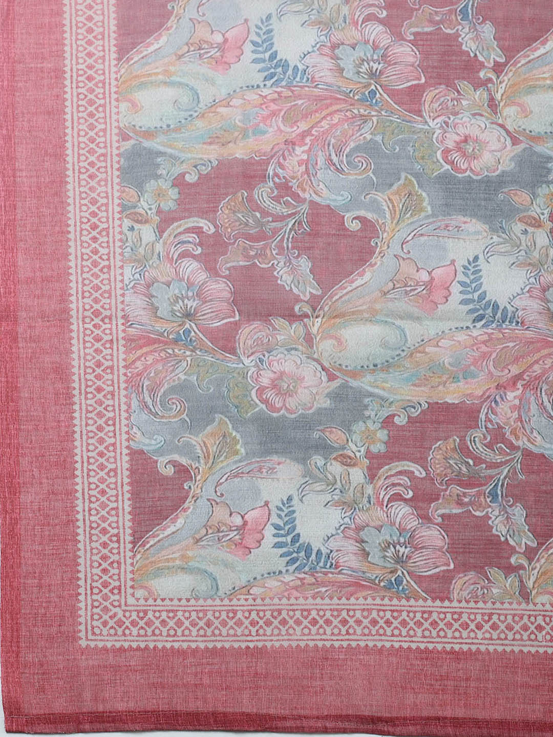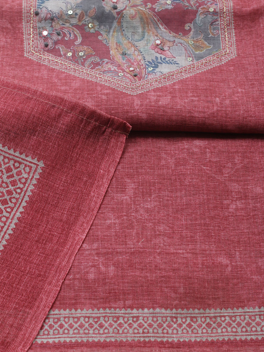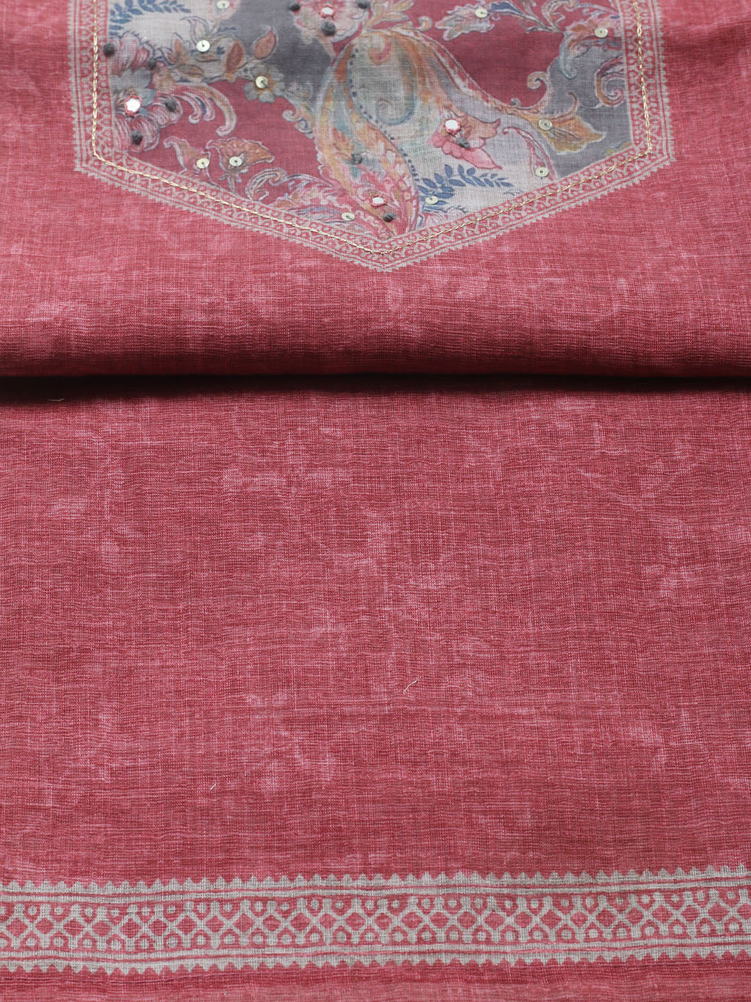 Embroidered Linen Blend Ustitched Suit With Pant & Dupatta