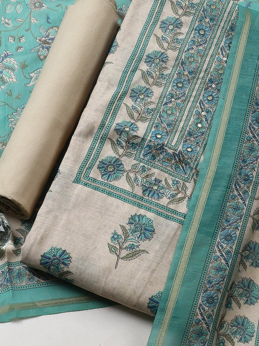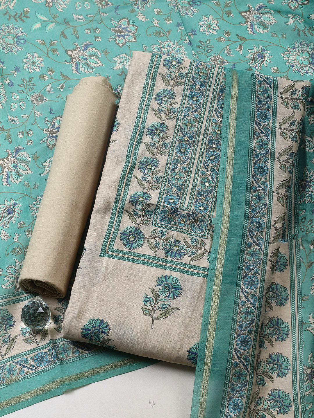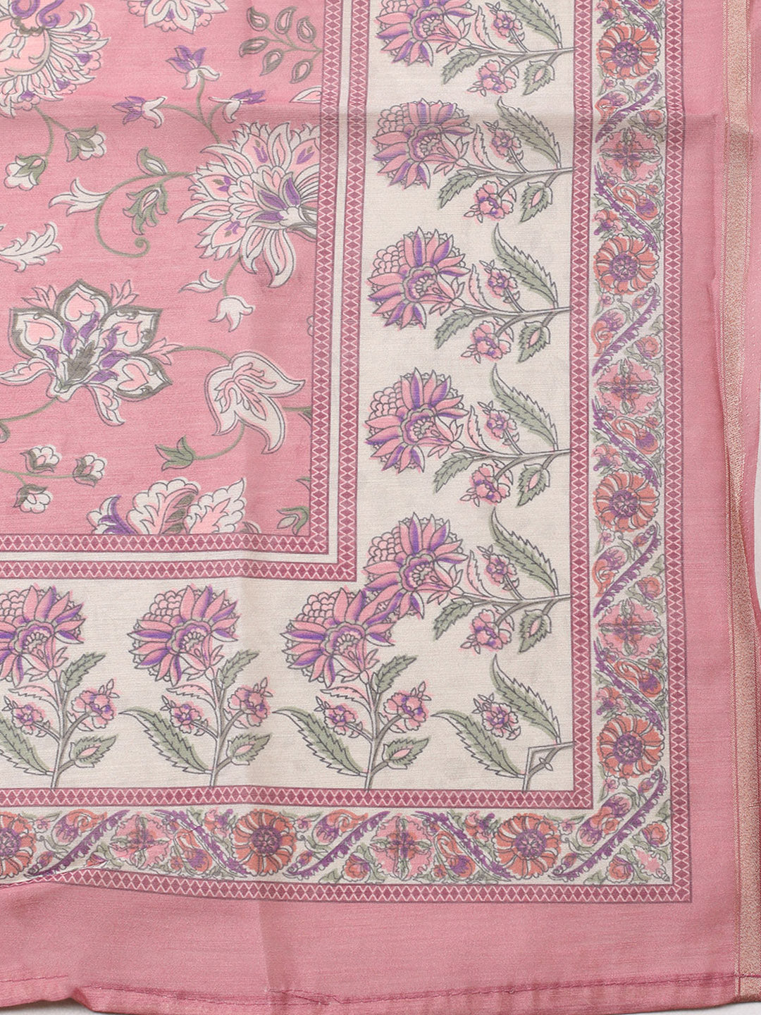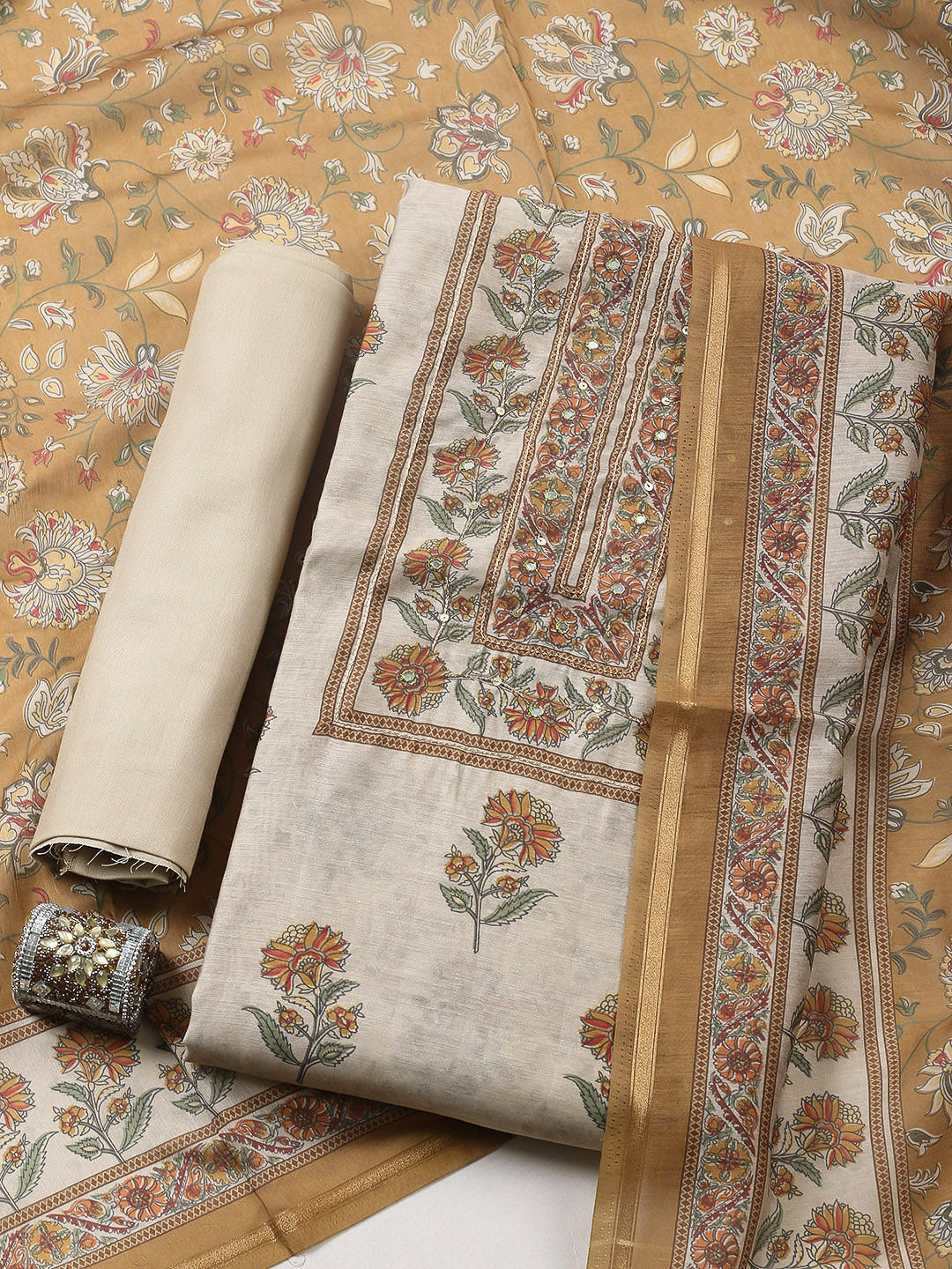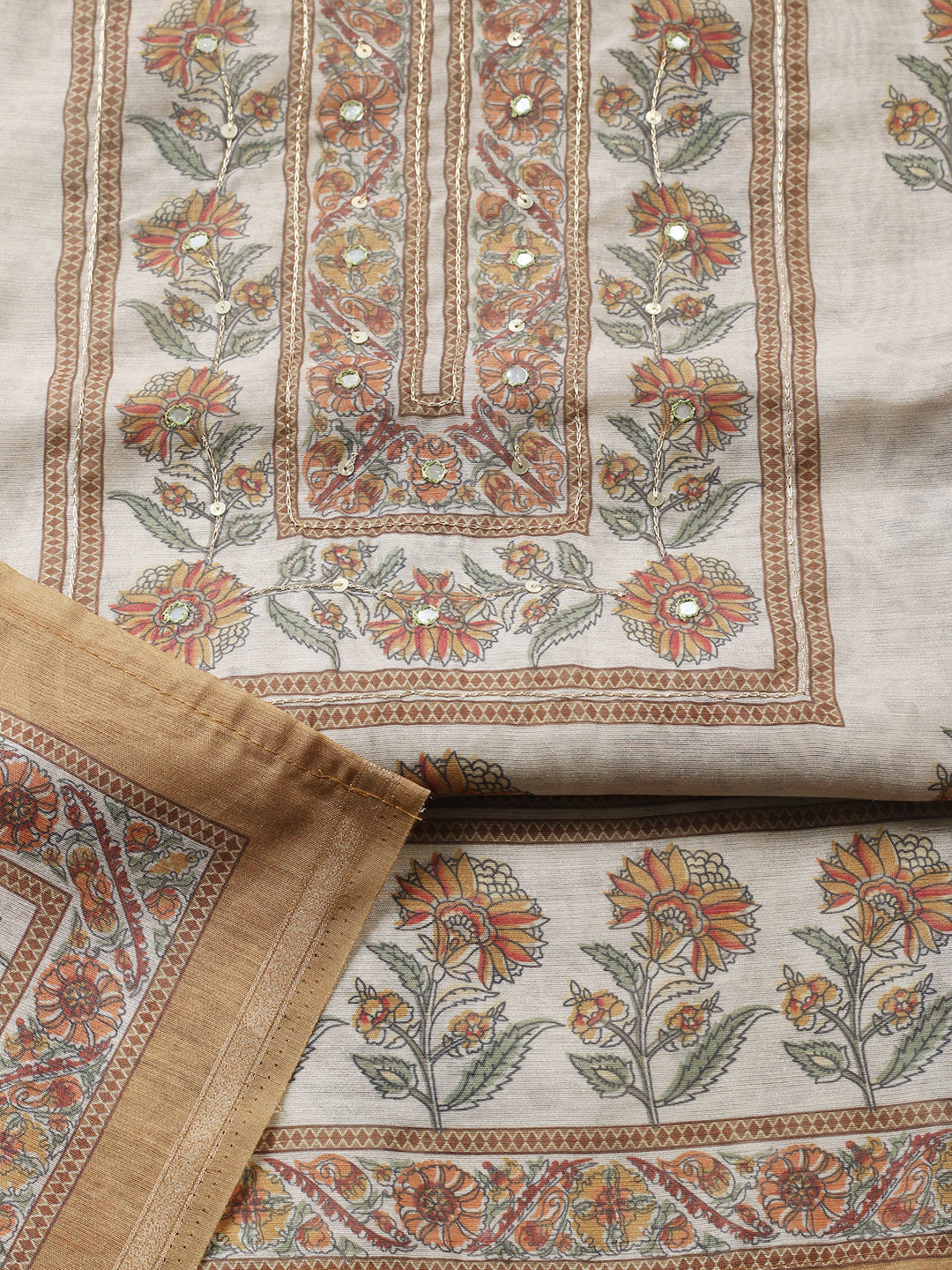 Printed Chanderi Unstitched Suit With Pant & Dupatta