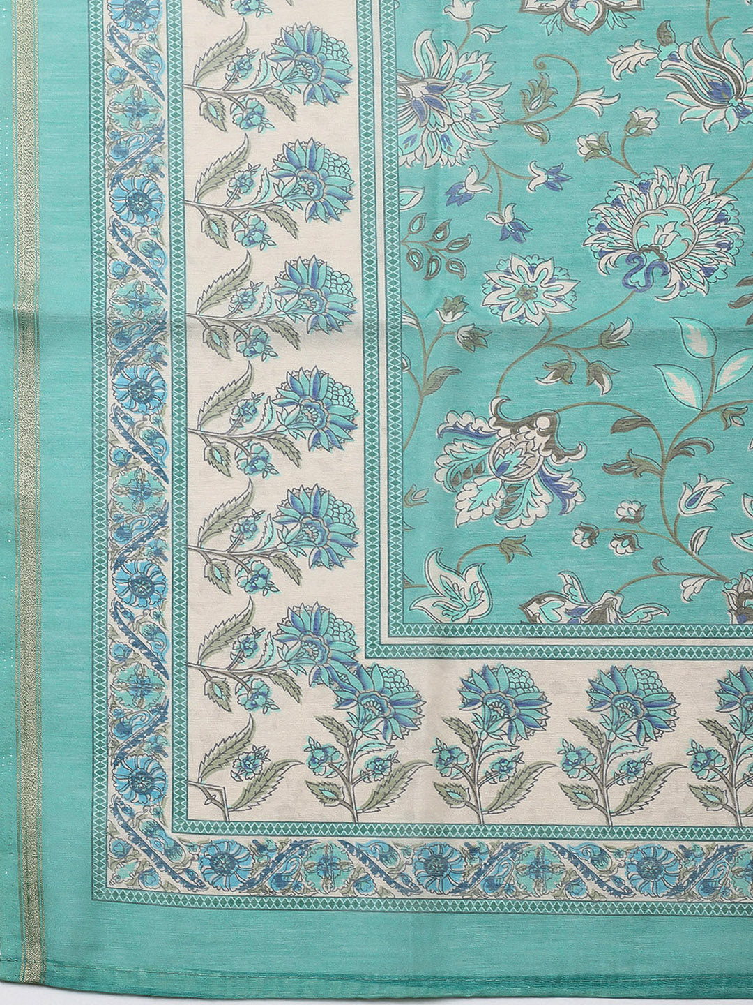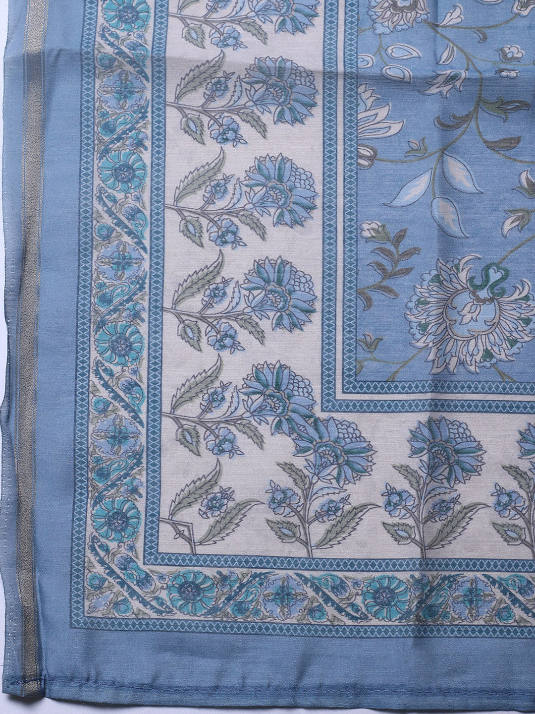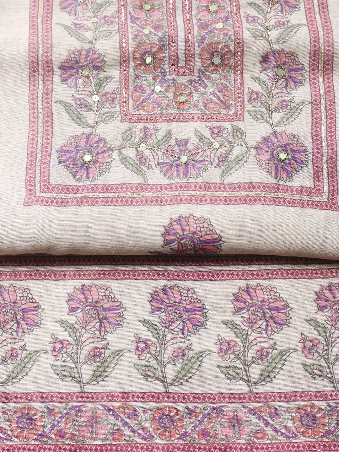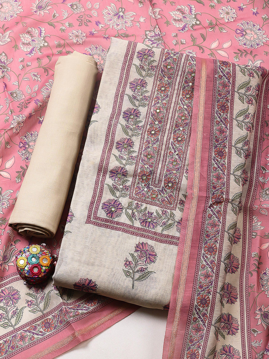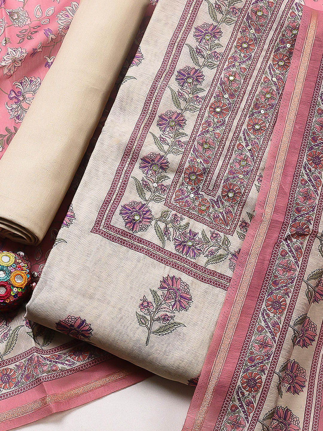 Printed Chanderi Unstitched Suit With Pant & Dupatta
