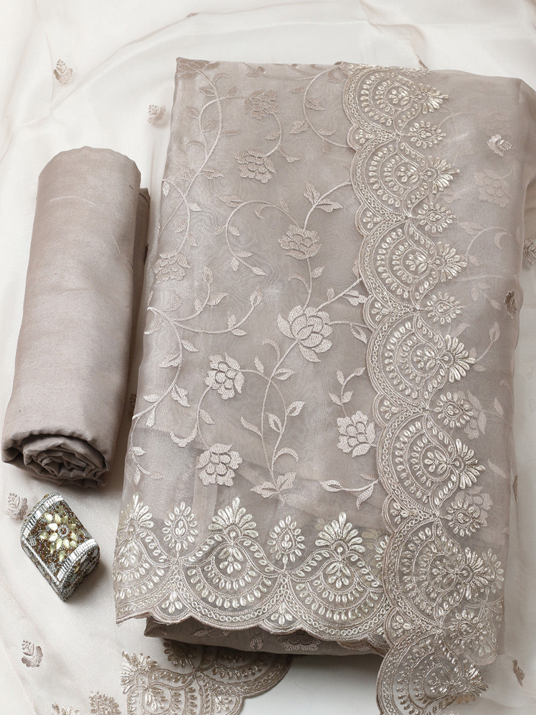 Embroidered Tissue Unstitched Suit With Pant & Dupatta
