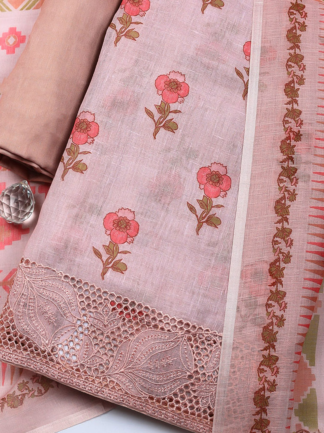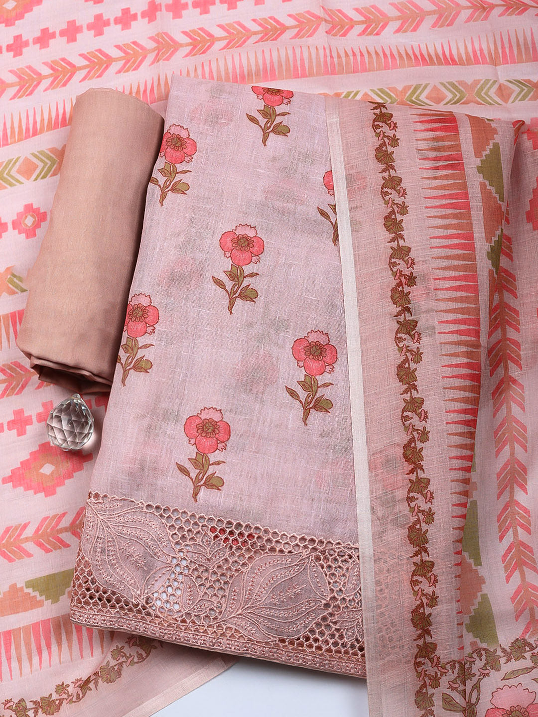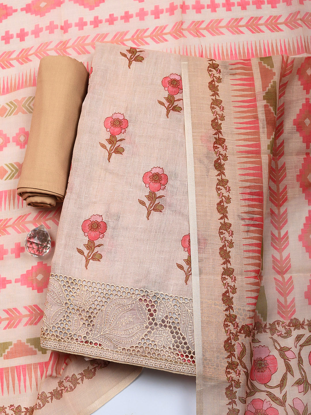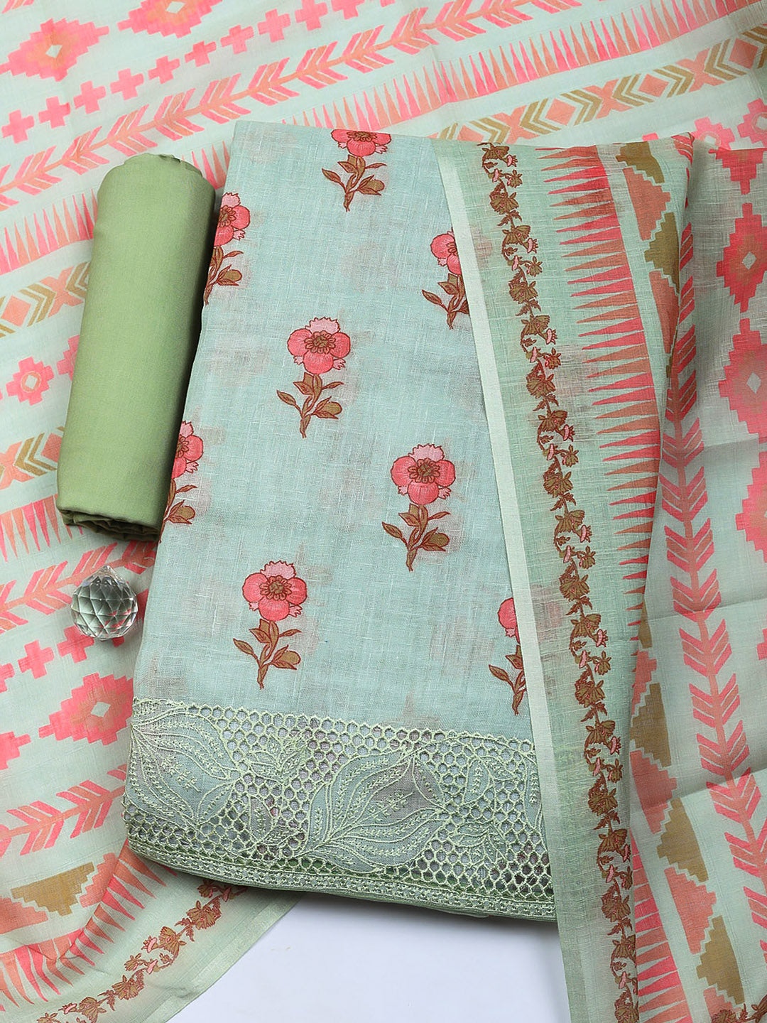 Embroidered Linen Blend Unstitched Suit With Pant & Dupatta