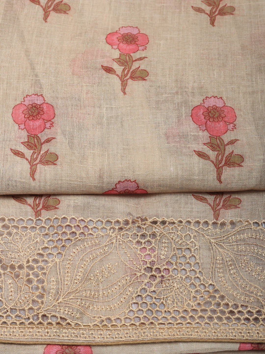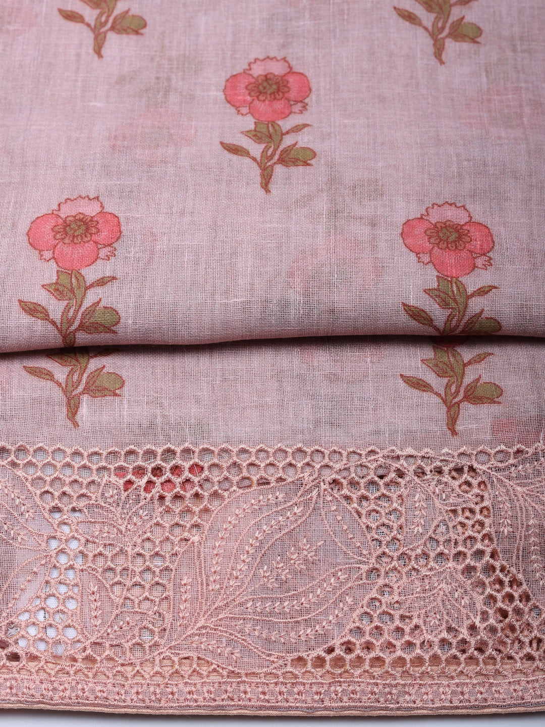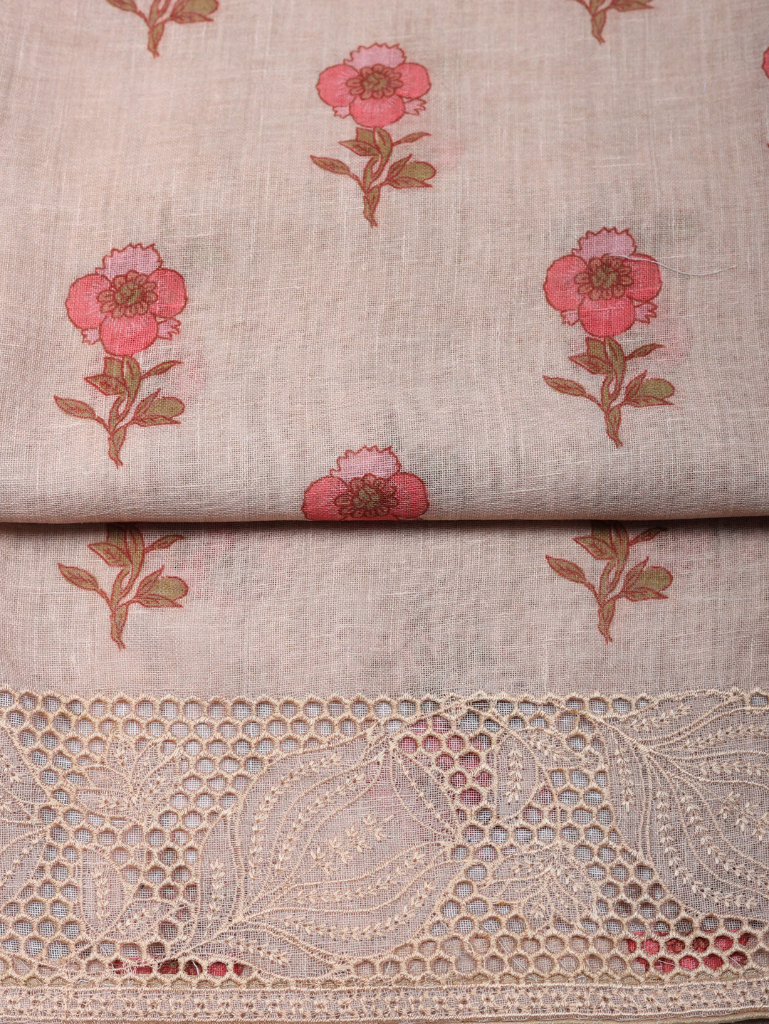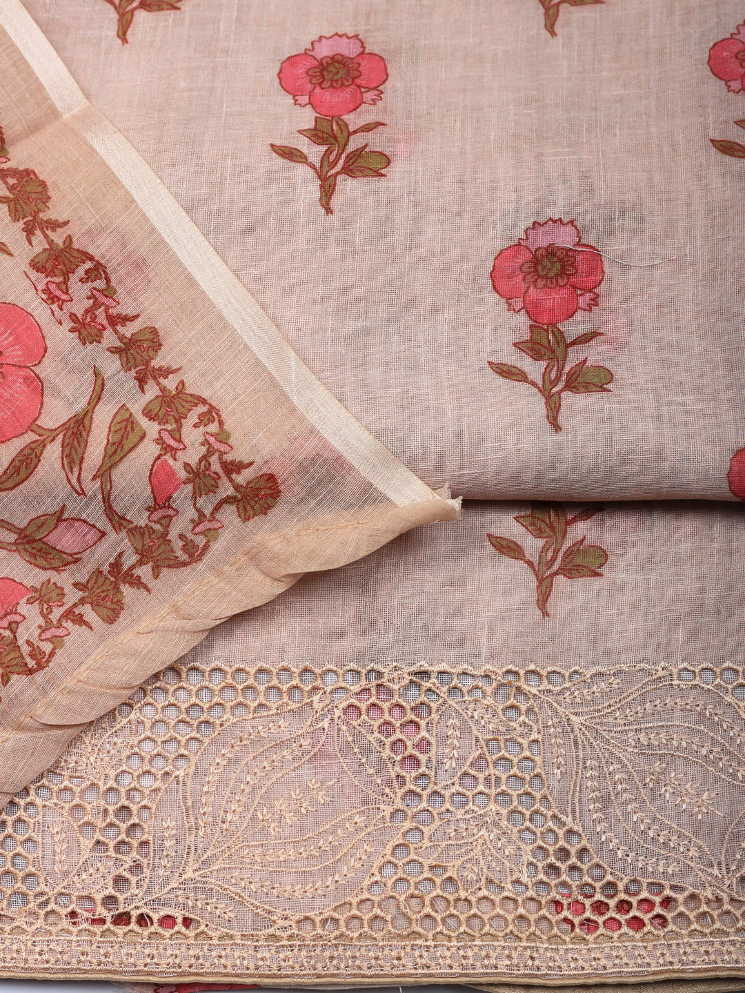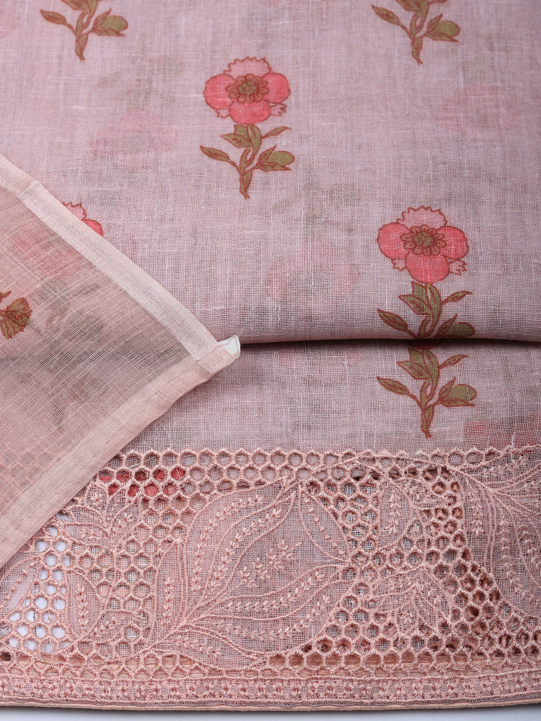 Embroidered Linen Blend Unstitched Suit With Pant & Dupatta