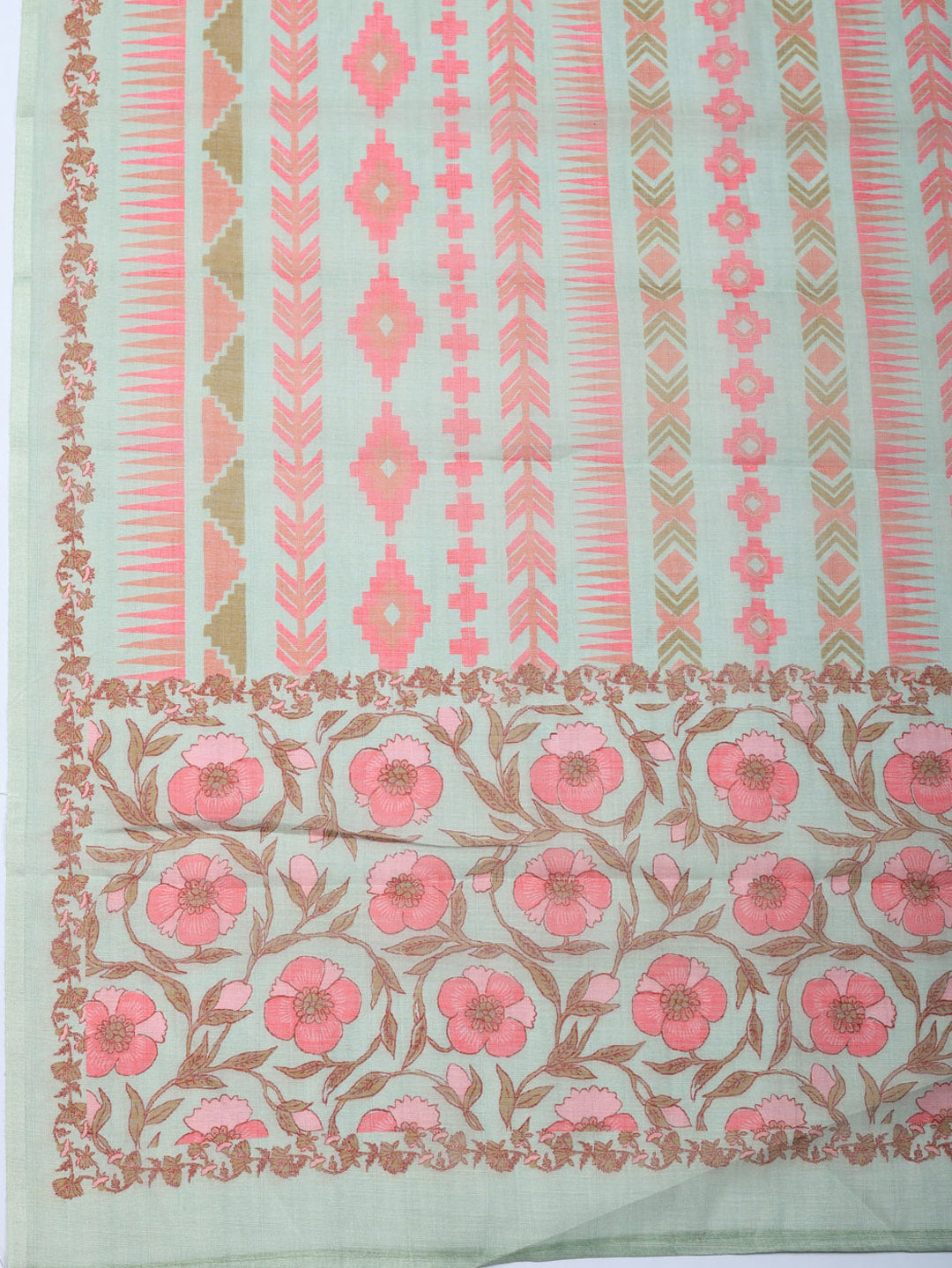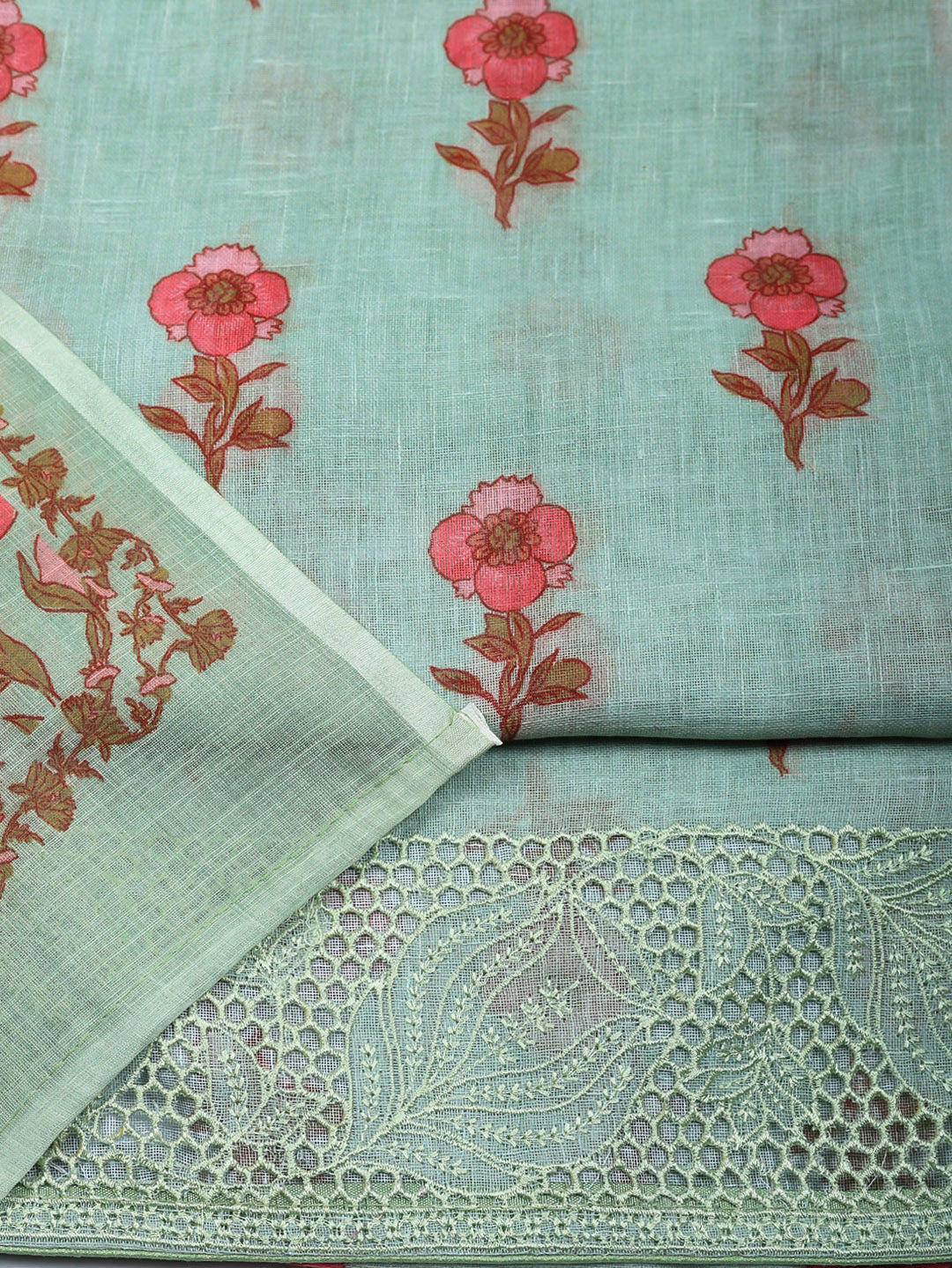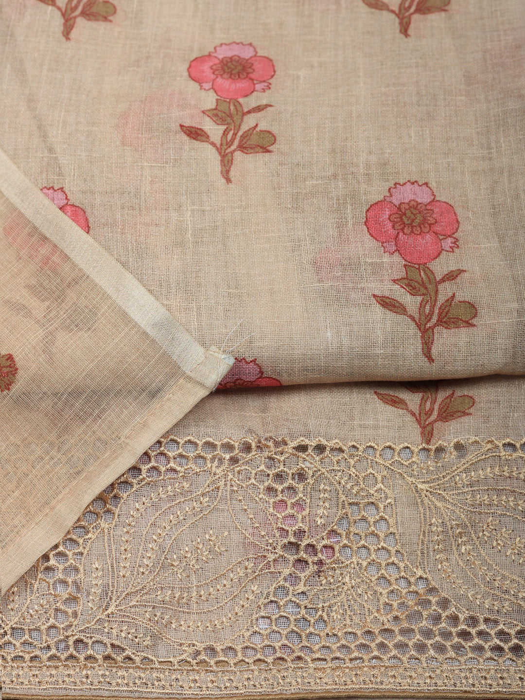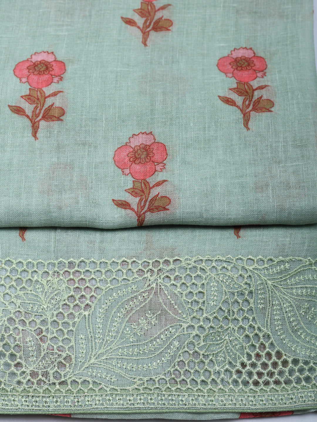 Embroidered Linen Blend Unstitched Suit With Pant & Dupatta