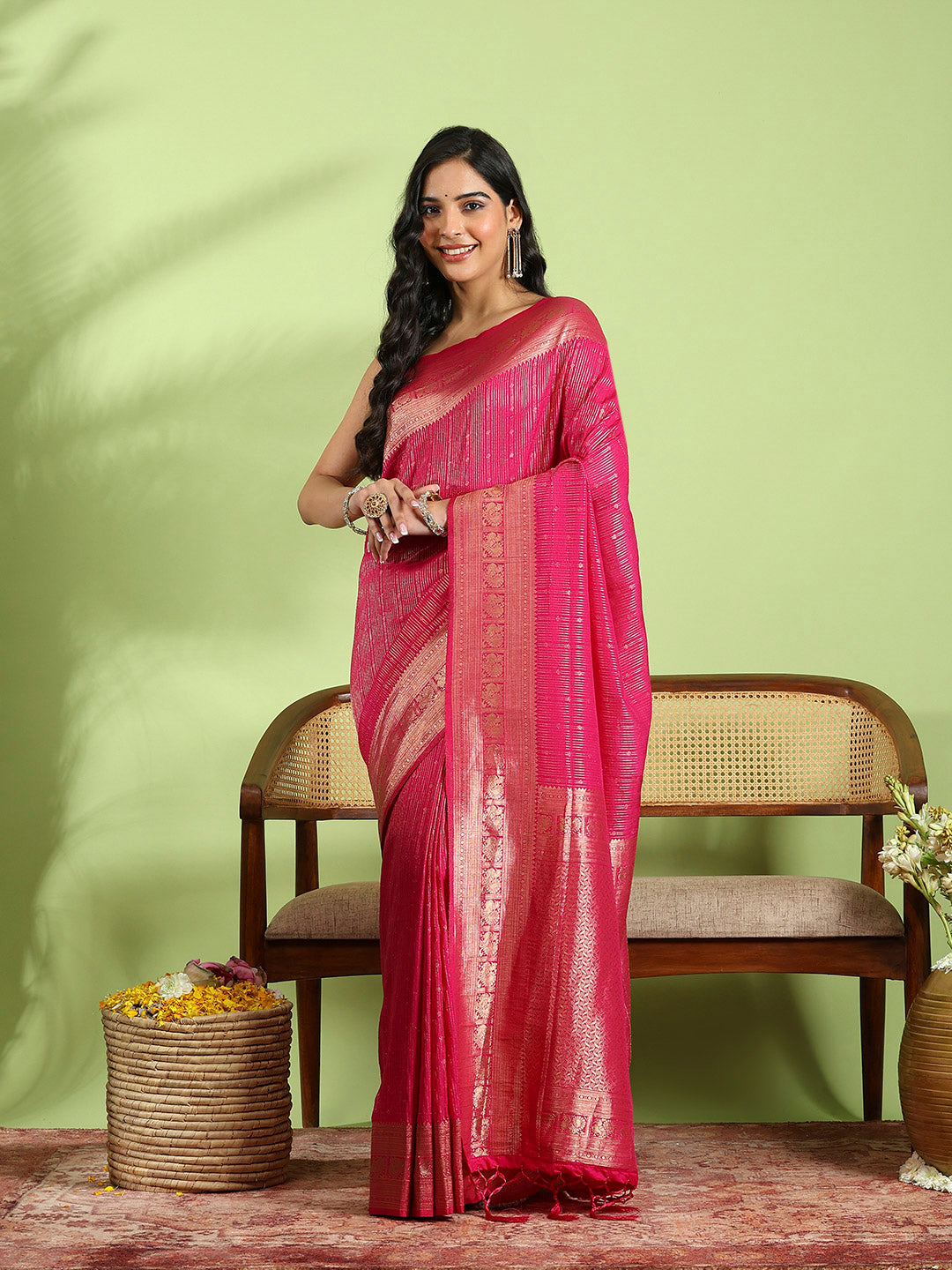 Note: The blouse shown in the pictures is just for Photoshoot purposes. The blouse you will get will be an attached running blouse.