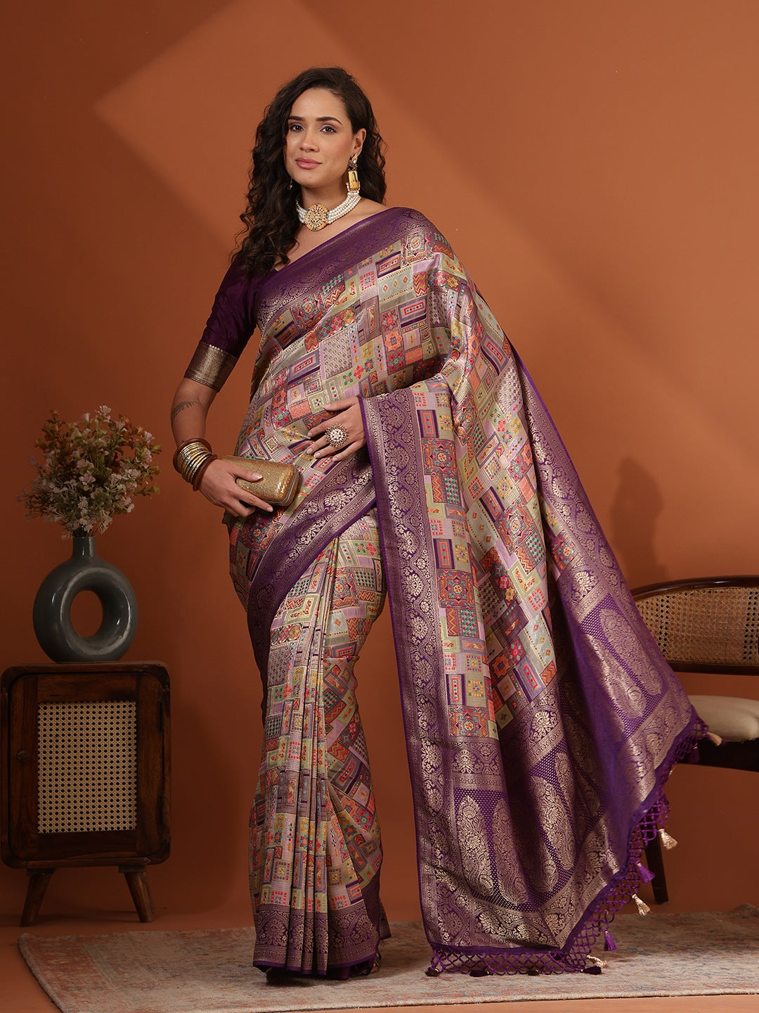 Woven Design Satin Saree