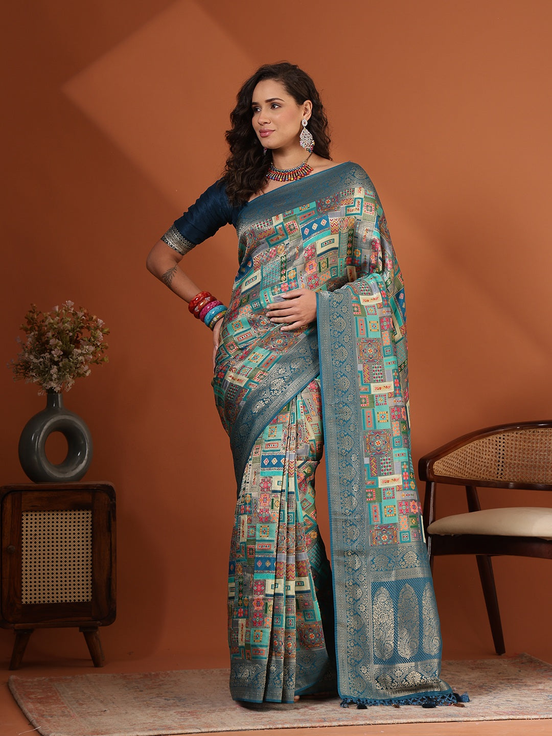 Note: The blouse shown in the pictures is just for Photoshoot purposes. The blouse you will get will be an attached running blouse.