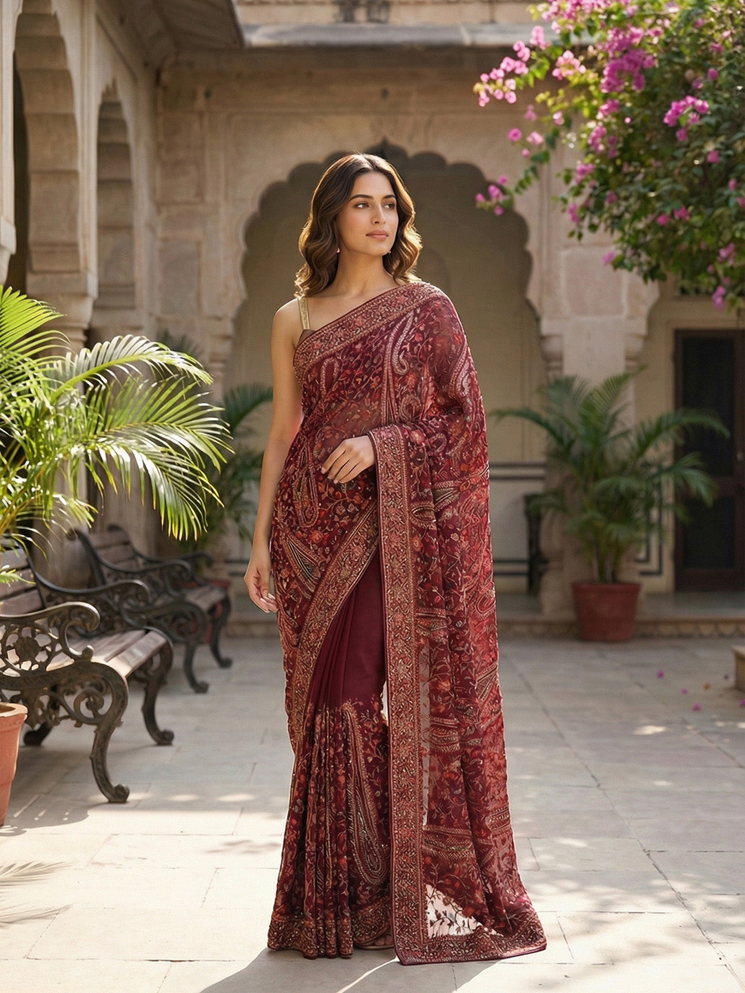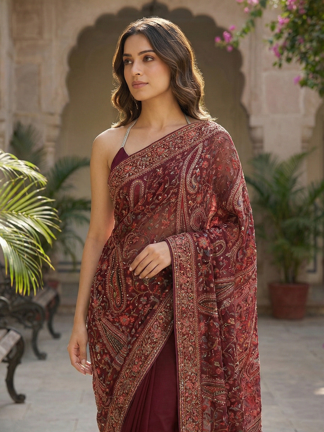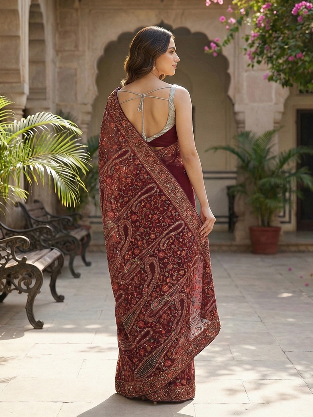 Note: The blouse shown in the pictures is just for Photoshoot purposes. The blouse you will get will be an attached running blouse.