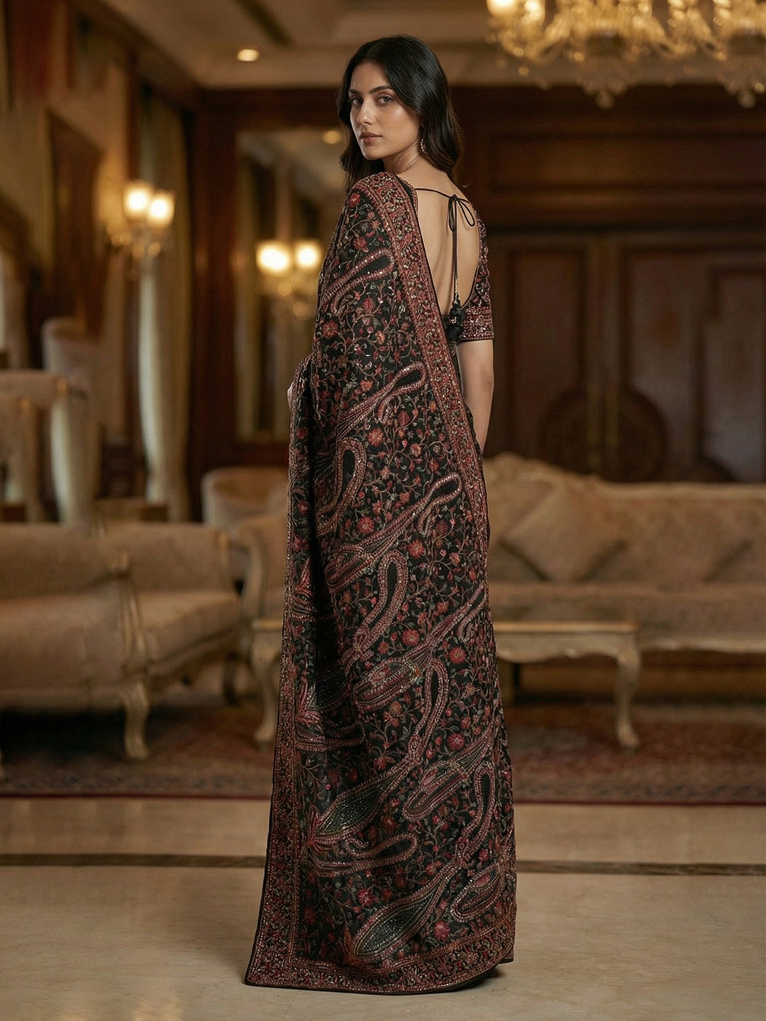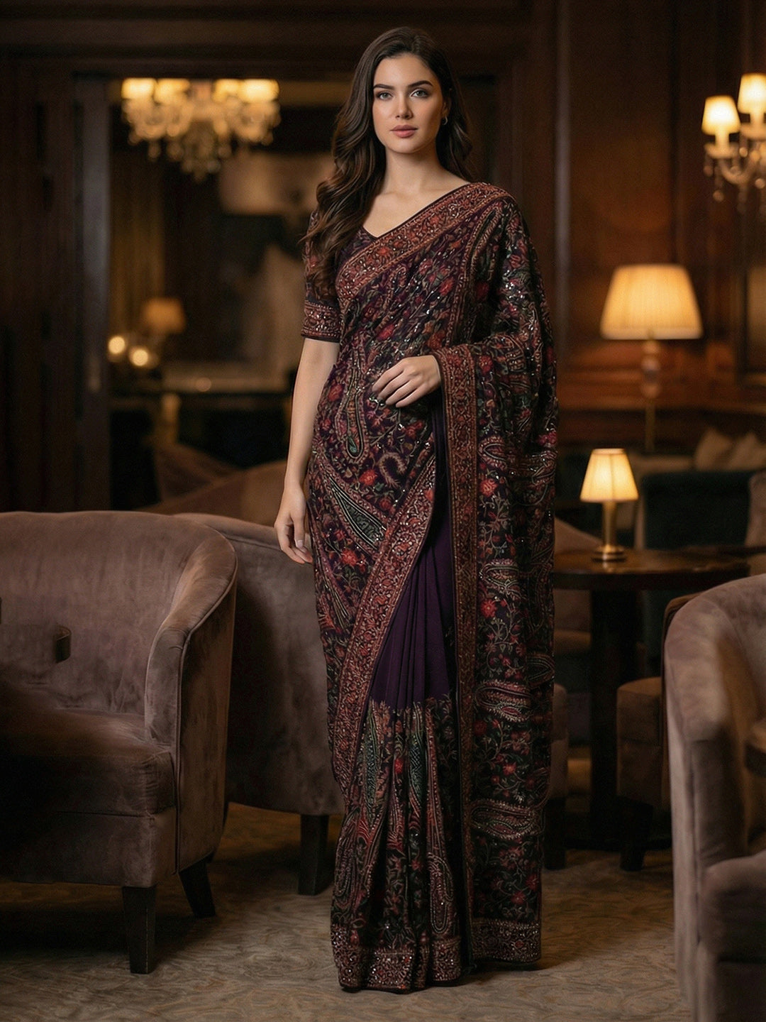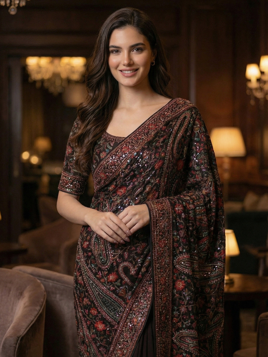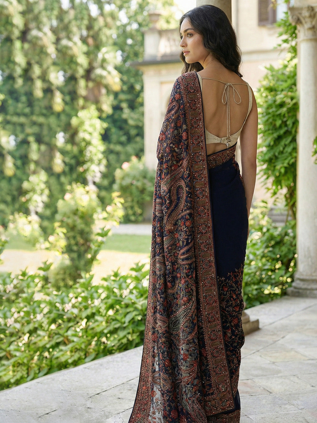 Note: The blouse shown in the pictures is just for Photoshoot purposes. The blouse you will get will be an attached running blouse.