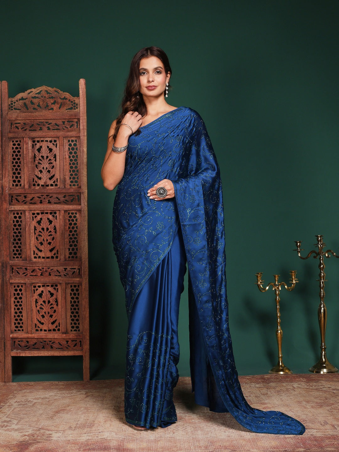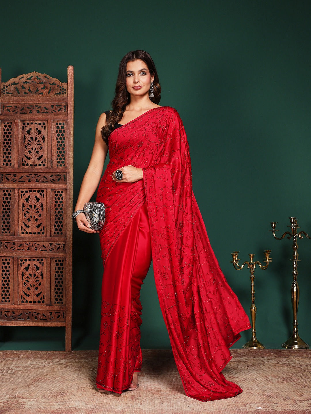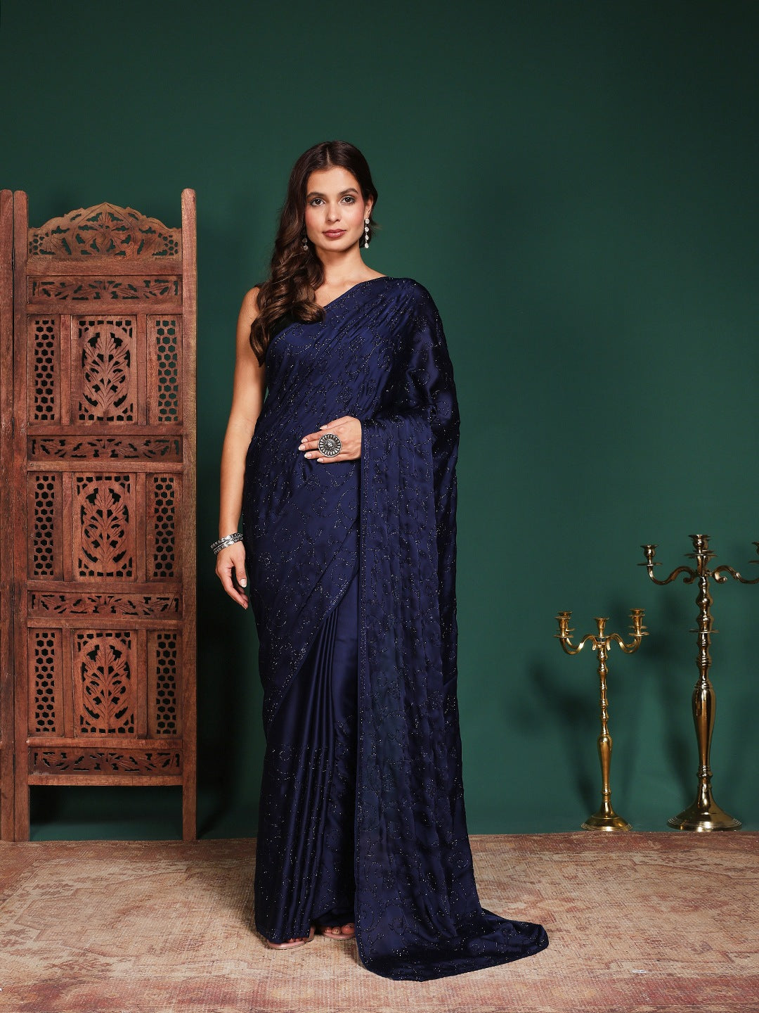 Note: The blouse shown in the pictures is just for Photoshoot purposes. The blouse you will get will be an attached running blouse.