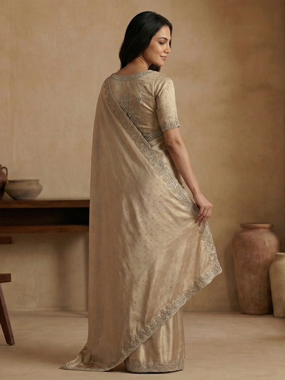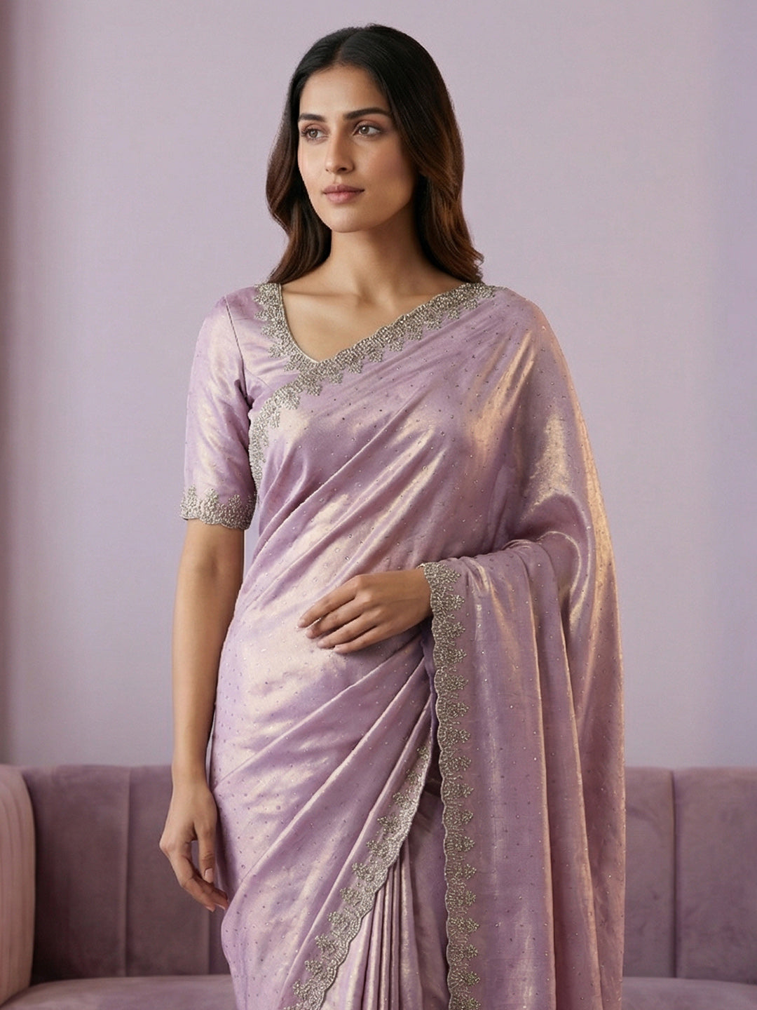 Note: The blouse shown in the pictures is just for Photoshoot purposes. The blouse you will get will be an attached running blouse.