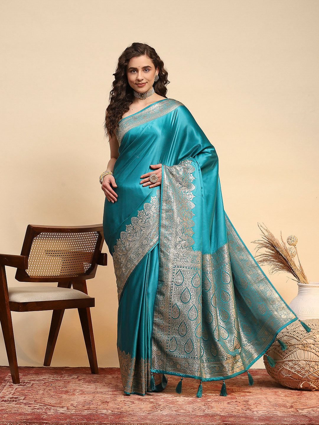 Note: The blouse shown in the pictures is just for Photoshoot purposes. The blouse you will get will be an attached running blouse.
