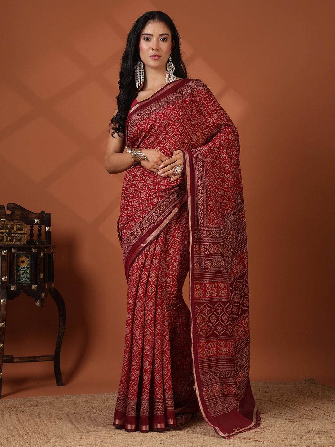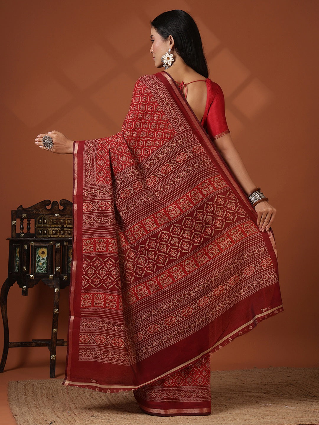 Note: The blouse shown in the pictures is just for Photoshoot purposes. The blouse you will get will be an attached running blouse.