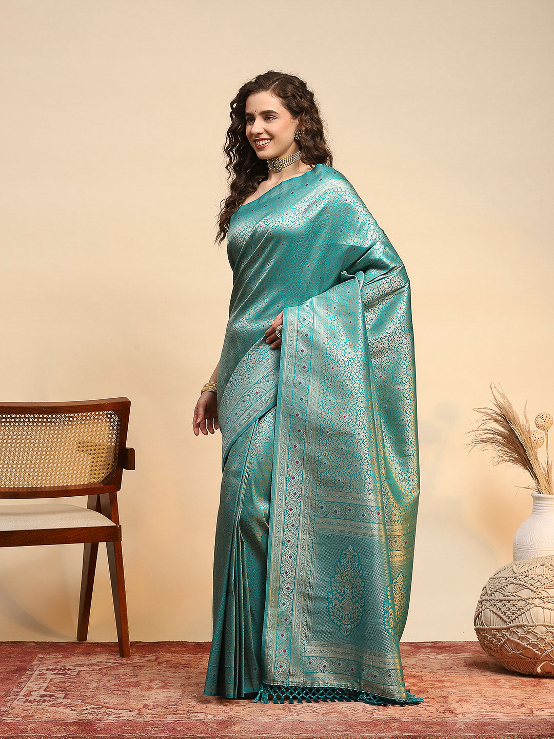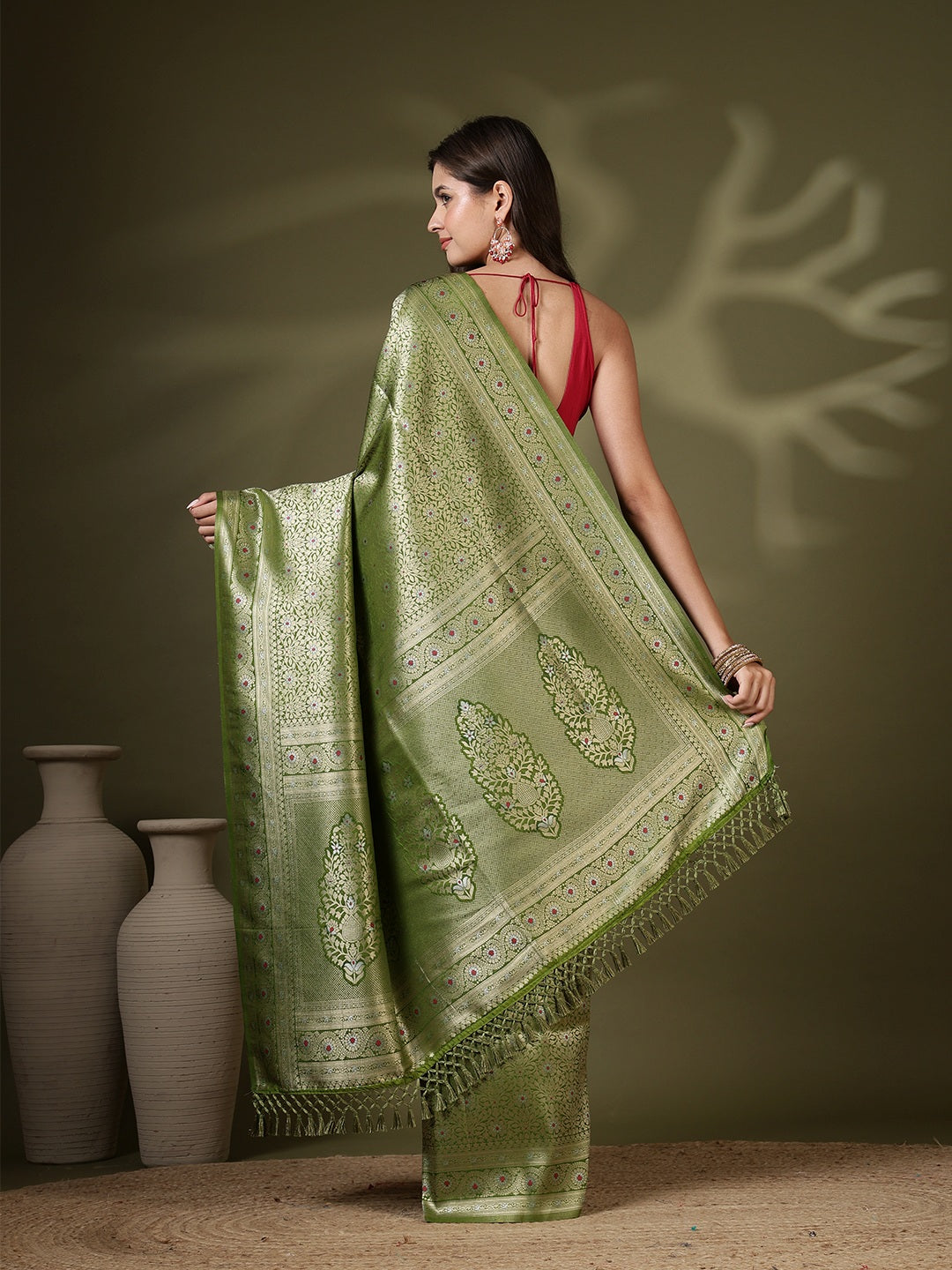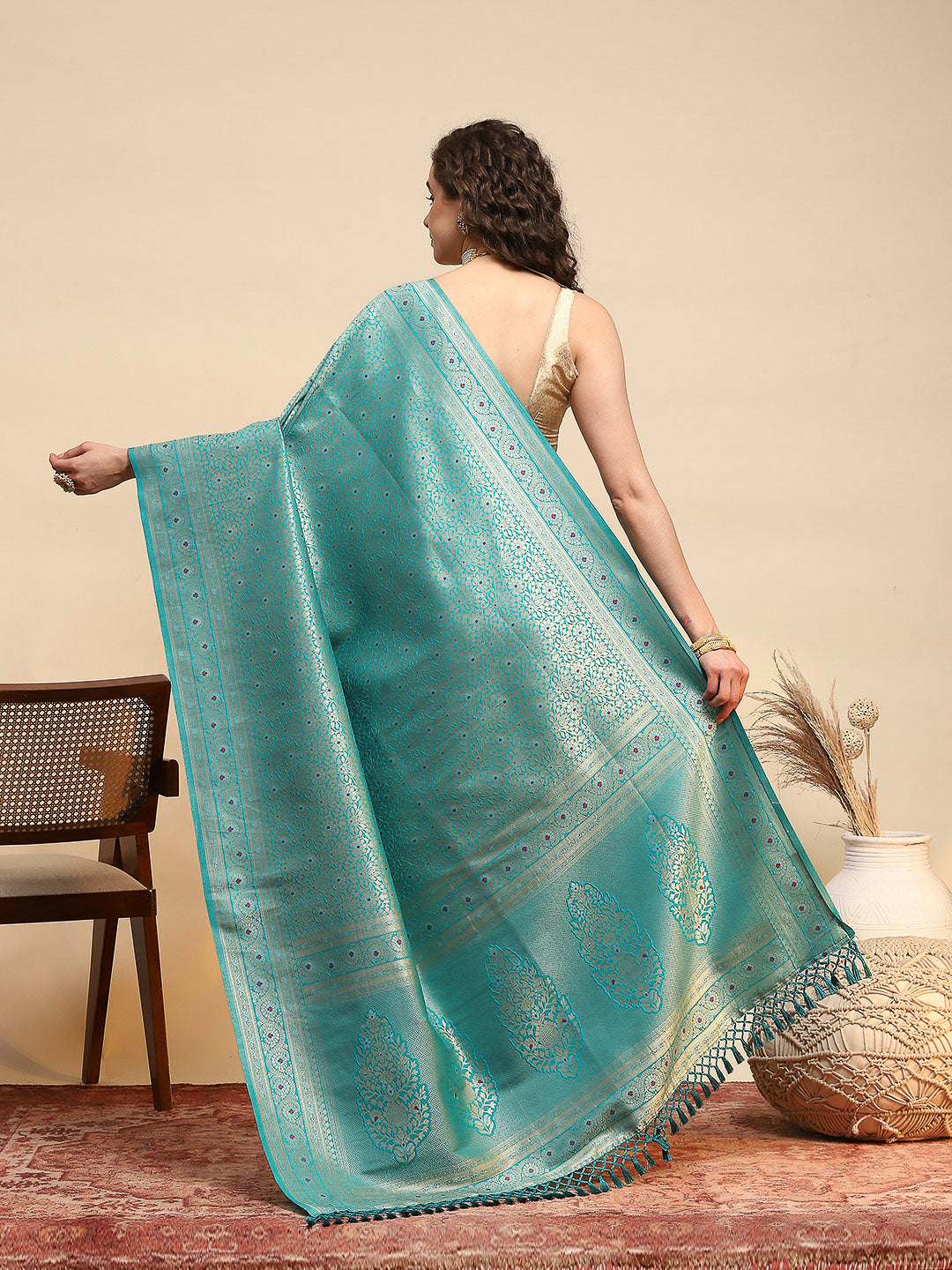 Note: The blouse shown in the pictures is just for Photoshoot purposes. The blouse you will get will be an attached running blouse.