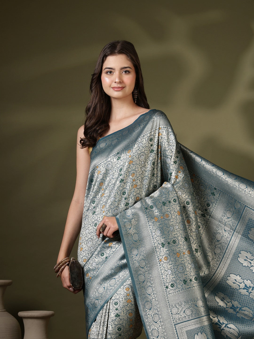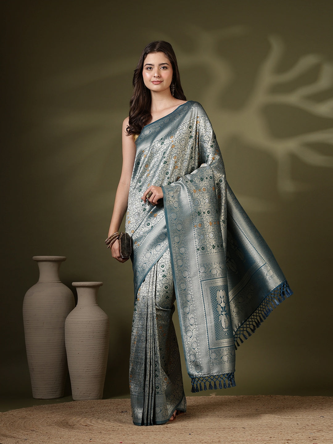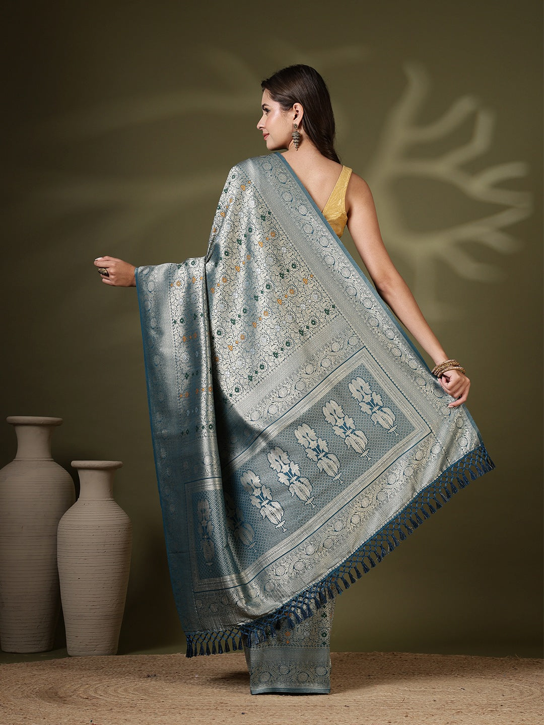 Note: The blouse shown in the pictures is just for Photoshoot purposes. The blouse you will get will be an attached running blouse.
