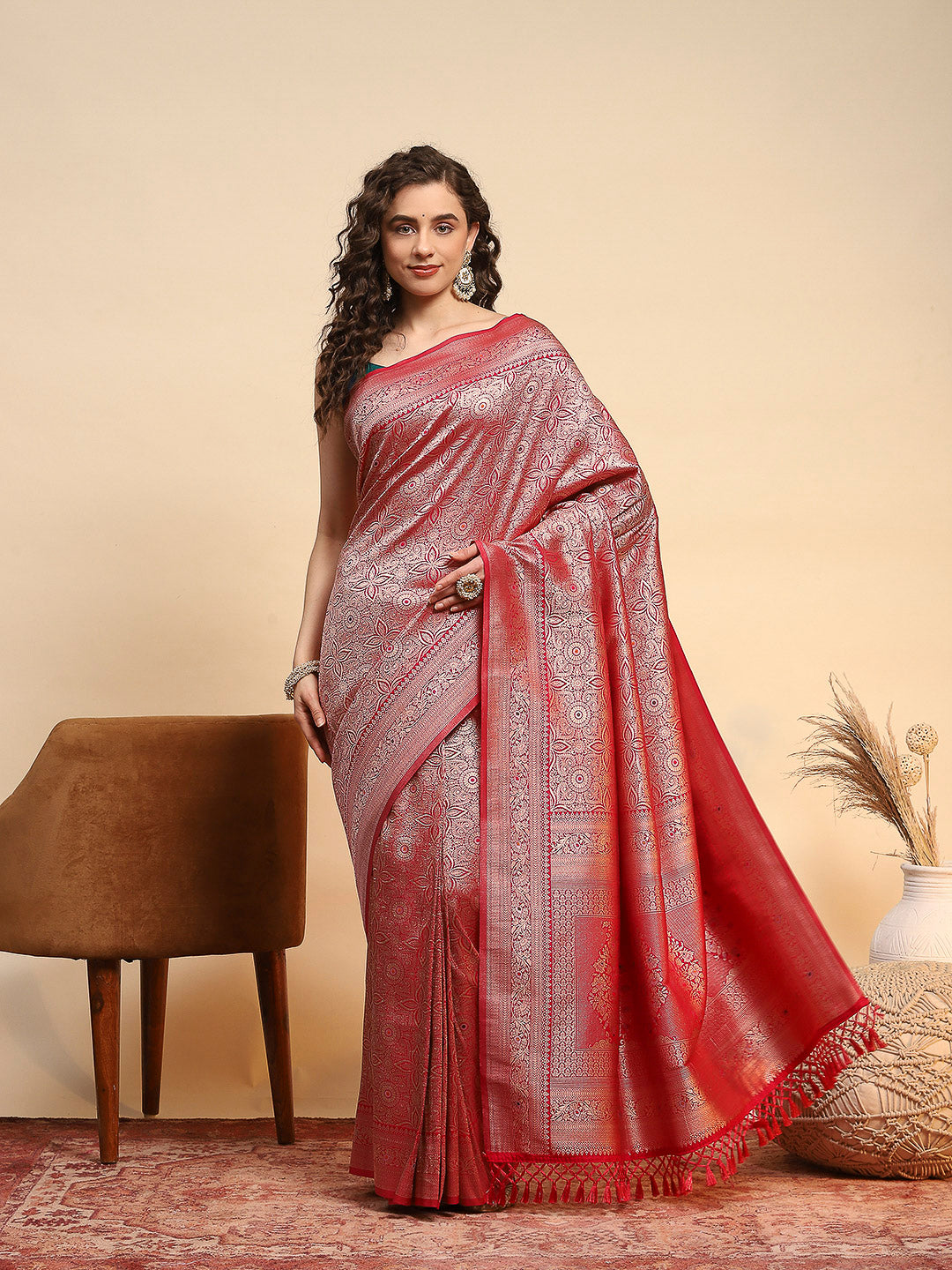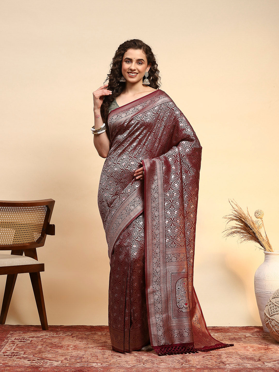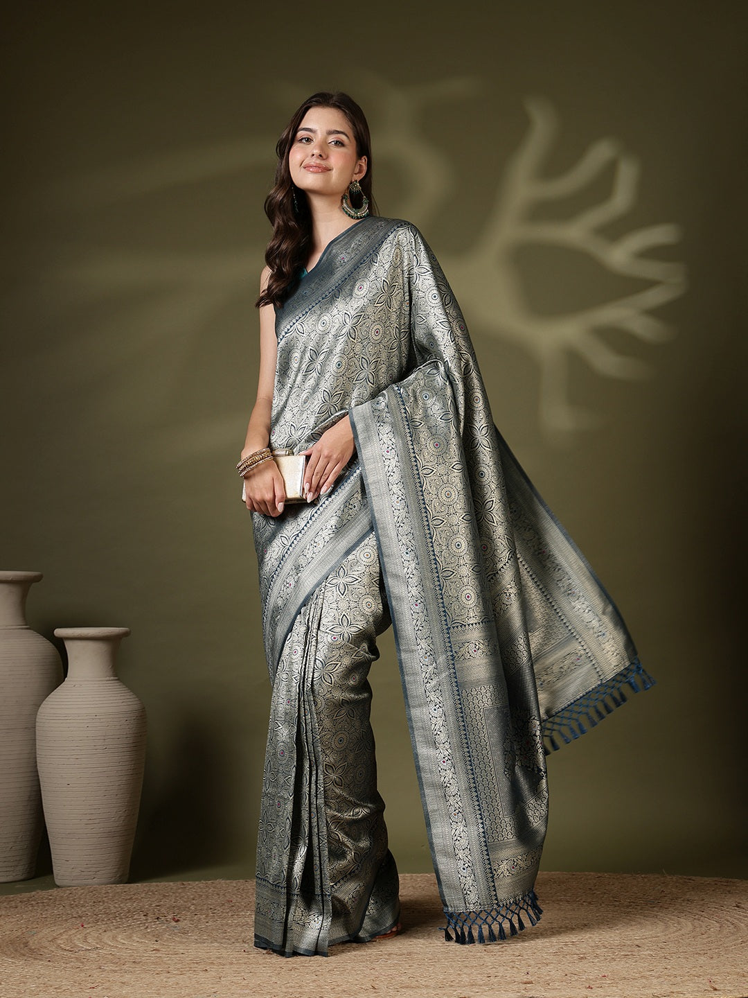 Note: The blouse shown in the pictures is just for Photoshoot purposes. The blouse you will get will be an attached running blouse.