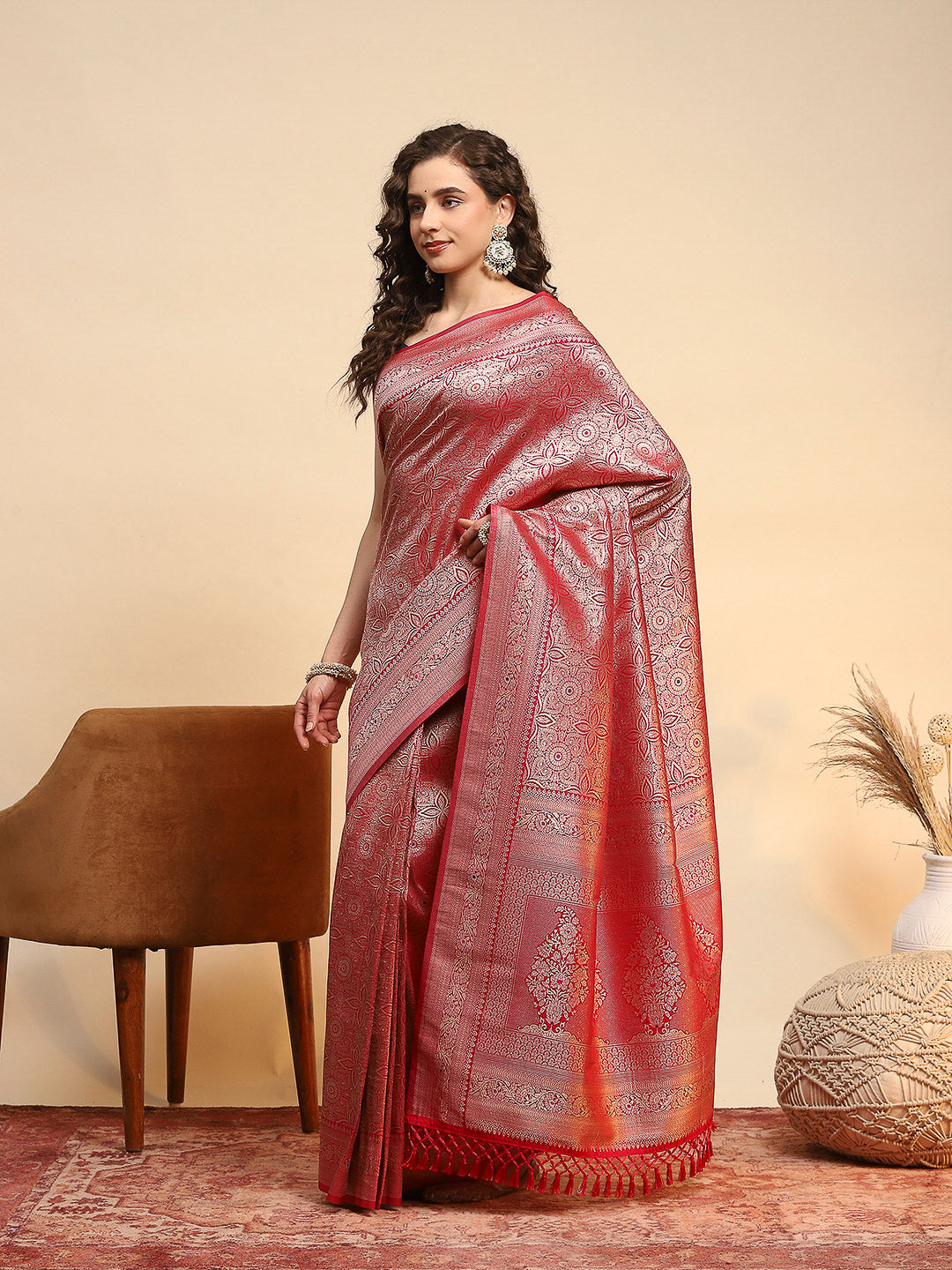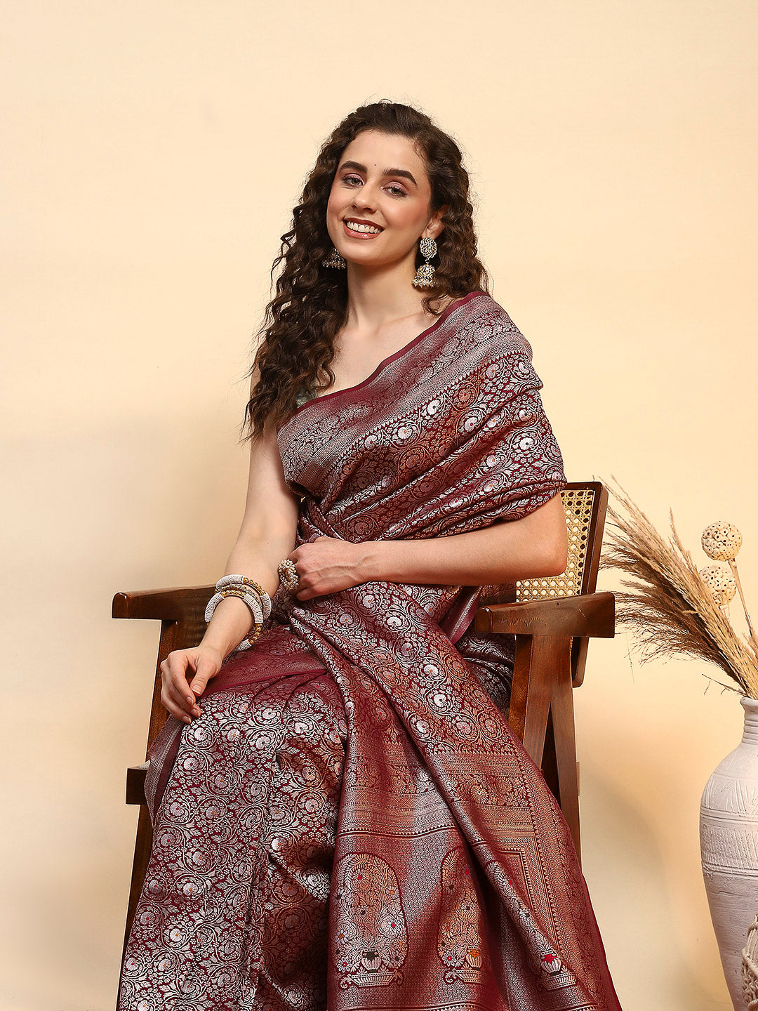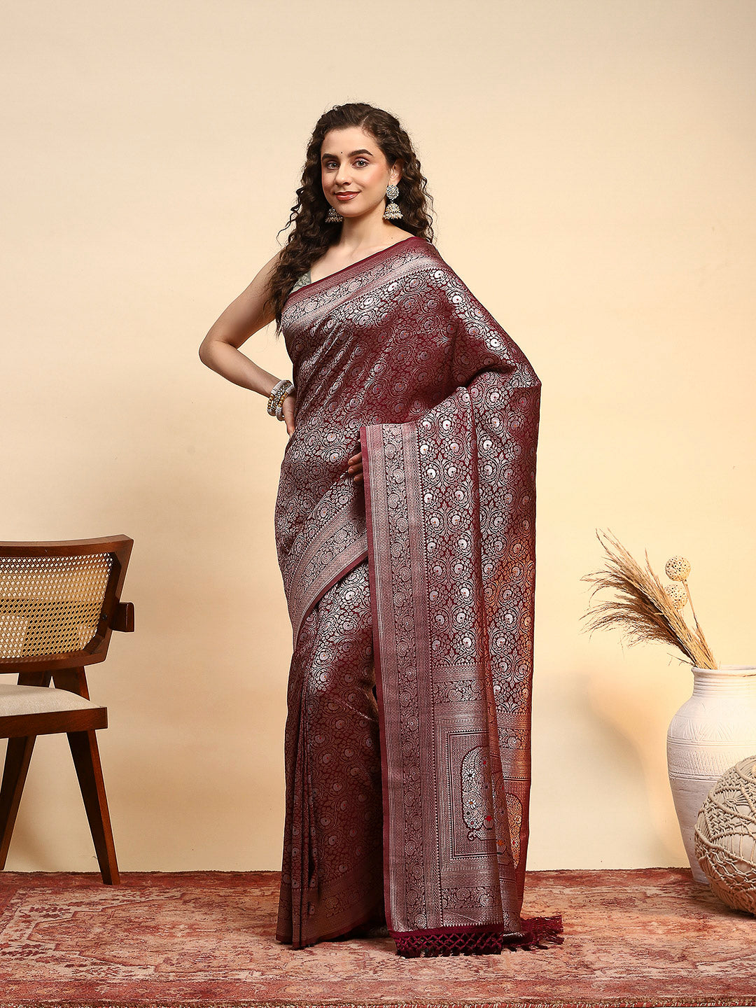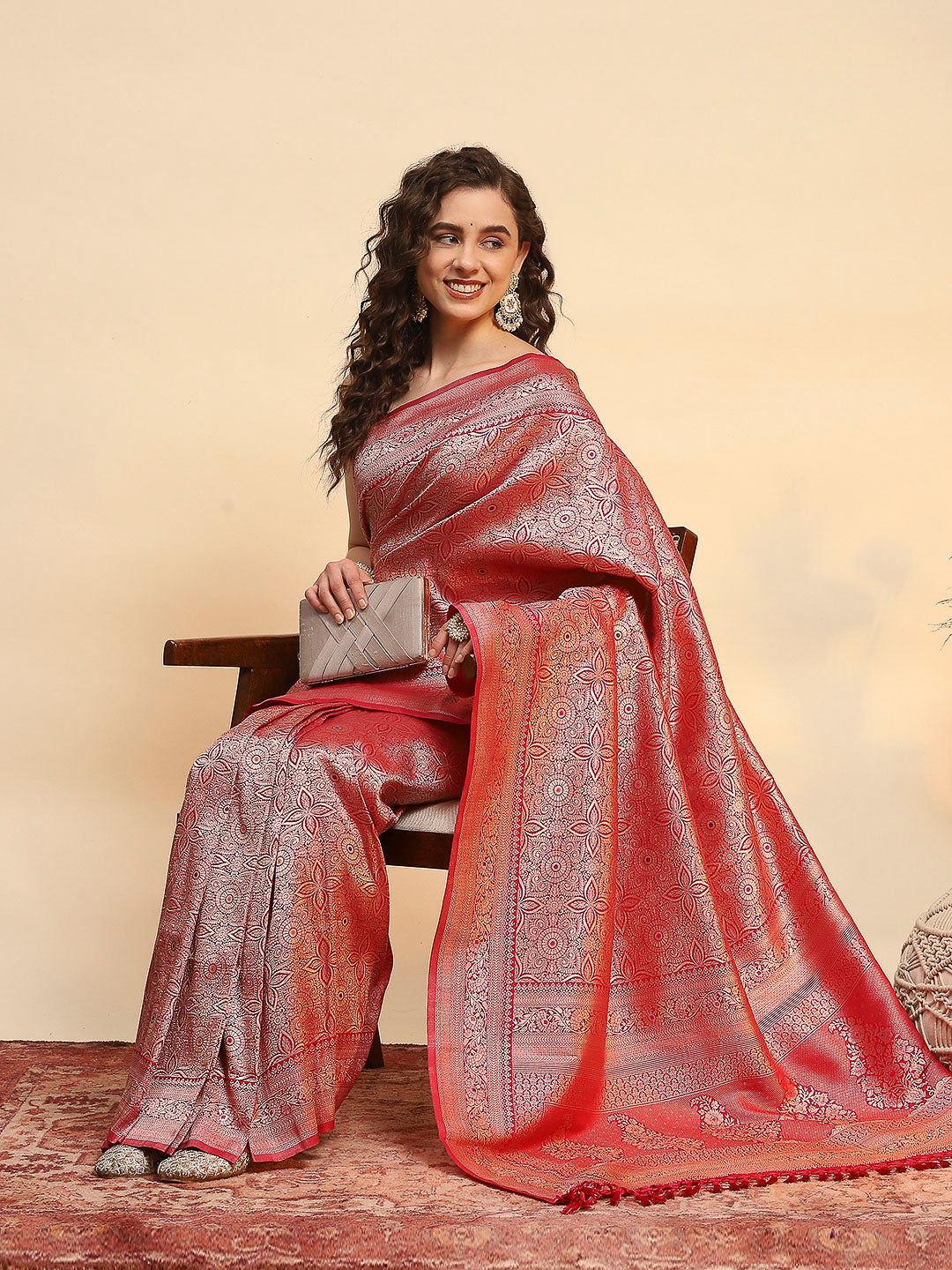 Note: The blouse shown in the pictures is just for Photoshoot purposes. The blouse you will get will be an attached running blouse.
