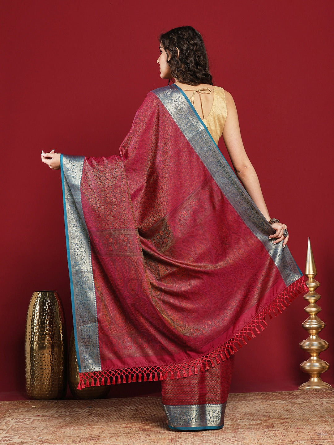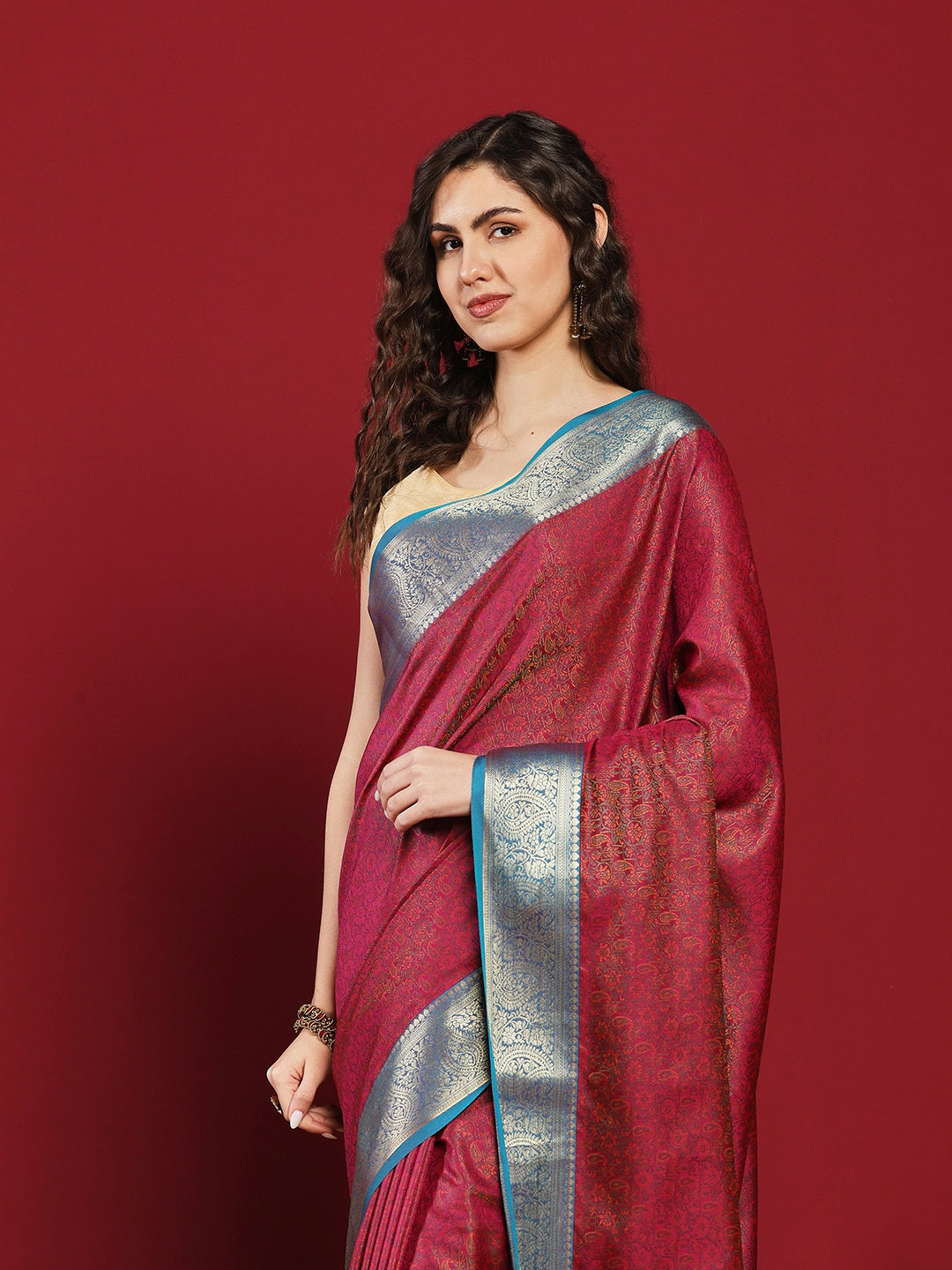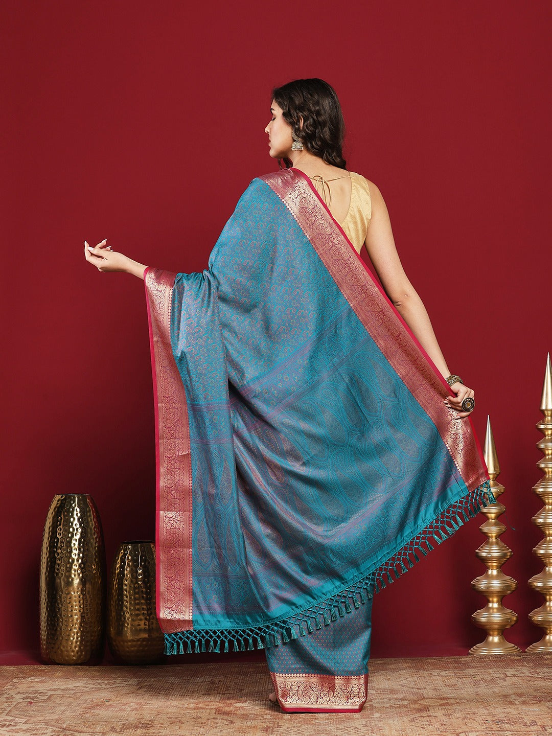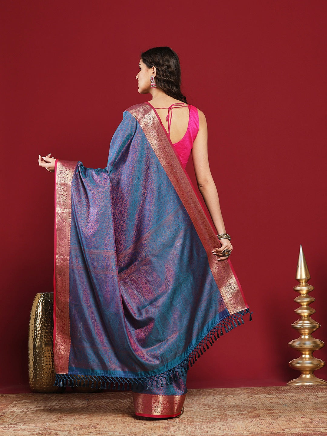 Note: The blouse shown in the pictures is just for Photoshoot purposes. The blouse you will get will be an attached running blouse.