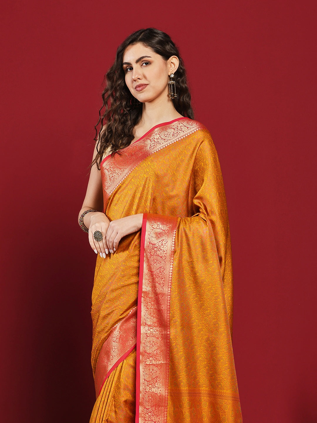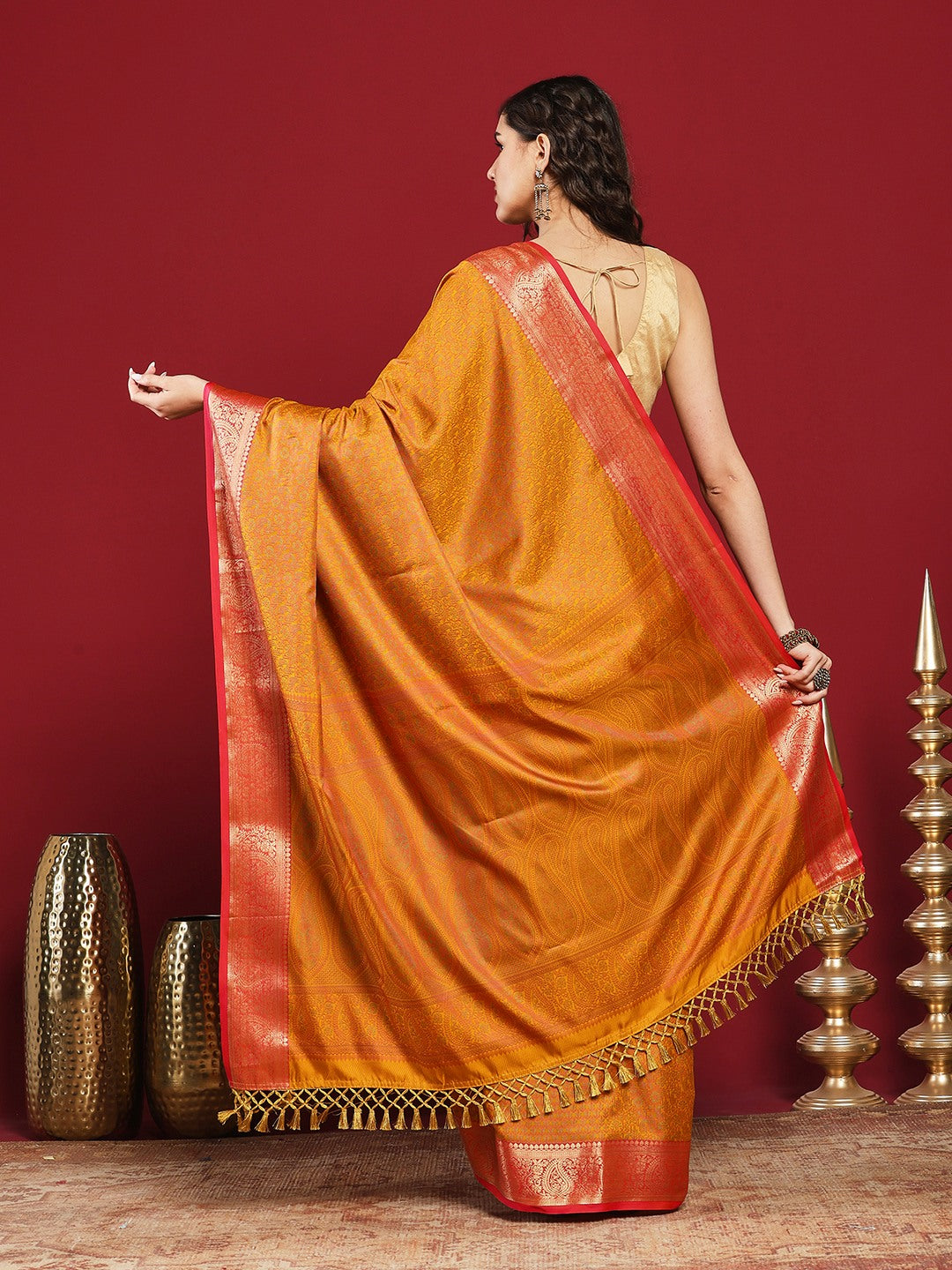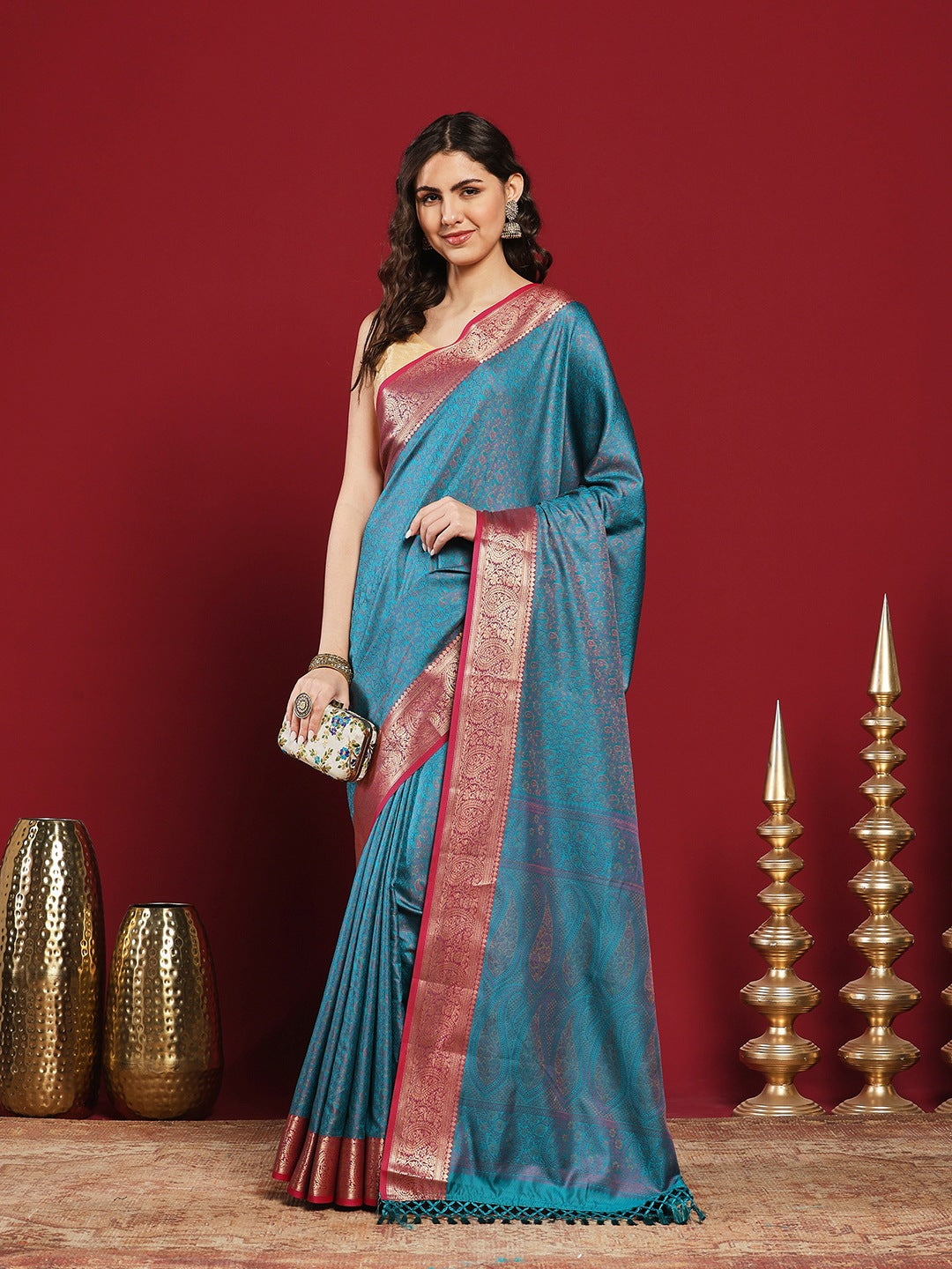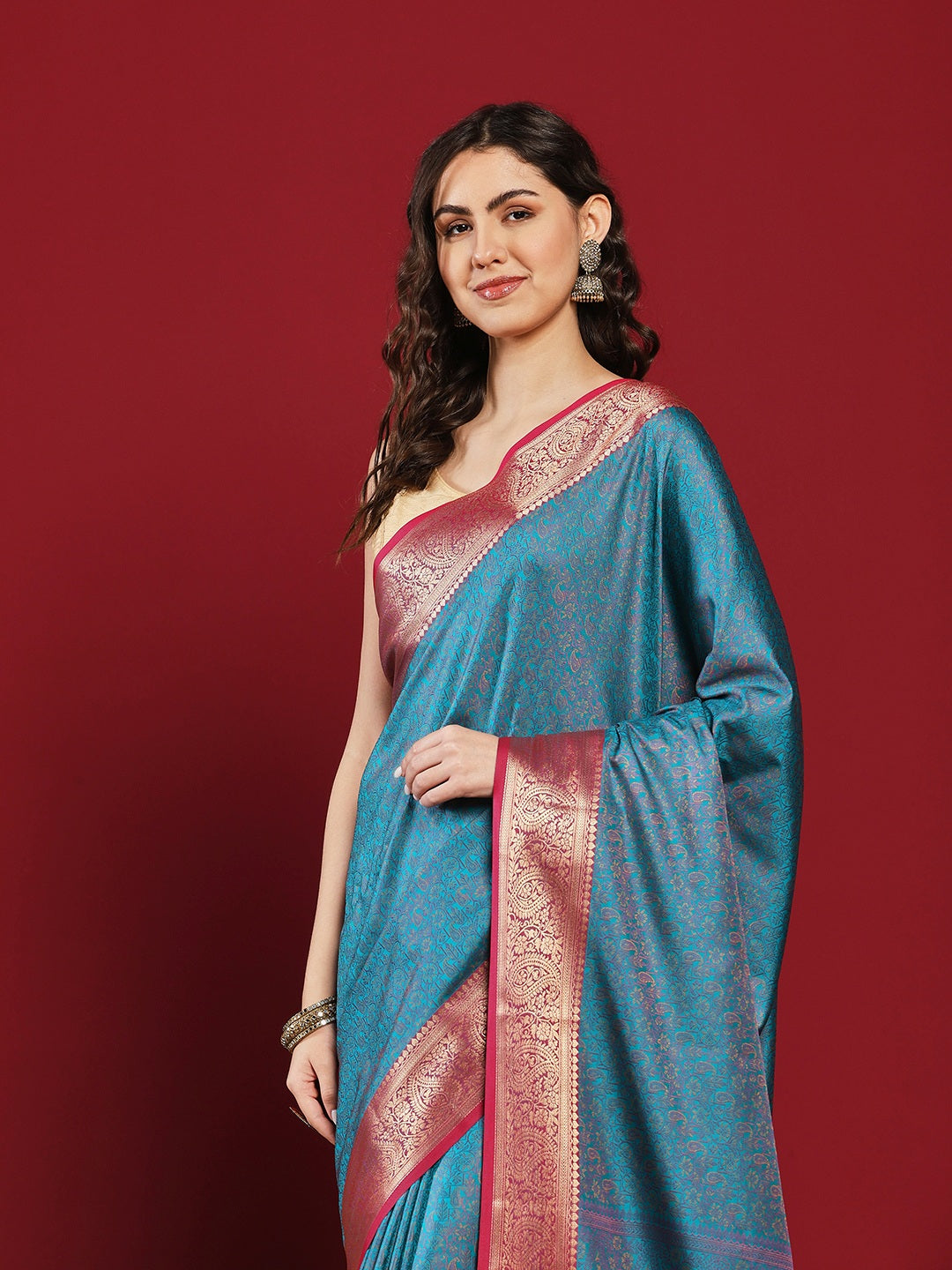 Note: The blouse shown in the pictures is just for Photoshoot purposes. The blouse you will get will be an attached running blouse.