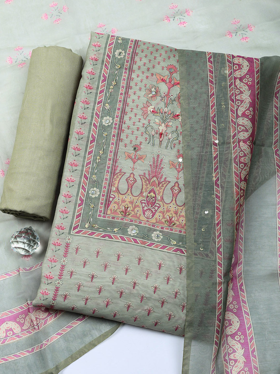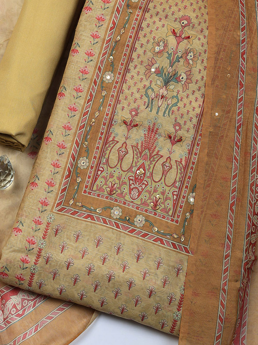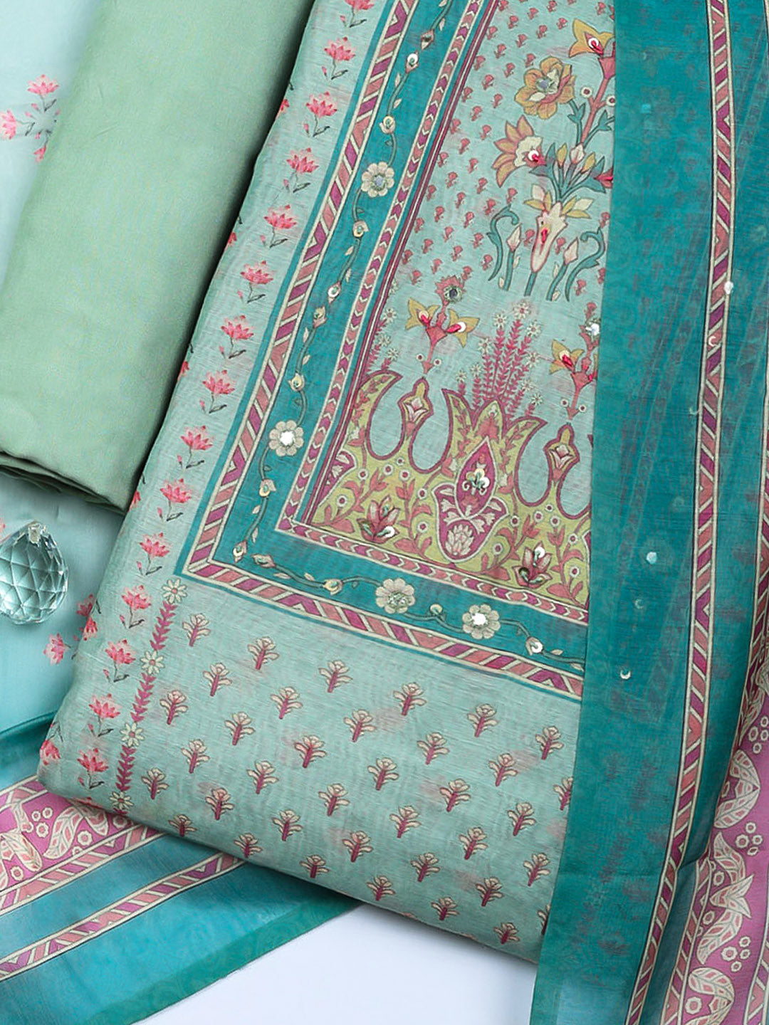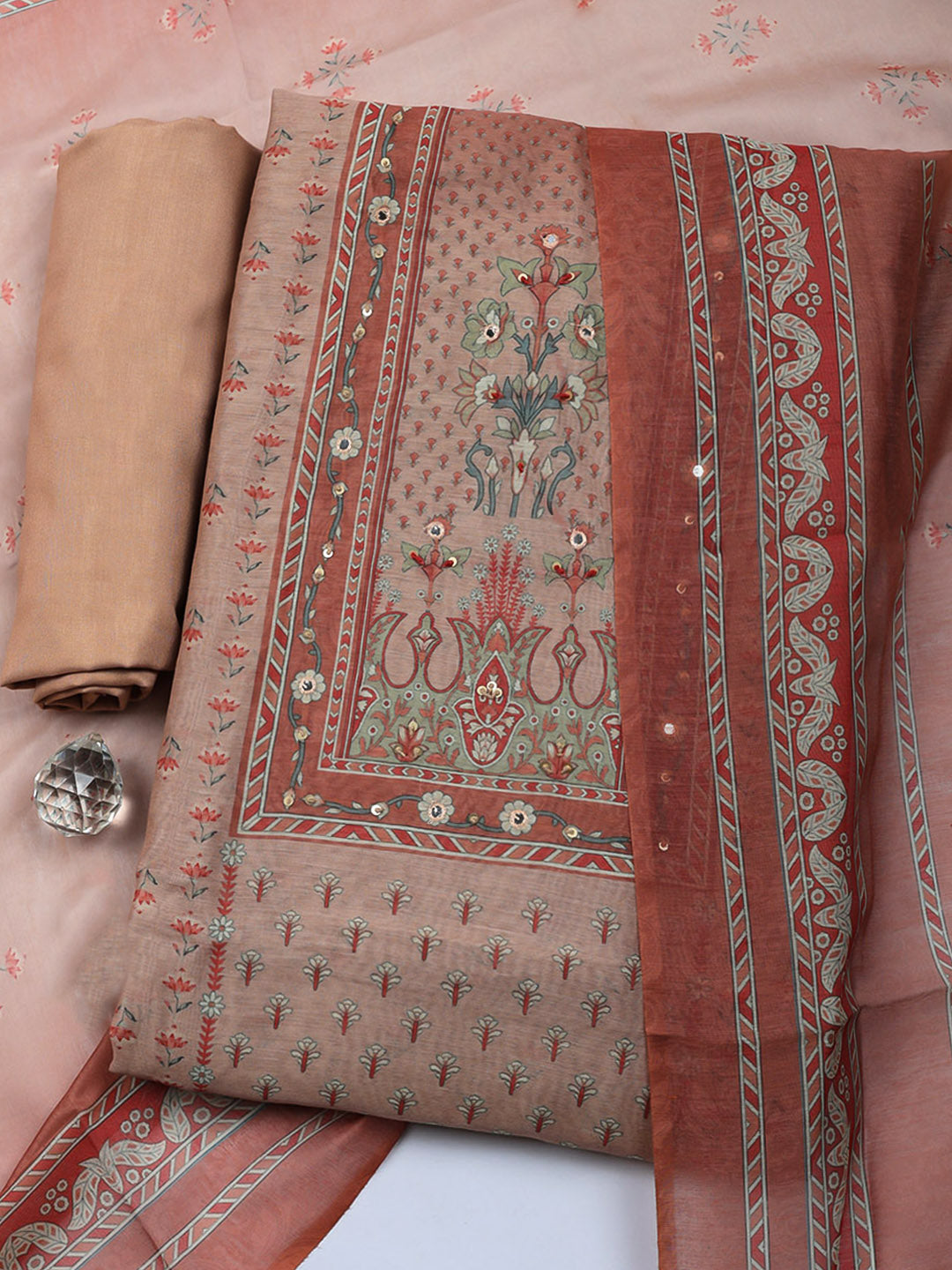 Embellished Chanderi Unstitched Suit With Pant & Dupatta