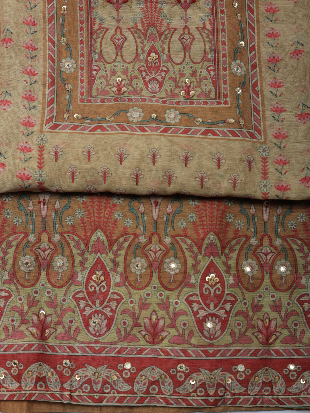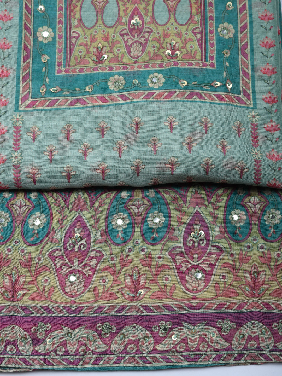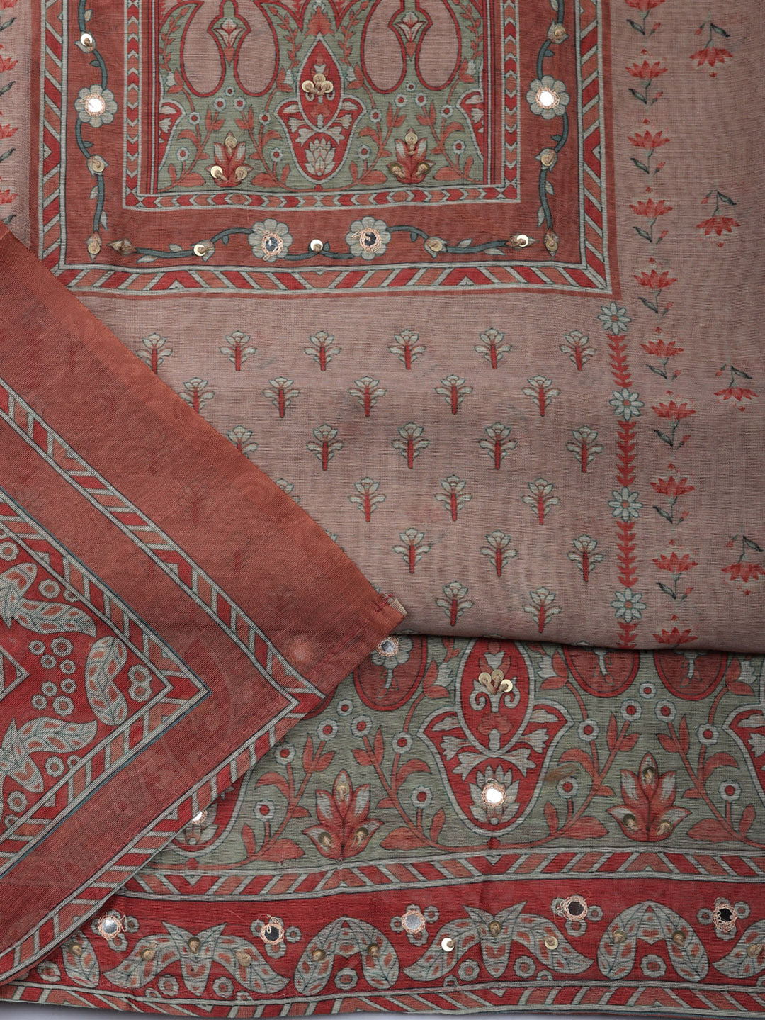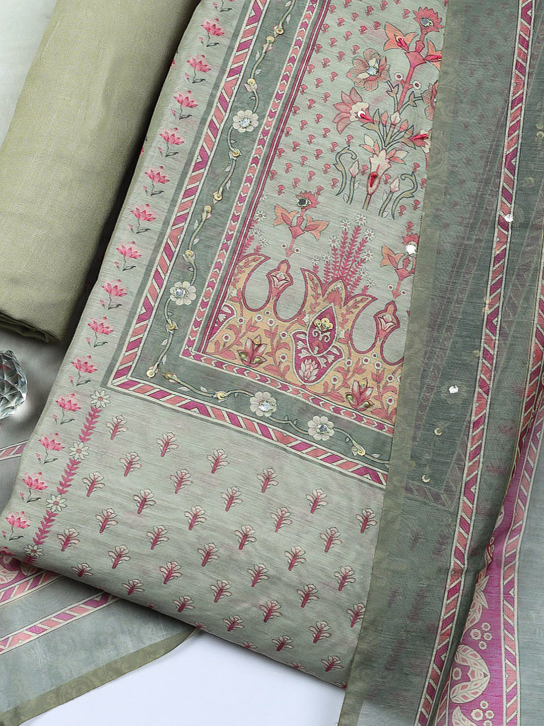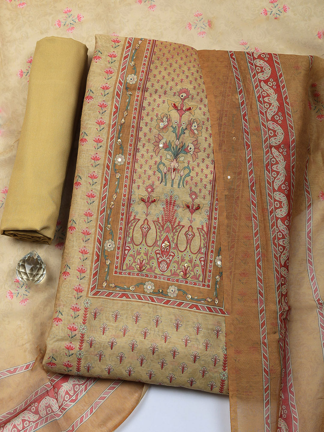 Embellished Chanderi Unstitched Suit With Pant & Dupatta