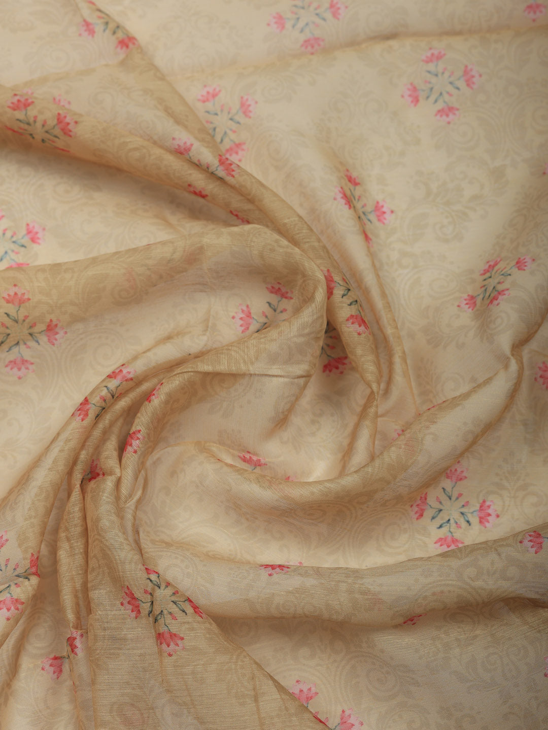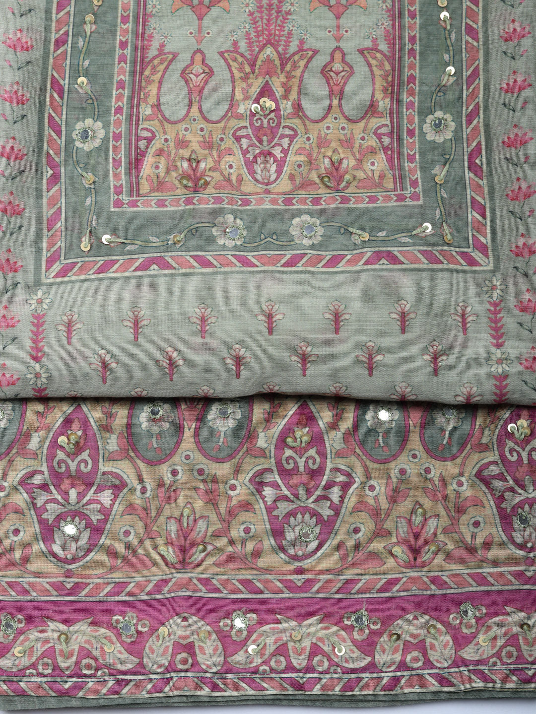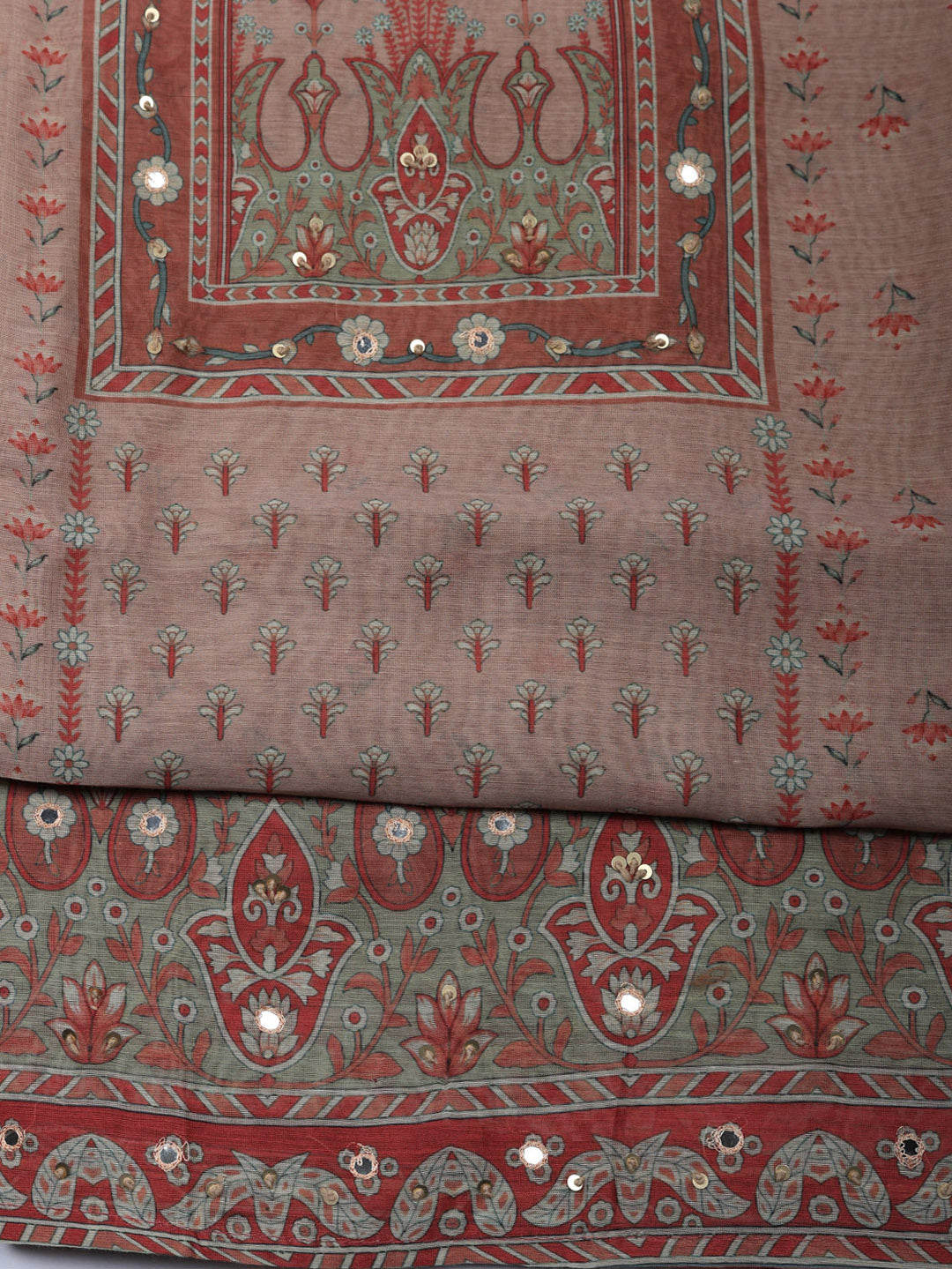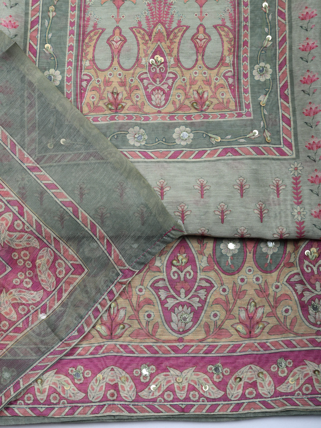 Embellished Chanderi Unstitched Suit With Pant & Dupatta