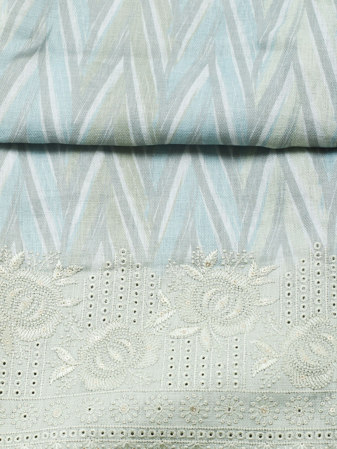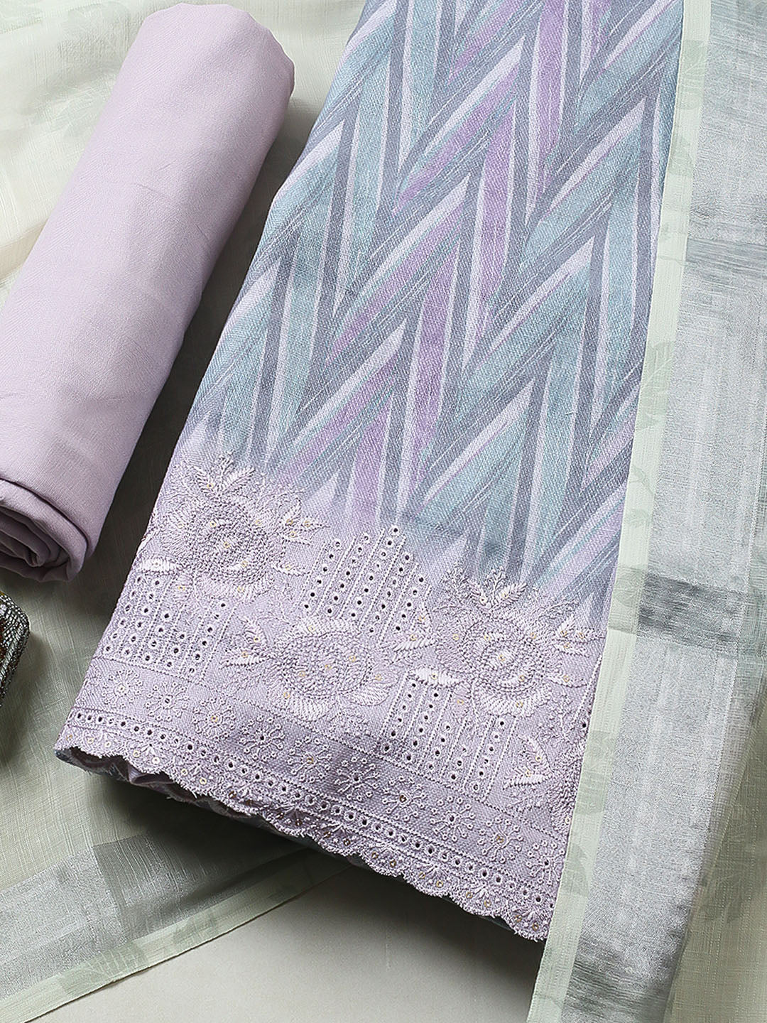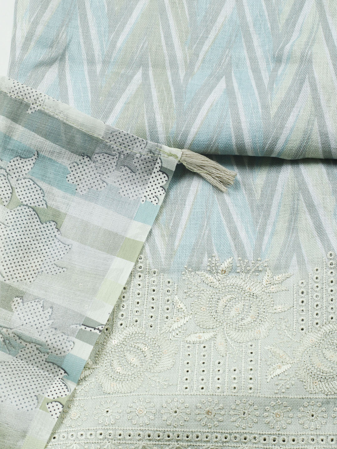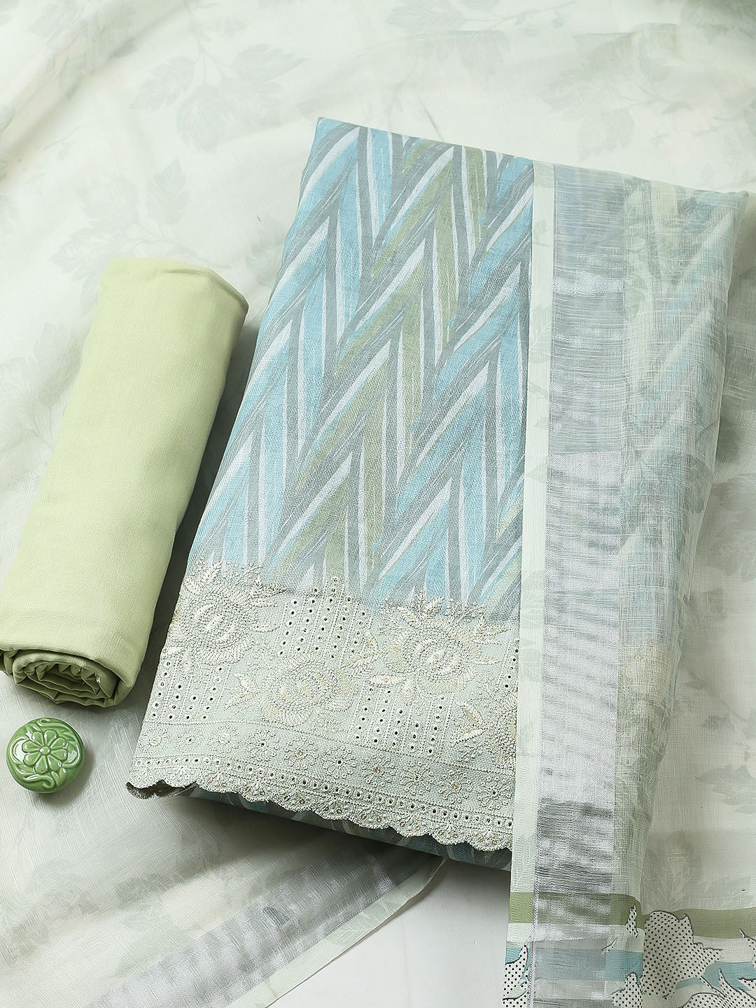 Embroidered Linen Blend Unstitched Suit With Pant & Dupatta