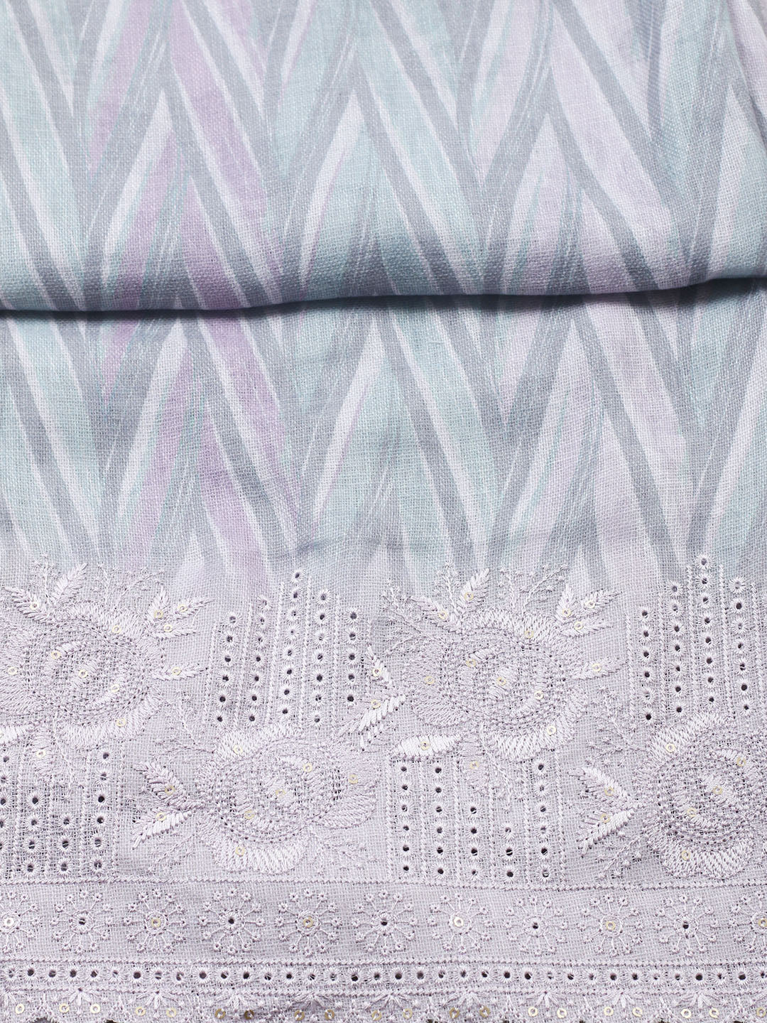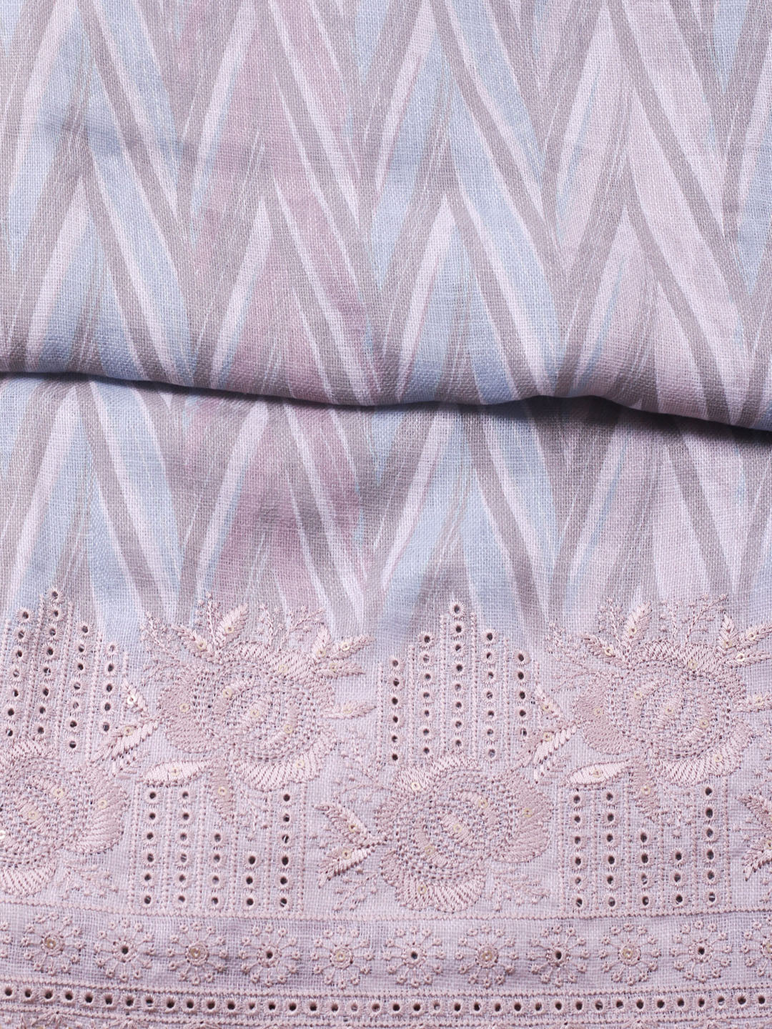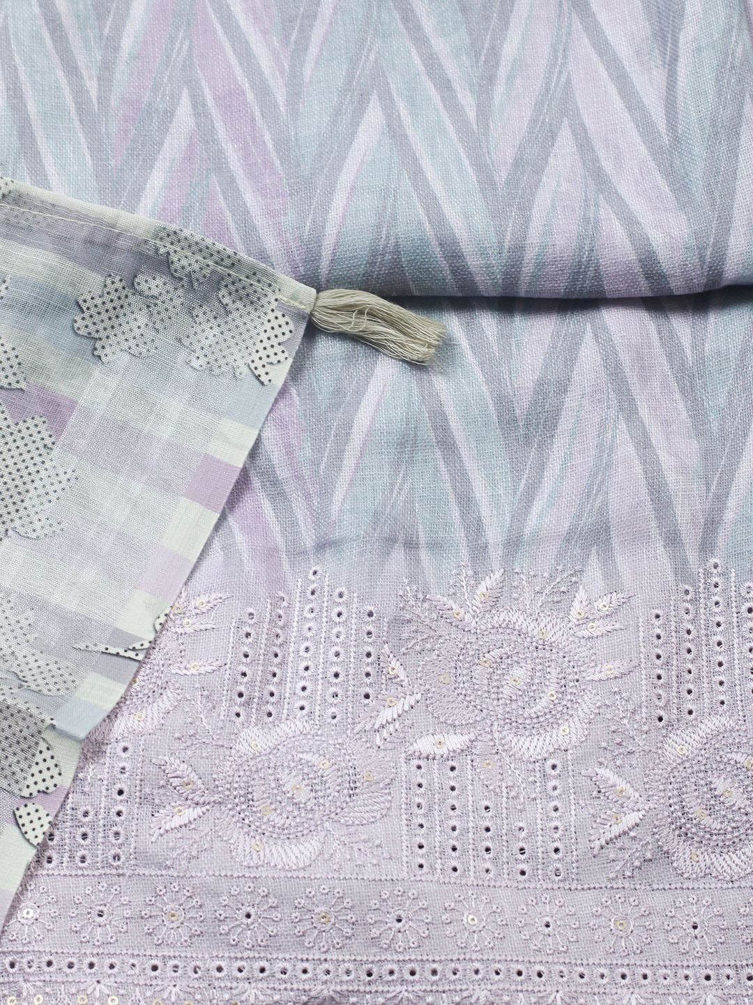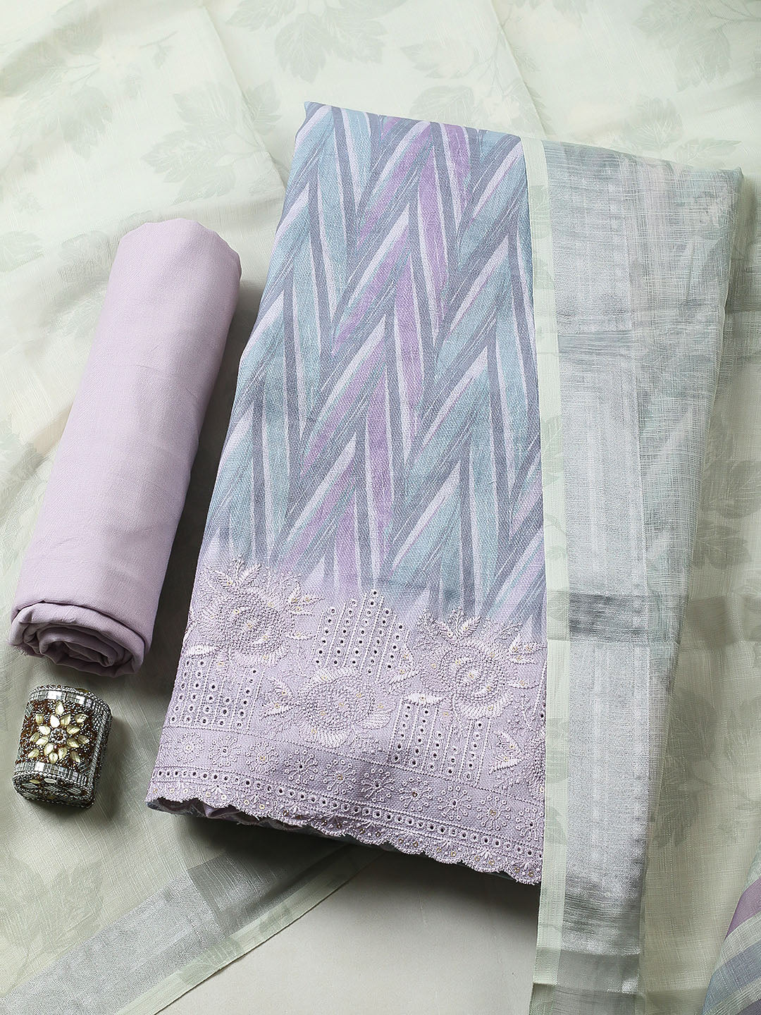 Embroidered Linen Blend Unstitched Suit With Pant & Dupatta