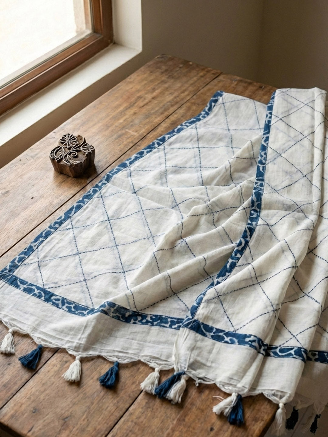 Printed Cotton Blend Unstitched Suit With Pant & Dupatta