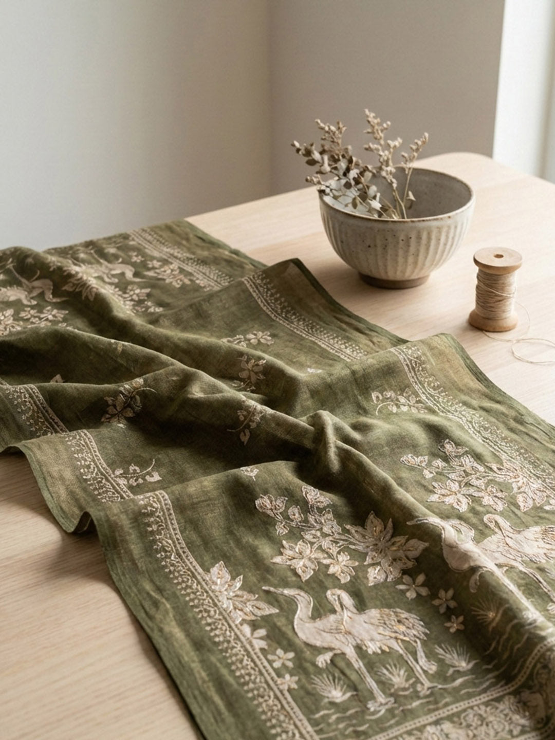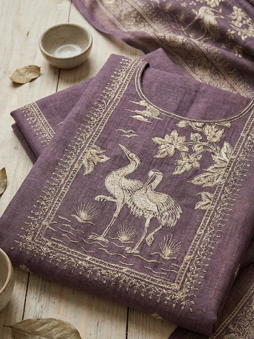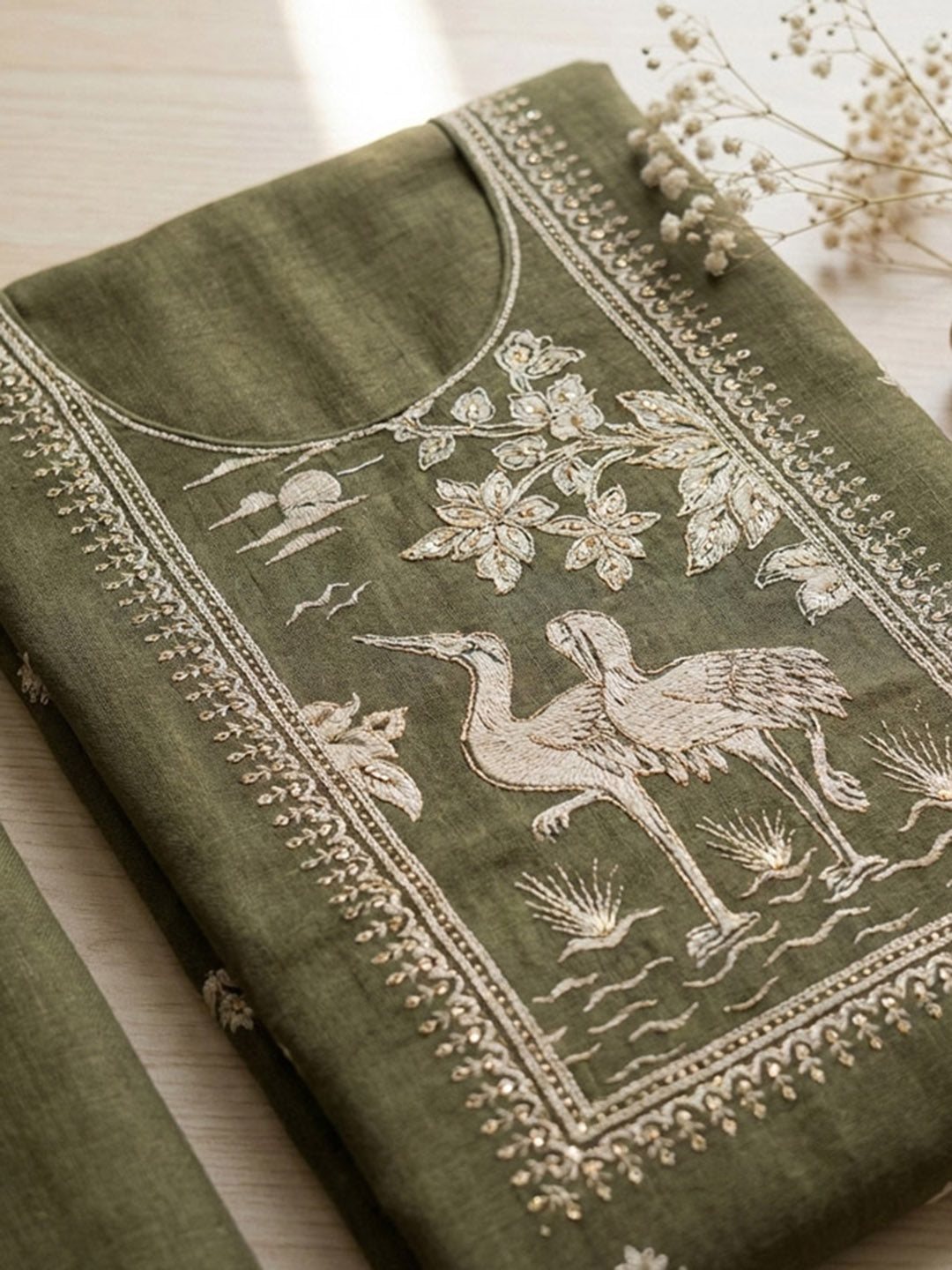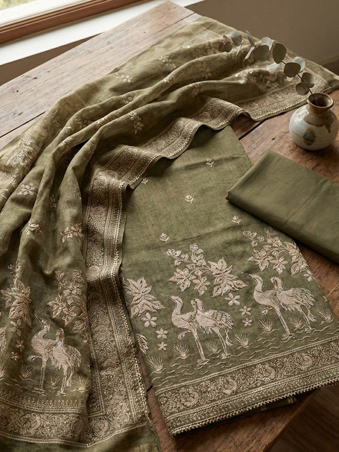 Printed Chanderi Unstitched Suit With Pant & Dupatta