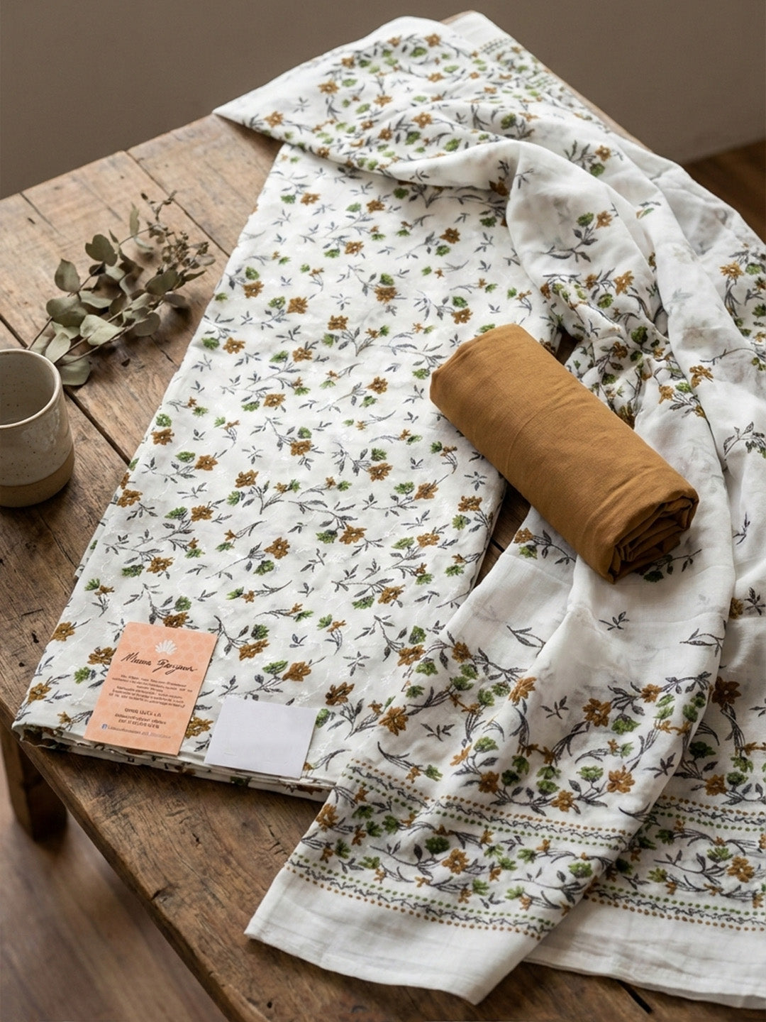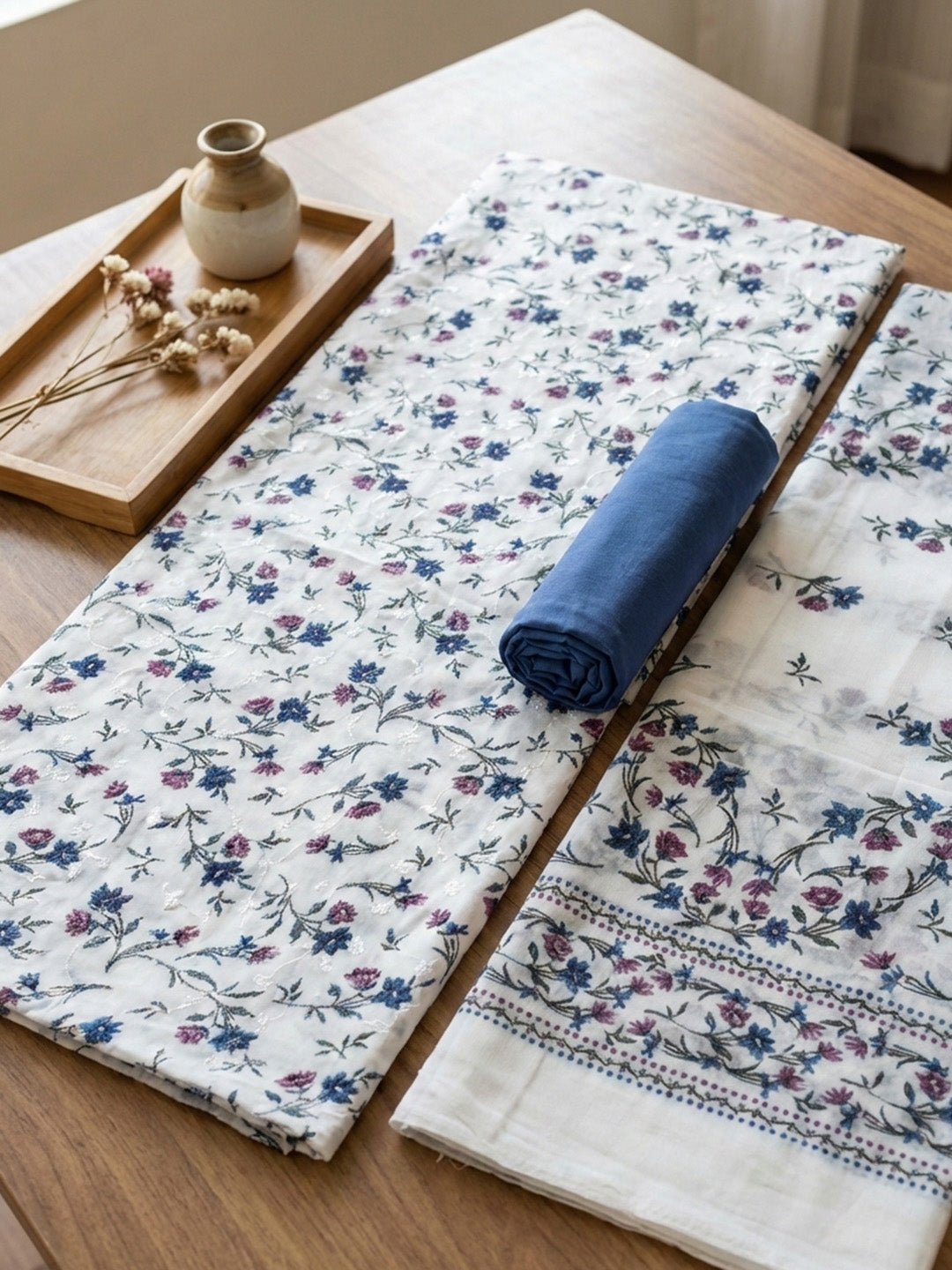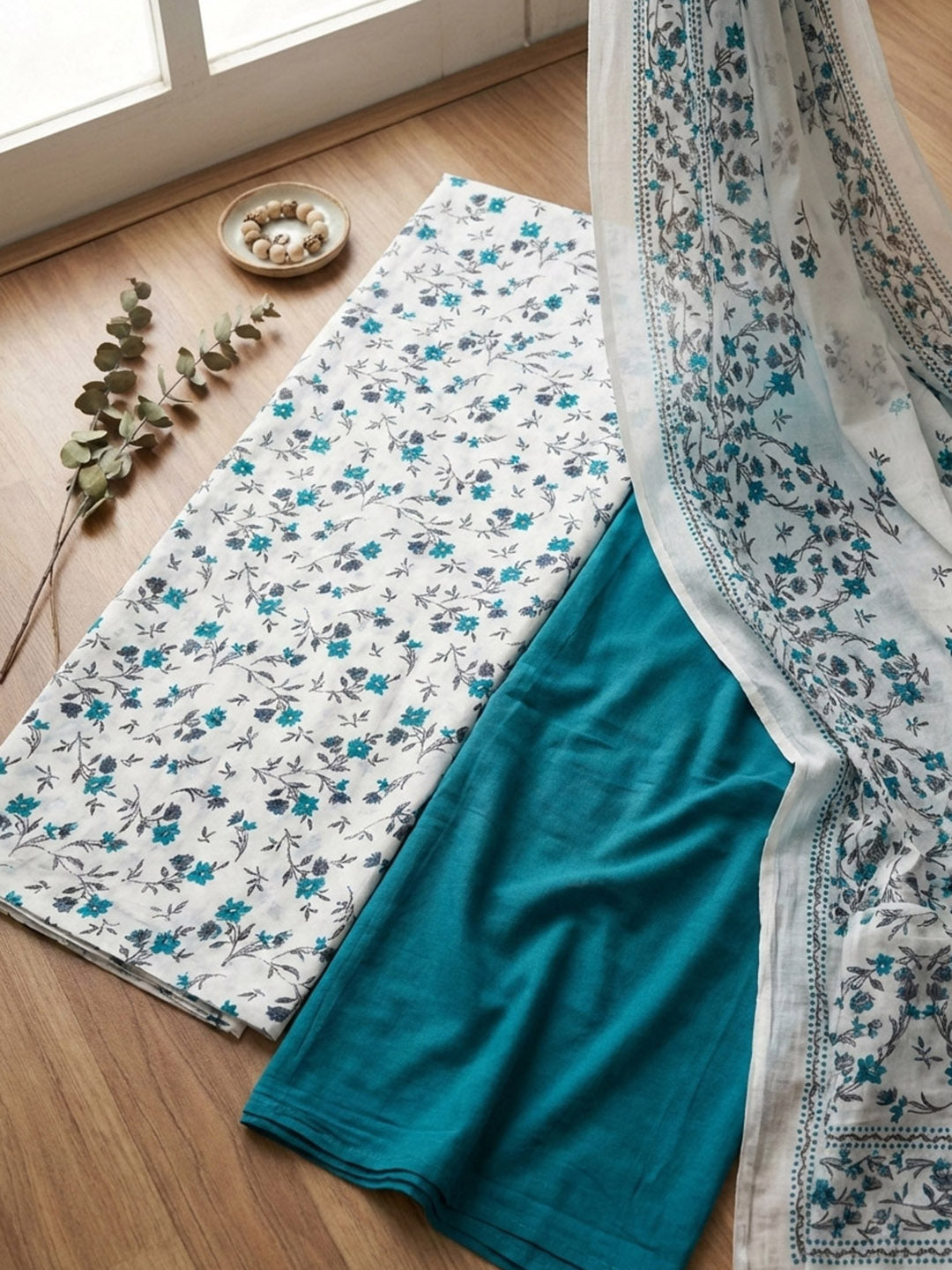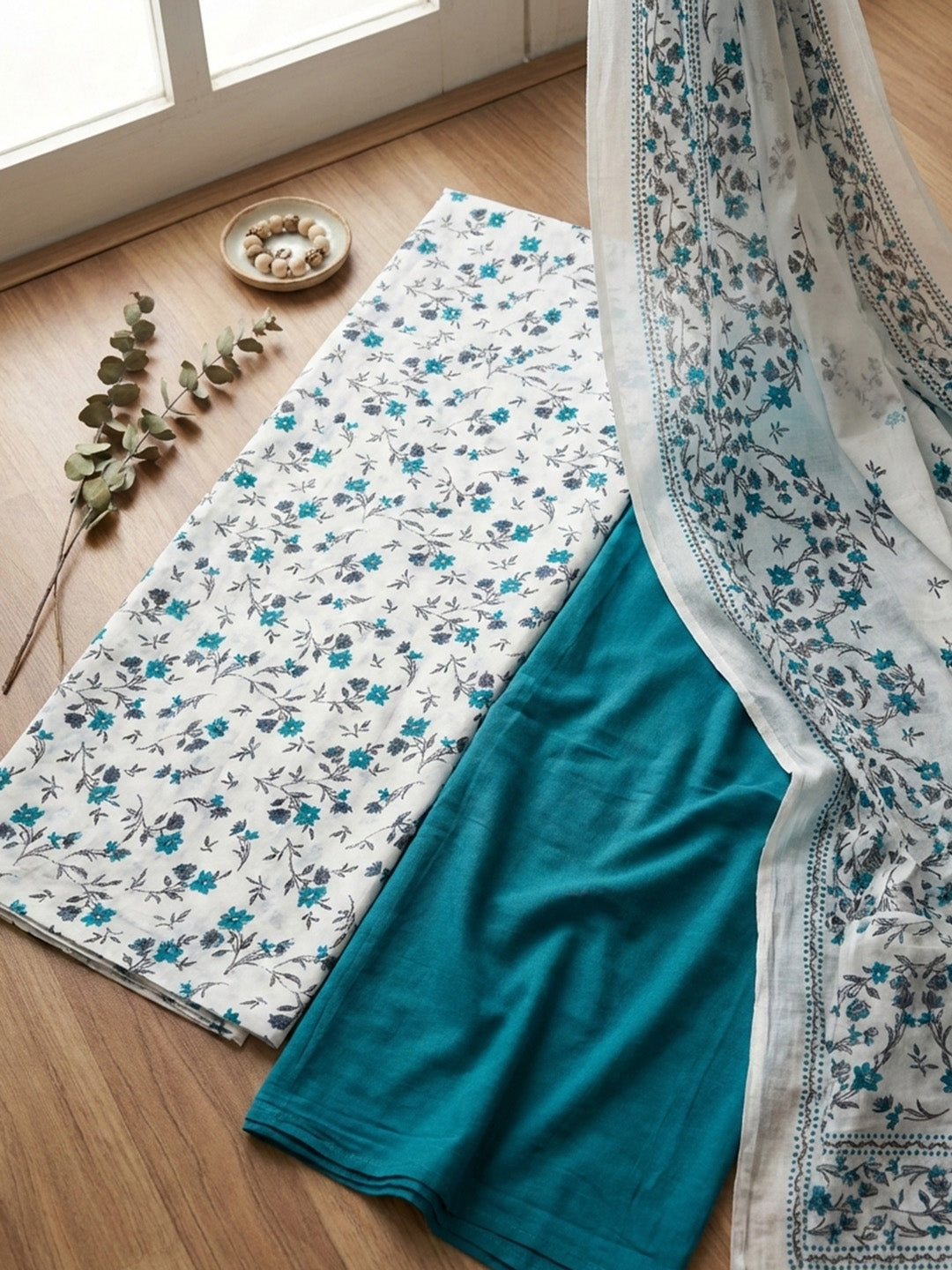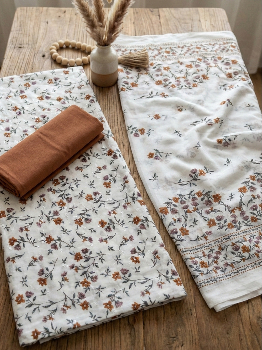 Embroidered Cotton Blend Unstitched Suit With Pant & Dupatta