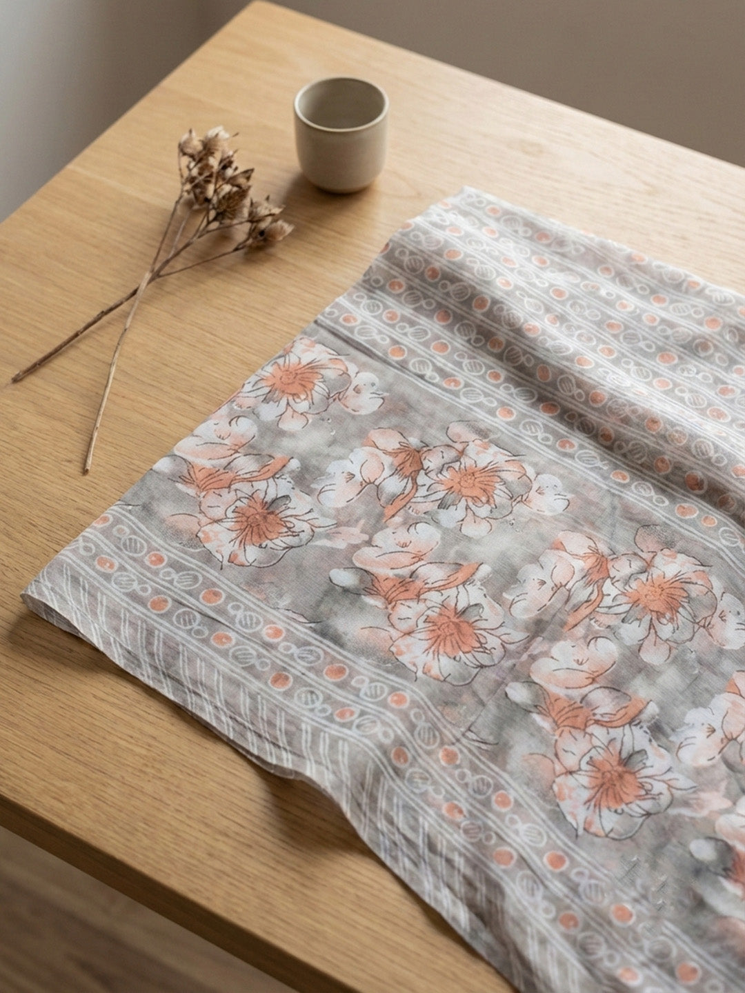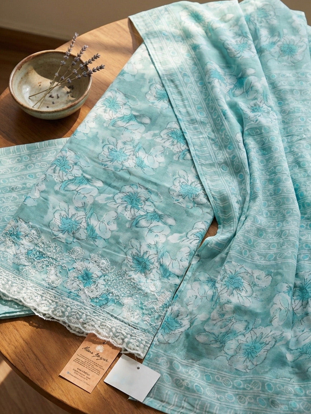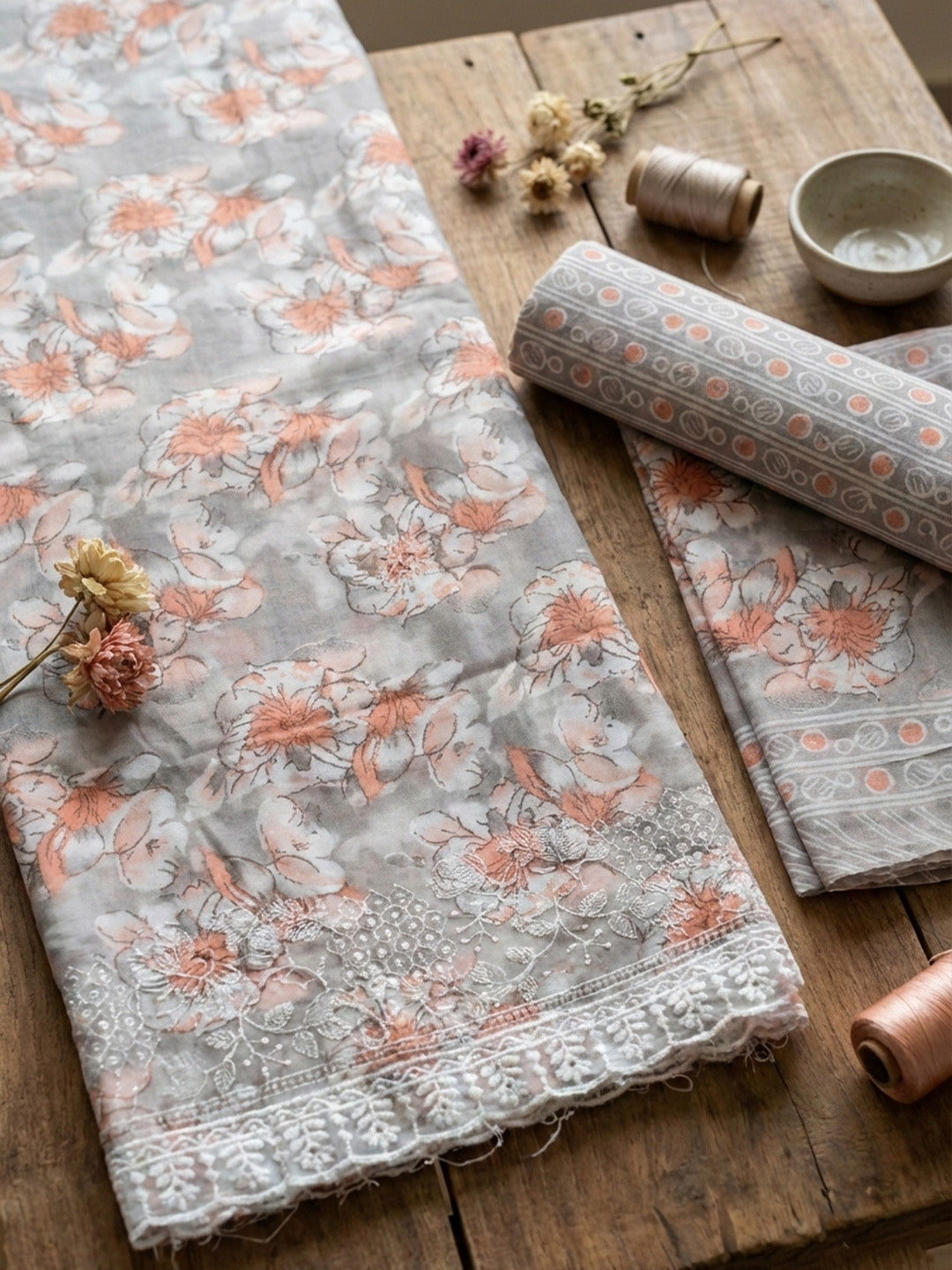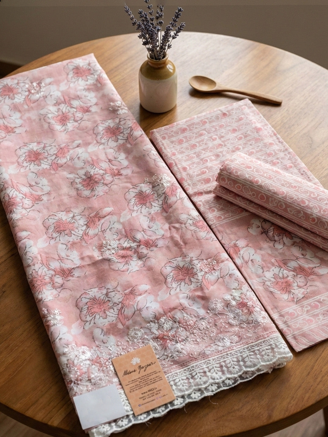 Printed Cotton Blend Unstitched Suit With Pant & Dupatta