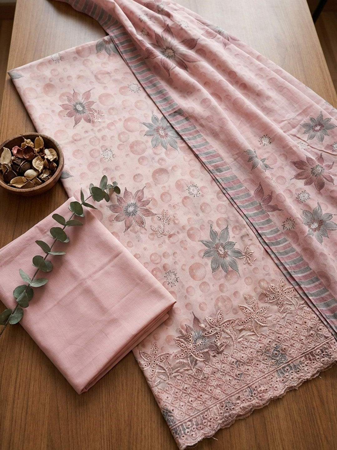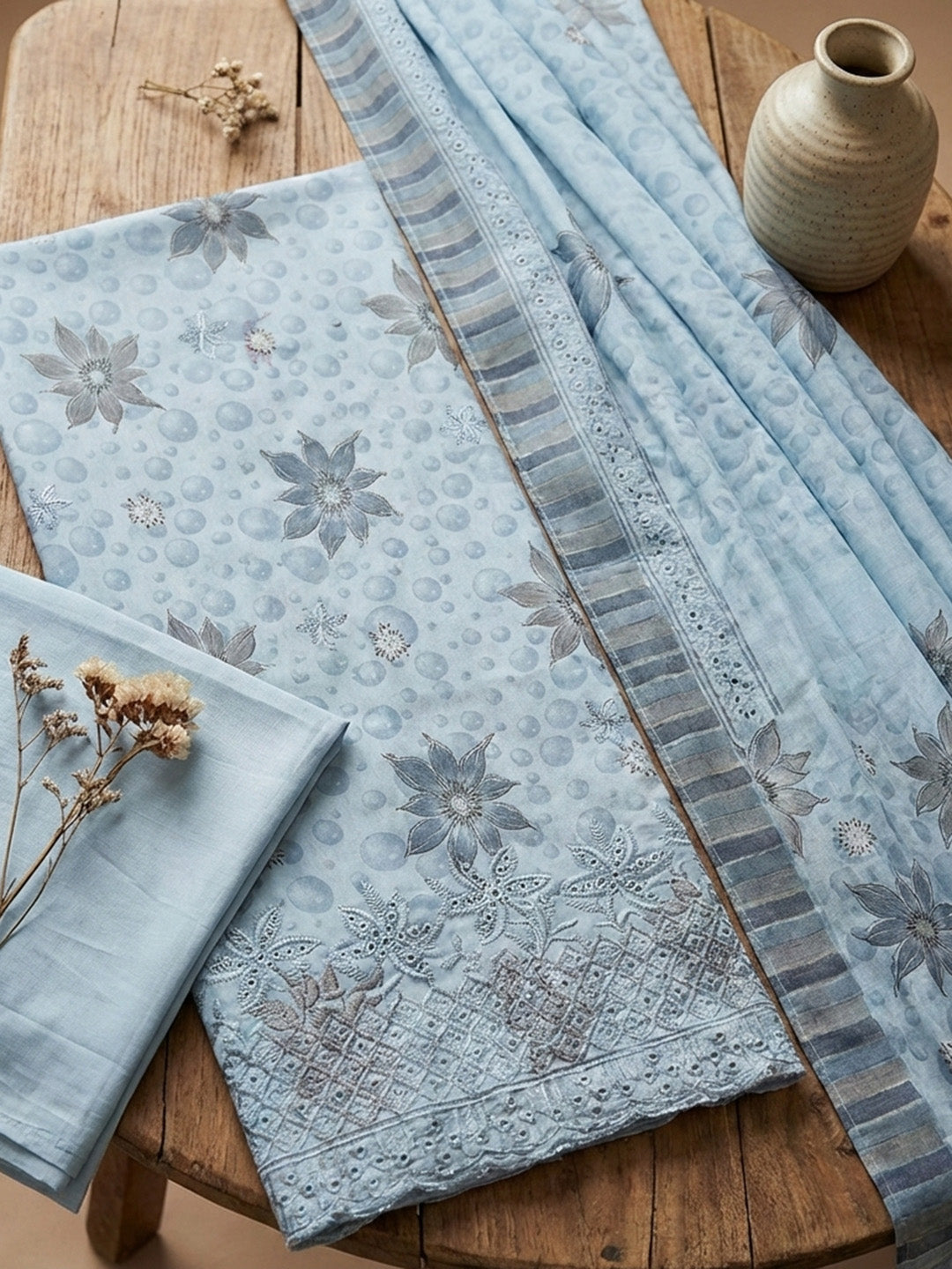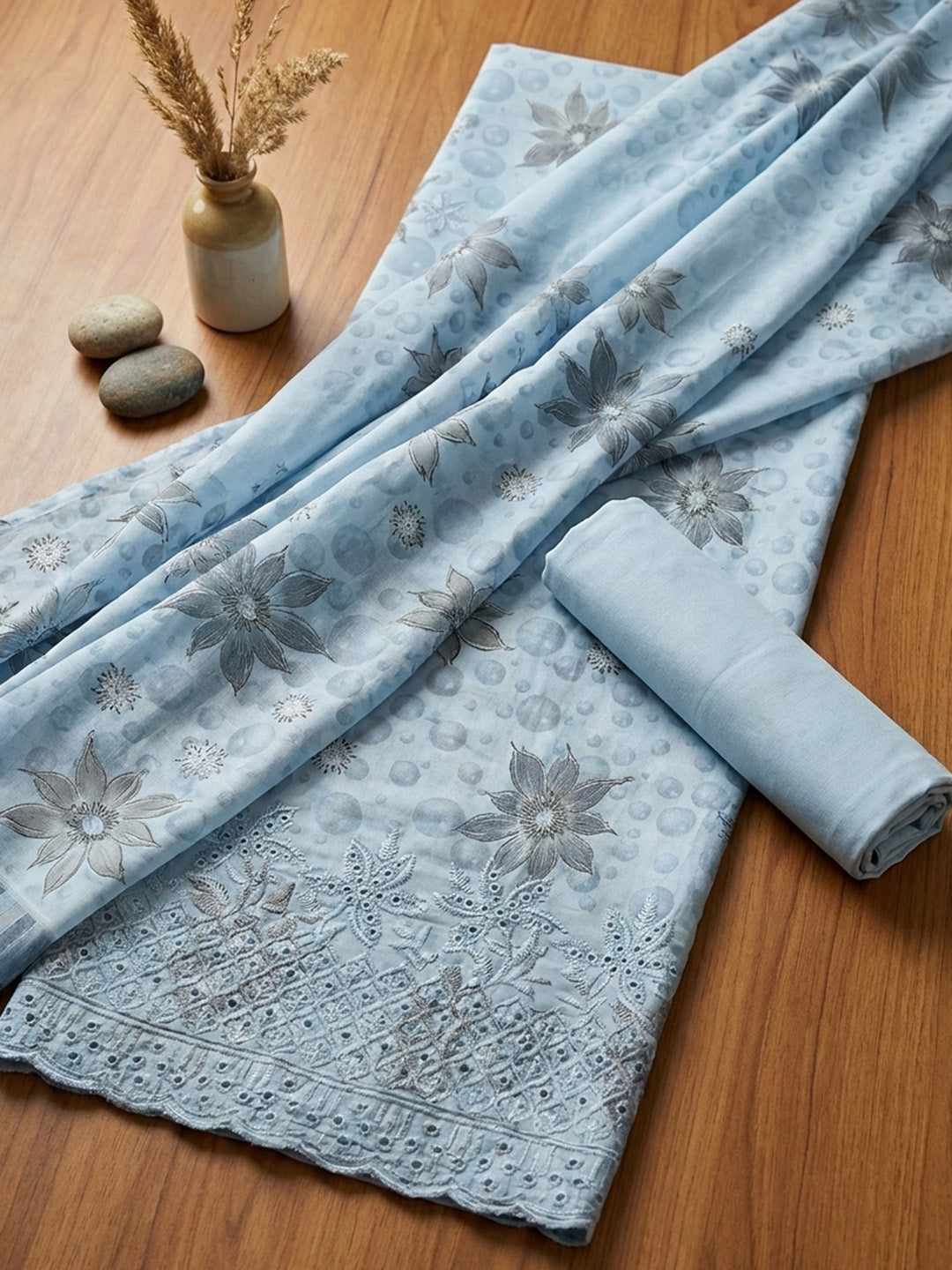 Printed Cotton Blend Unstitched Suit With Pant & Dupatta
