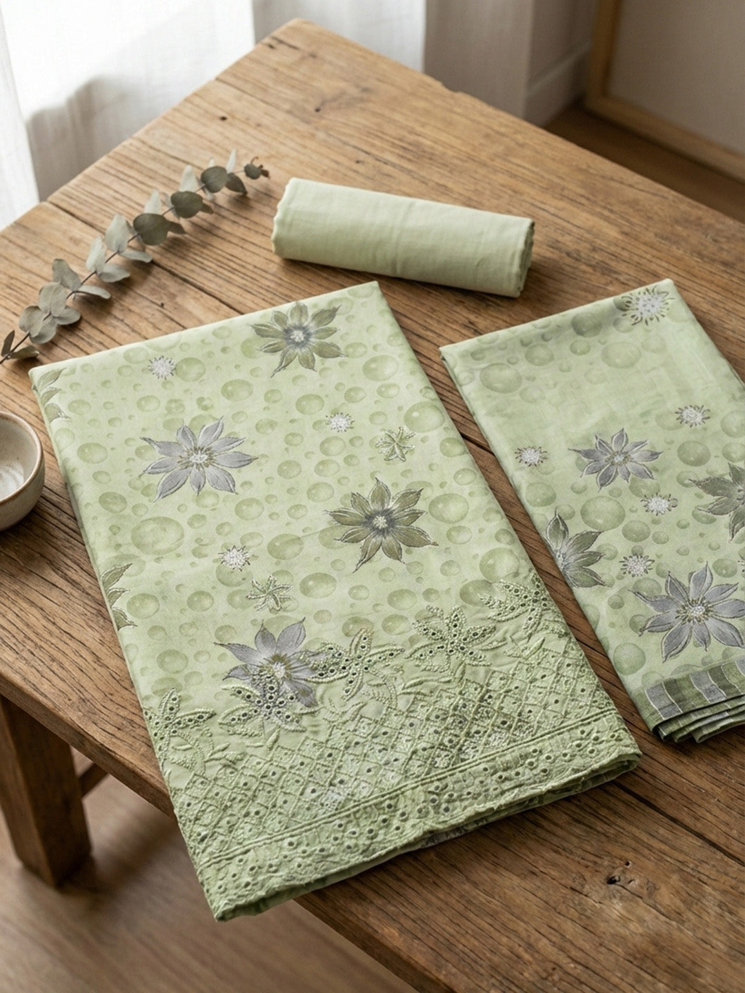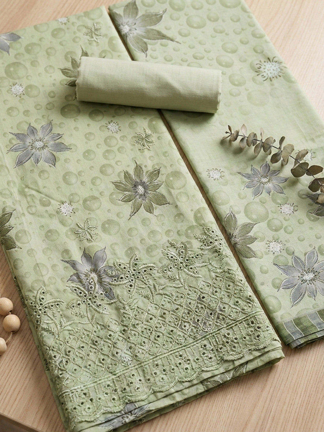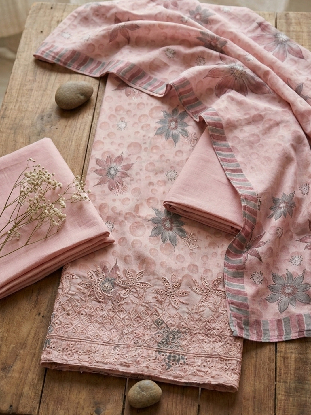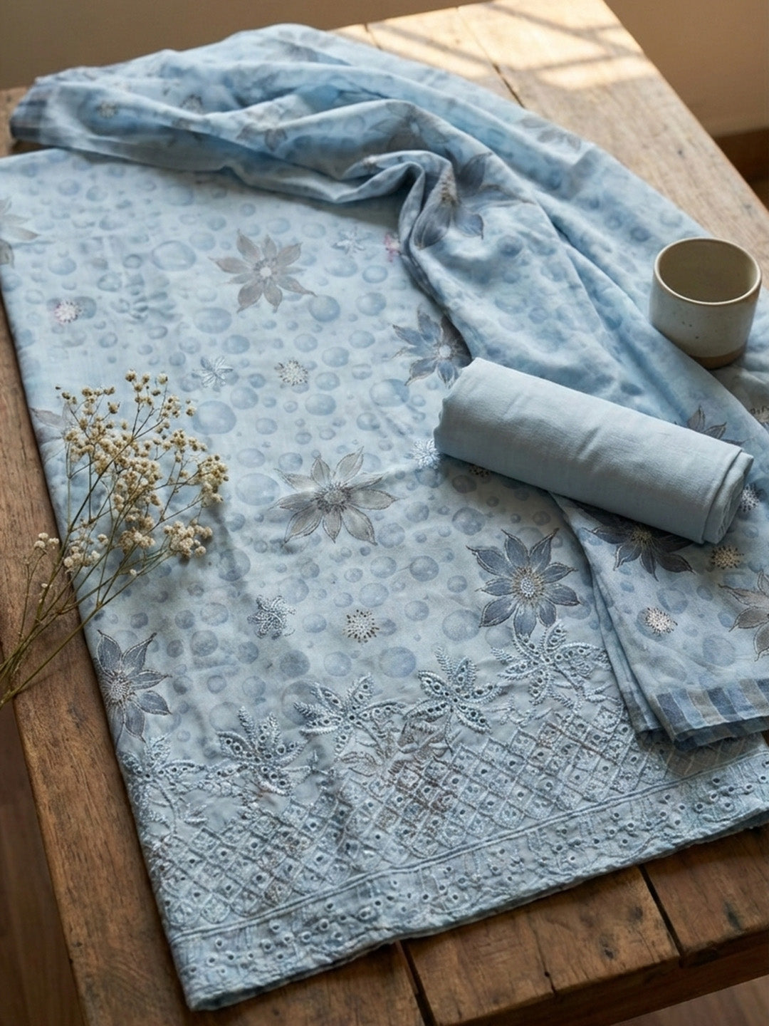 Printed Cotton Blend Unstitched Suit With Pant & Dupatta