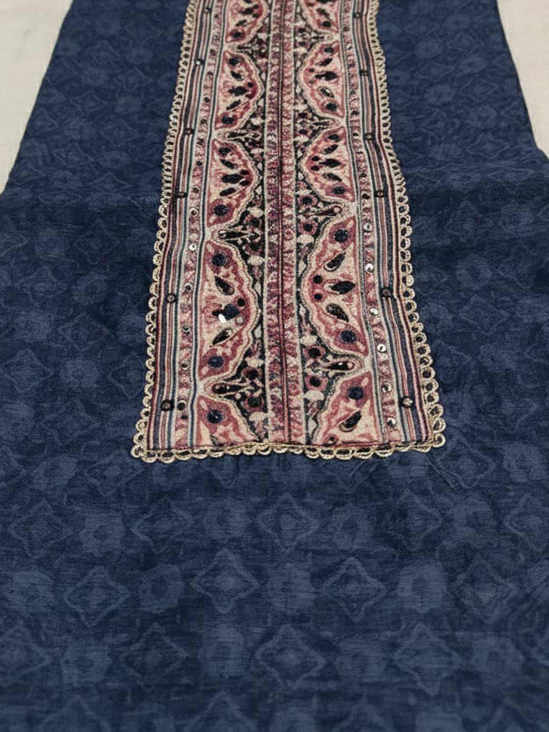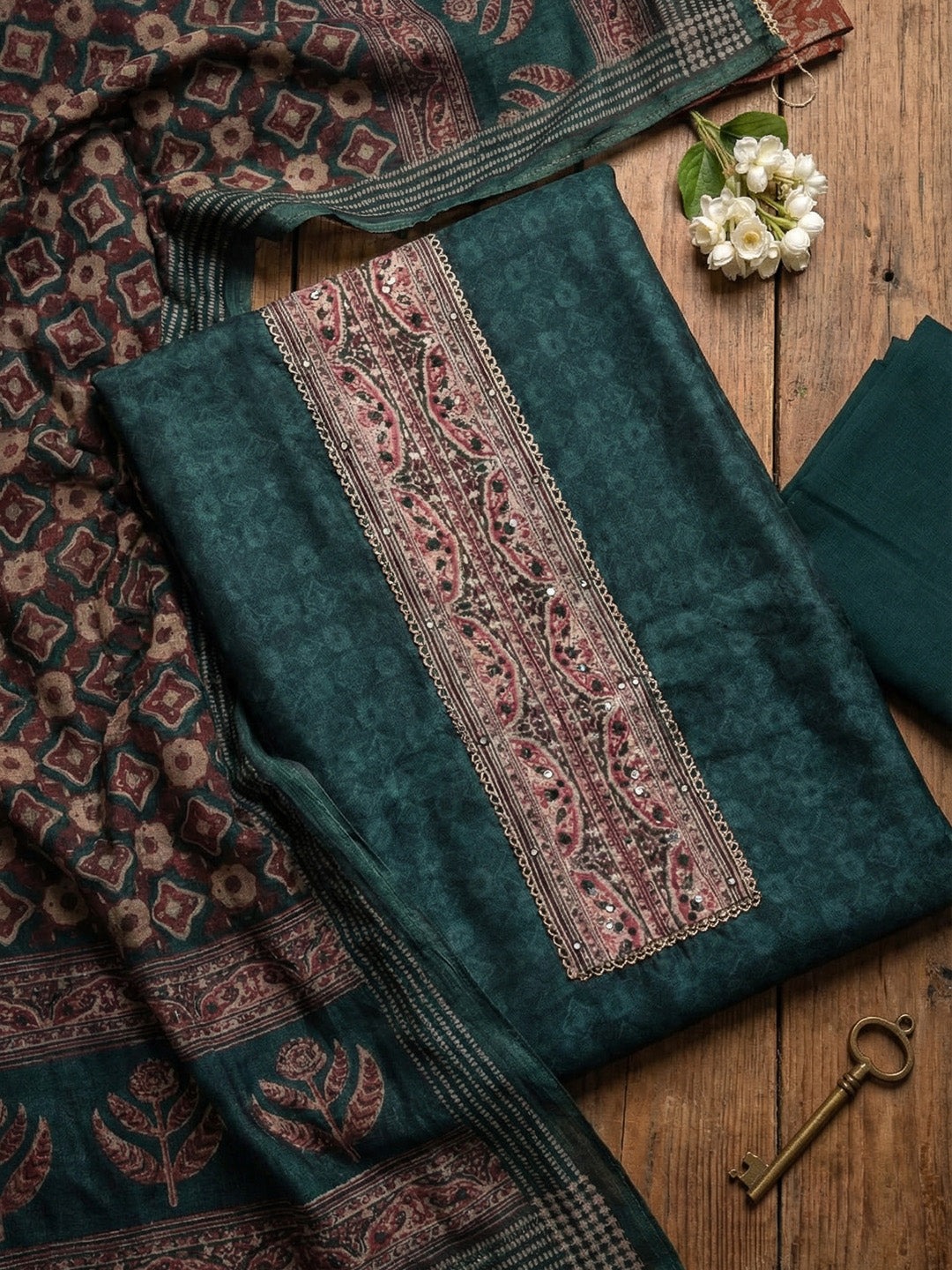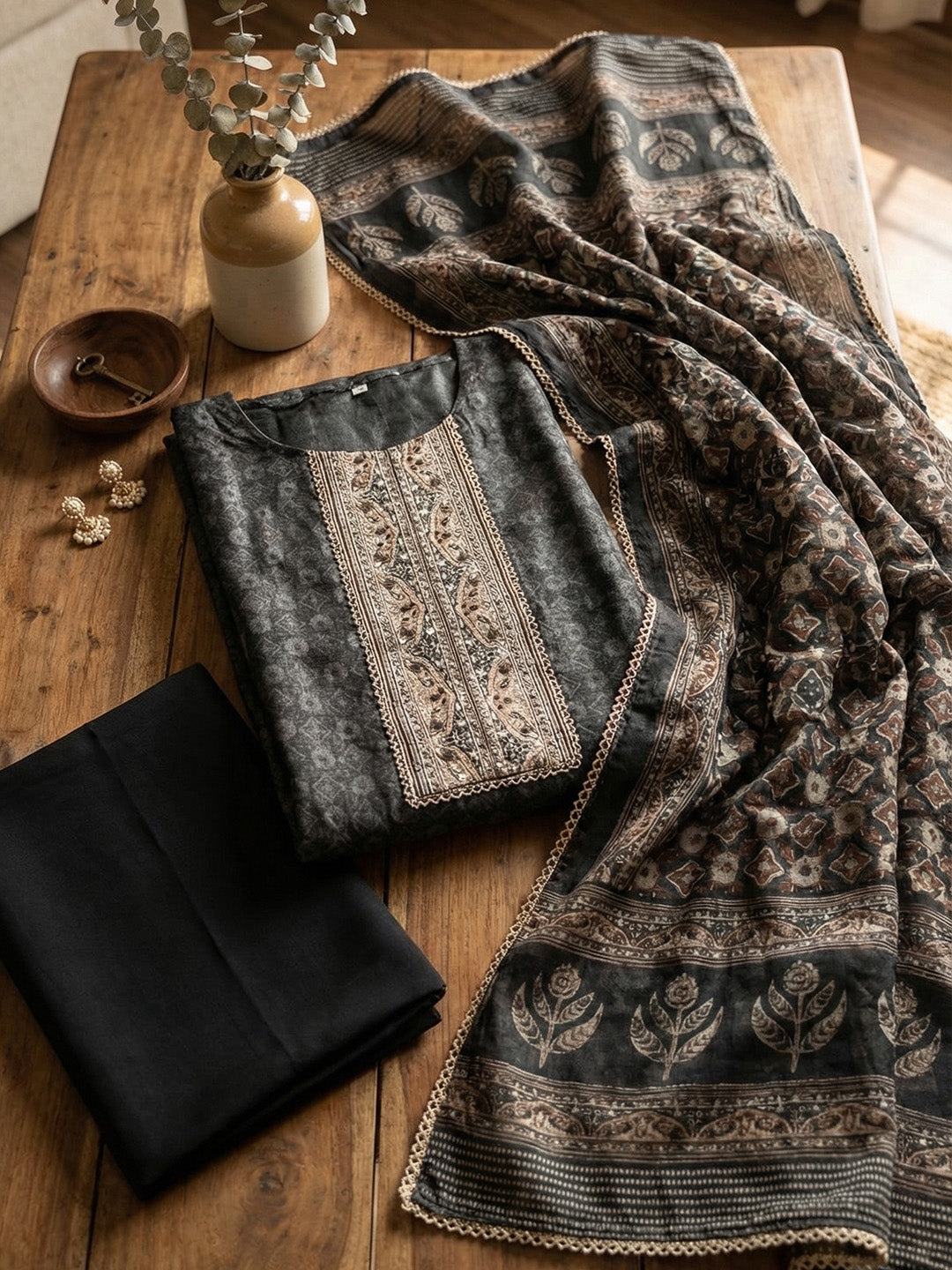 Printed Chanderi Unstitched Suit With Pant & Dupatta