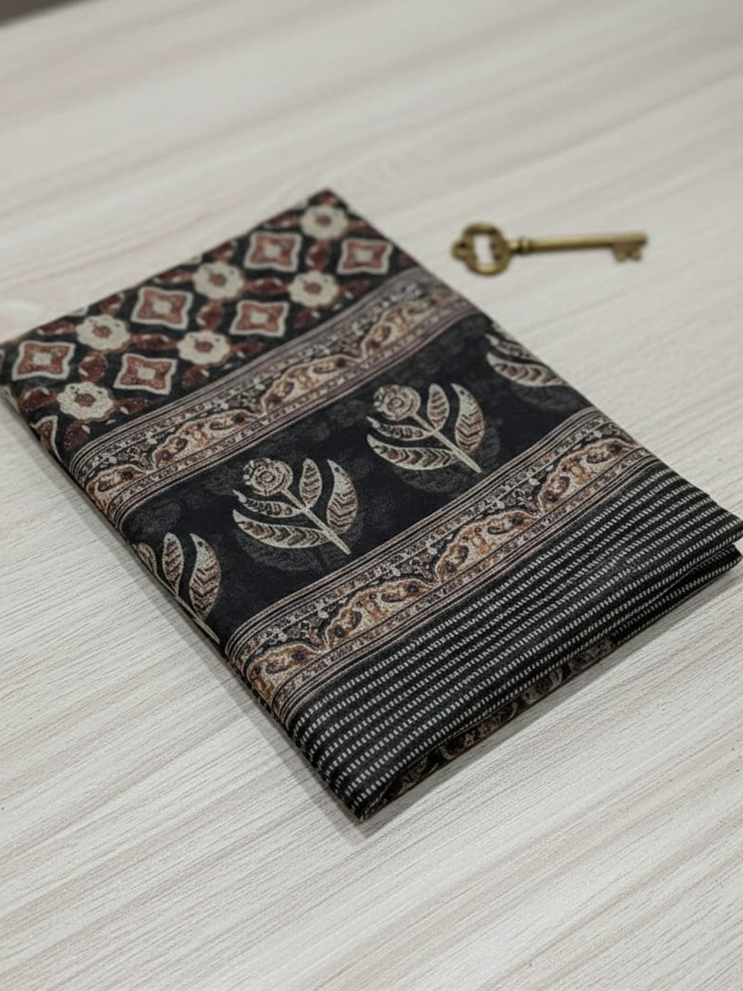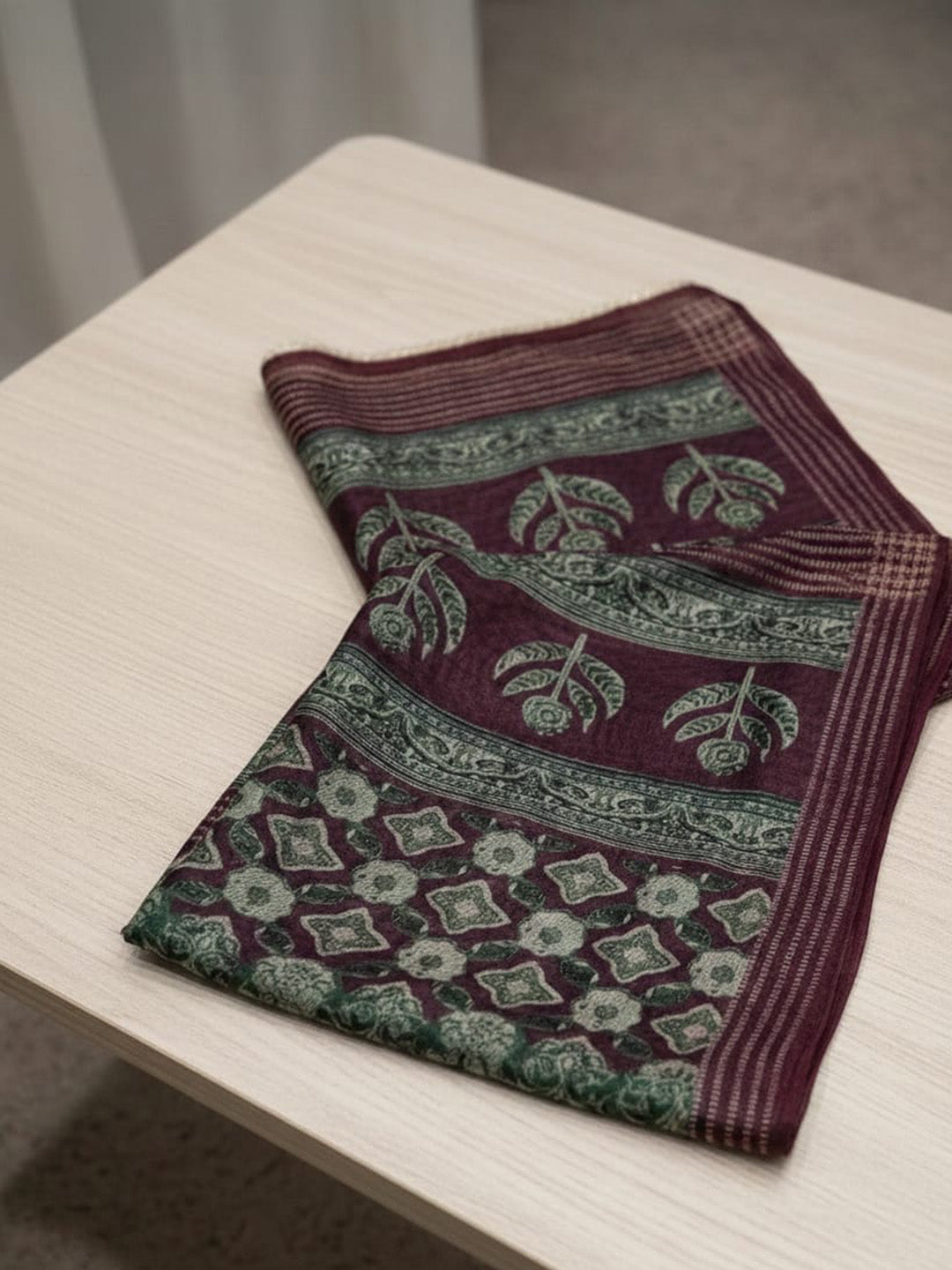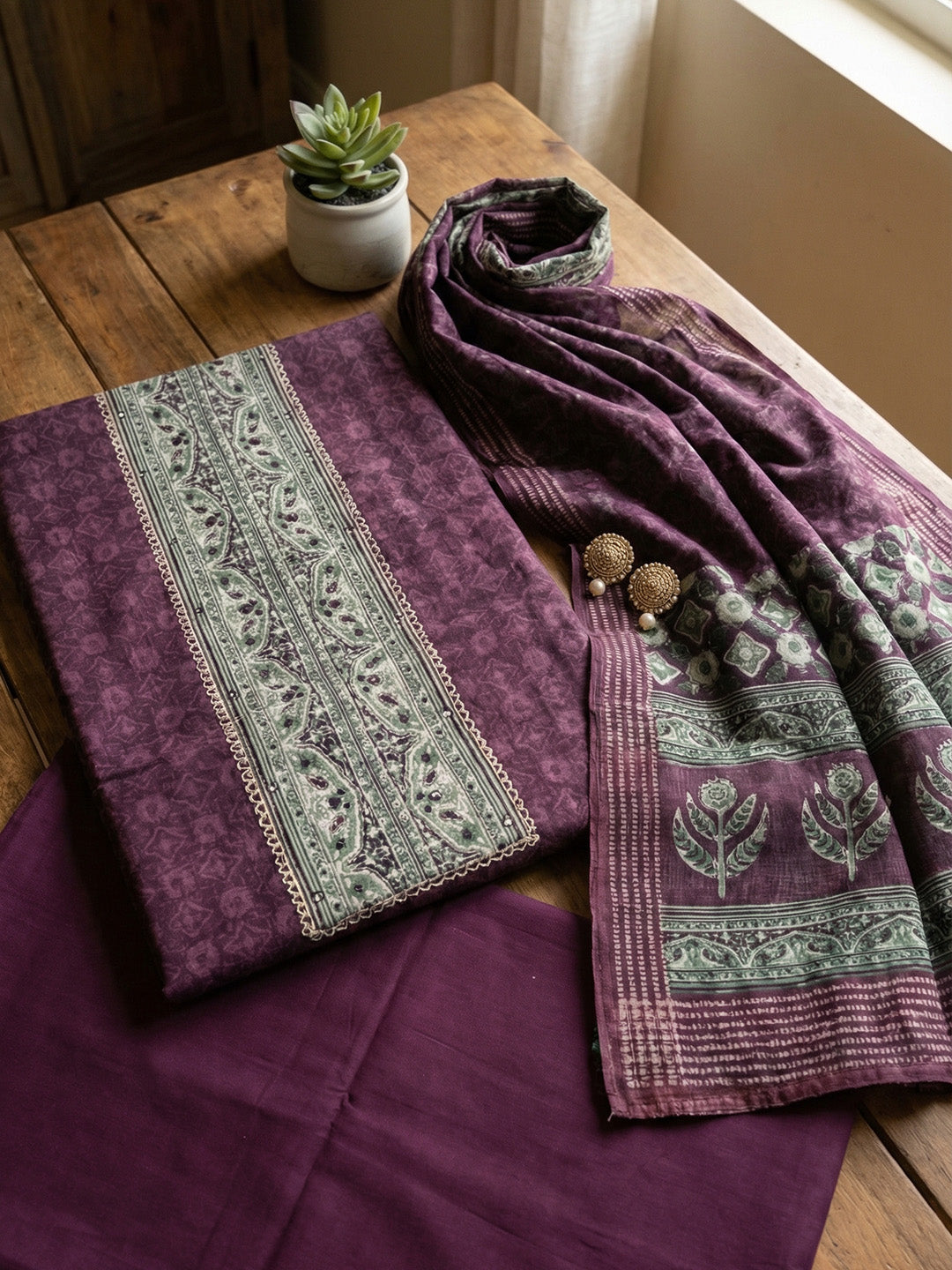 Printed Chanderi Unstitched Suit With Pant & Dupatta