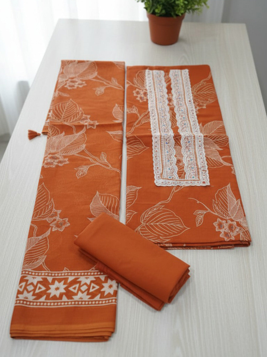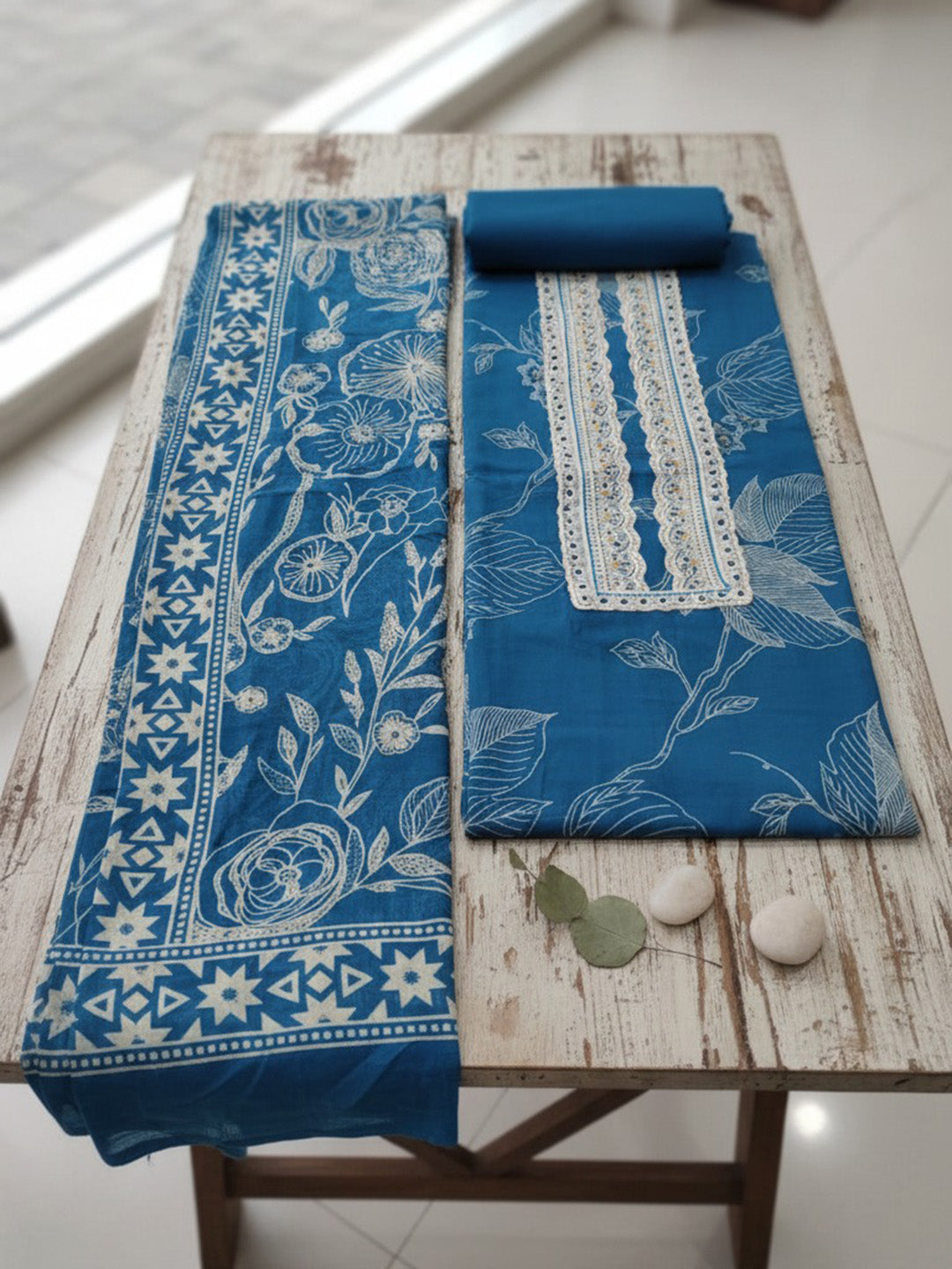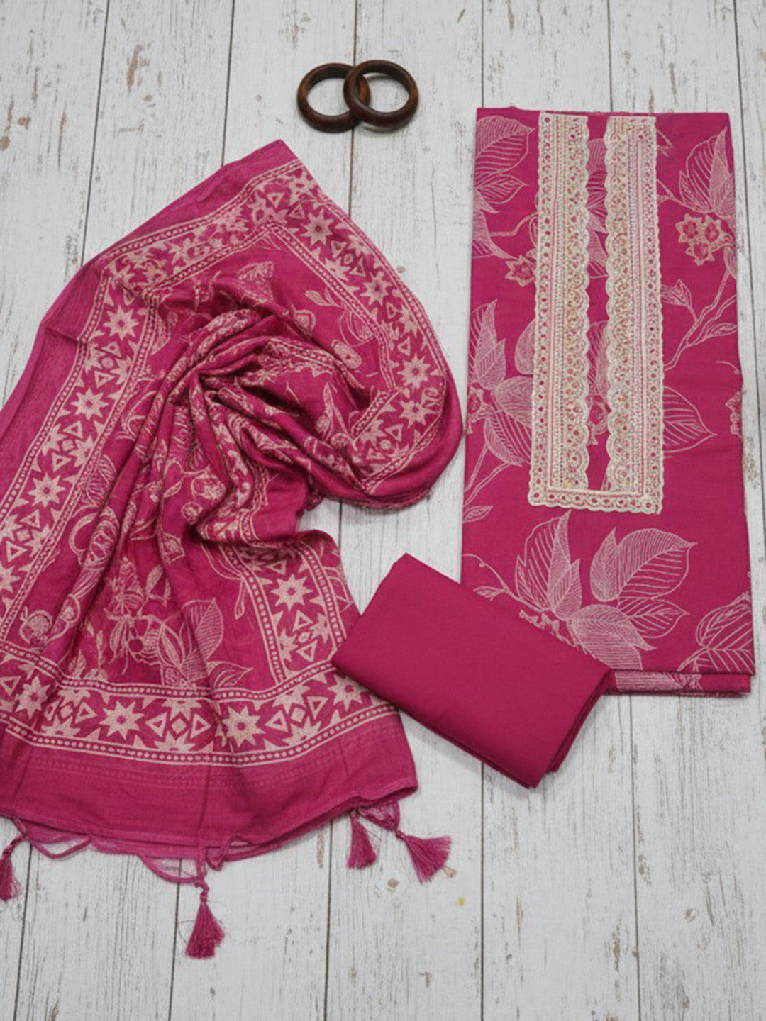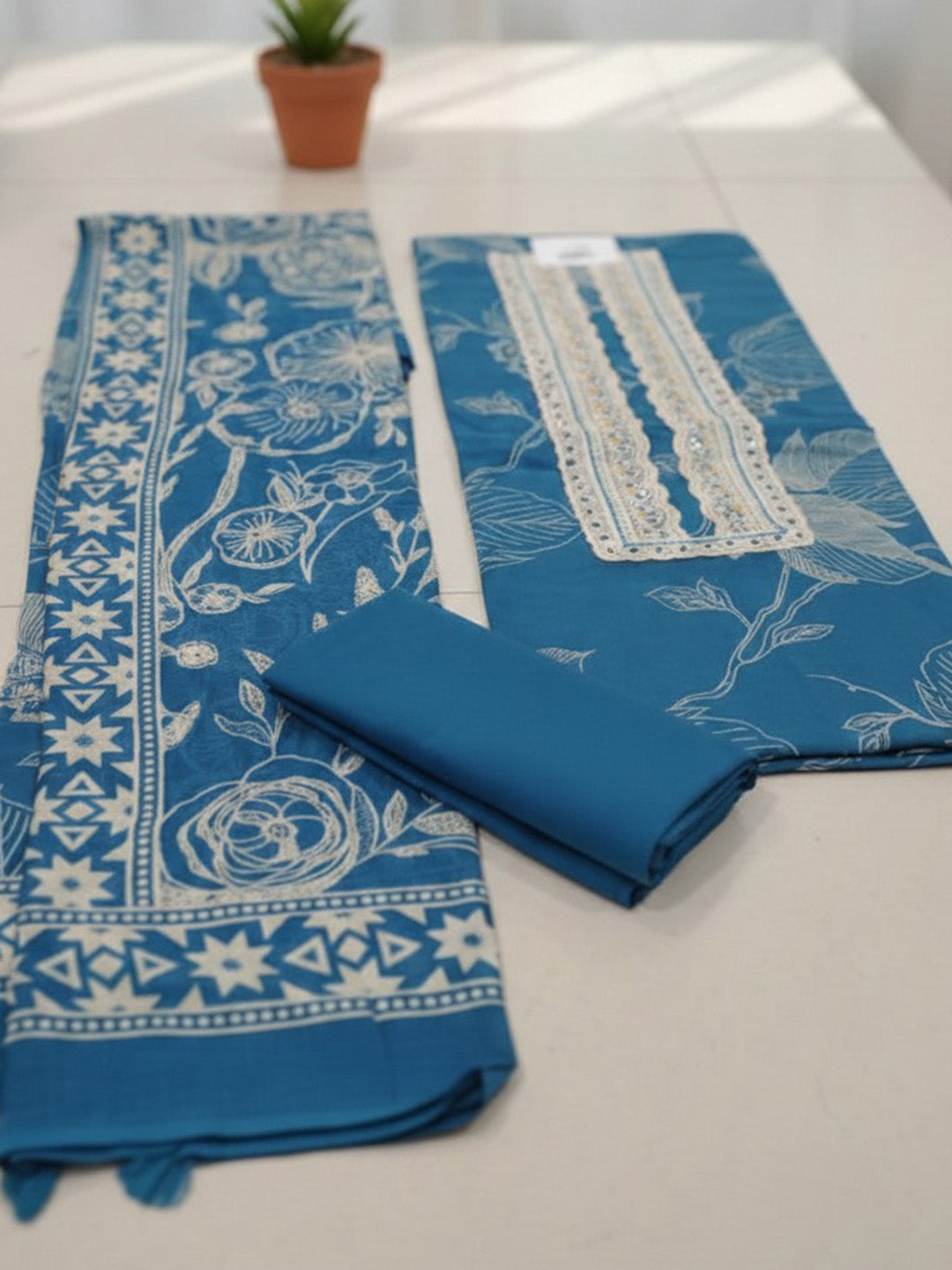Printed Cotton Blend Unstitched Suit With Pant & Dupatta