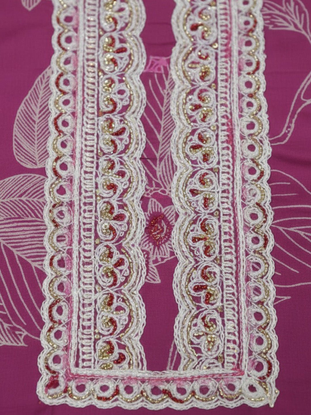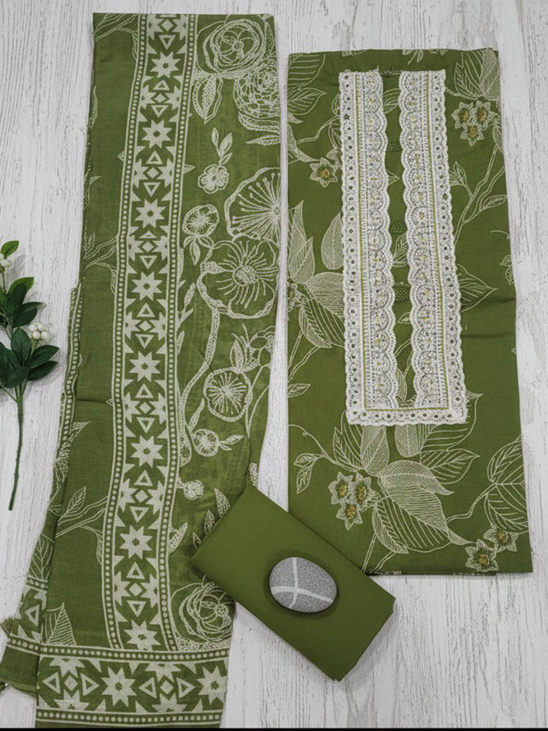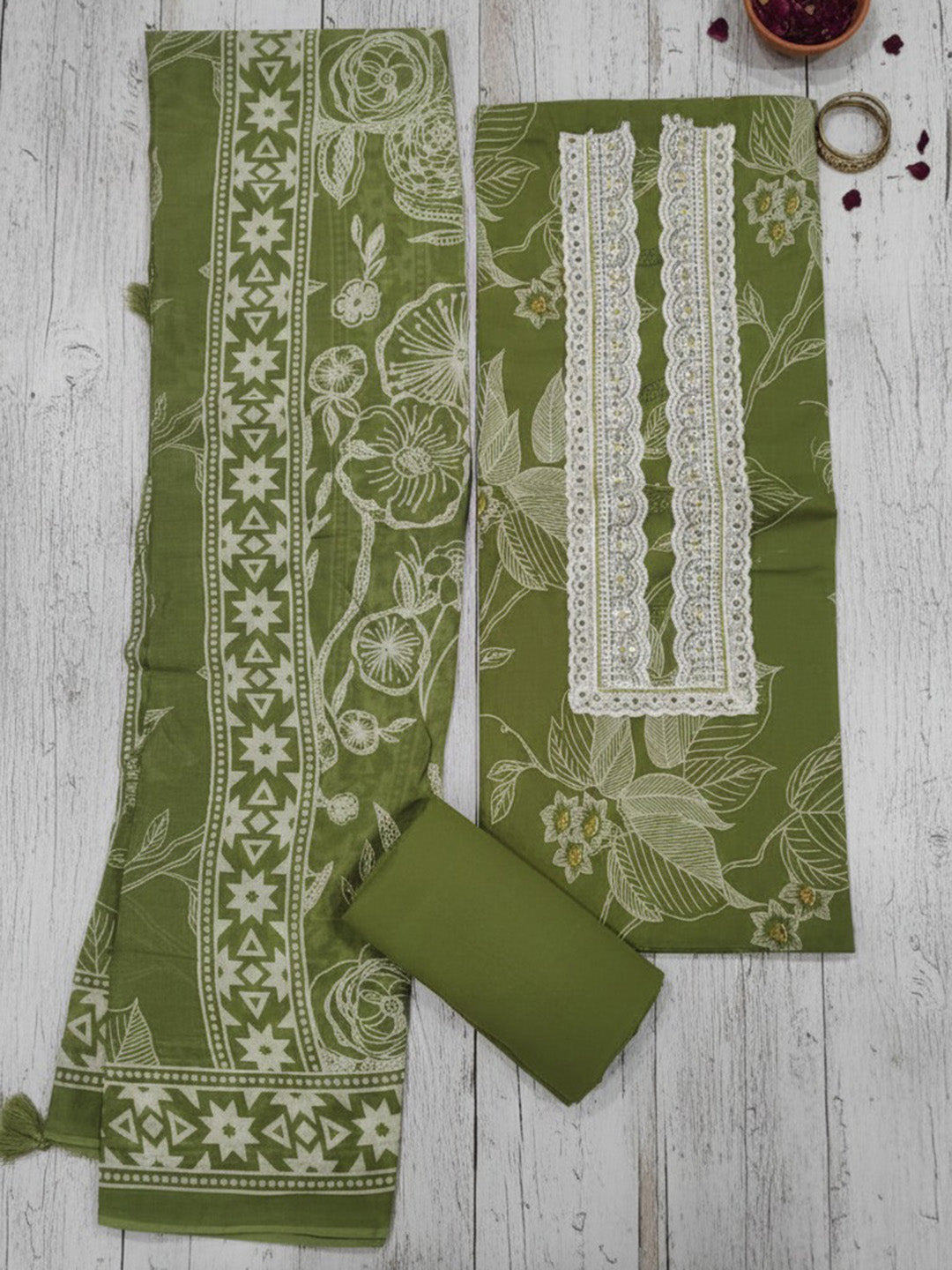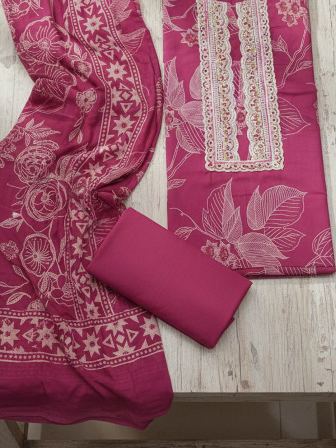 Printed Cotton Blend Unstitched Suit With Pant & Dupatta